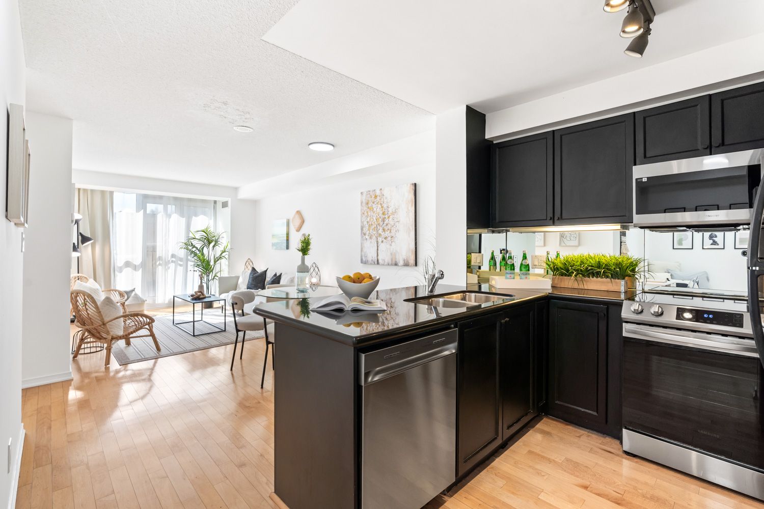 The centre of it all in little italy. Fifteen years ago, the current homeowners settled at 308 palmerston ave. #204 in the heart of little italy. The couple was drawn to its bright and airy feel, with natural light filling the space all day. Juliet balconies in the living room and bedroom frame part of the cn tower in the distance, a subtle reminder of everything the city offers just beyond. They loved the den's flexibility, large enough to spread out their work or roll out a yoga mat. The adjacent kitchen and ensuite laundry made it easy to keep an eye on the sauce while a load of laundry spins. What really made this home special extended past its walls. Countless milestones were celebrated in the party room. Hallway run-ins that turned into real friendships. The steady presence of a friendly concierge made them feel safe and cared for. But what sold them on the place was the neighbourhood, still thriving today. Strolls down historic, tree-lined annex streets. Dinners at dailo's vietnamese fusion and raval's spanish tapas in a hidden courtyard. Free cheese samples and vintage finds at kensington market. The indie vibe of queen west's trendy cafes and drake hotel haunts. Trinity bellwoods for frisbee games and buskers under shady oaks. Dim sum slurped from steamy carts at spots like dim sum king in chinatown. No car required. Everything's within walking distance or a short transit ride, making the location liveable year-round. Little italy is vibrant and connected but not loud and obnoxious. Set within a residential pocket, they truly had the best of both worlds. Reading this, you're likely wondering, "why are they moving?" their family is growing and a backyard is calling. The memories they'll take with them, but the rest stays here for someone new.