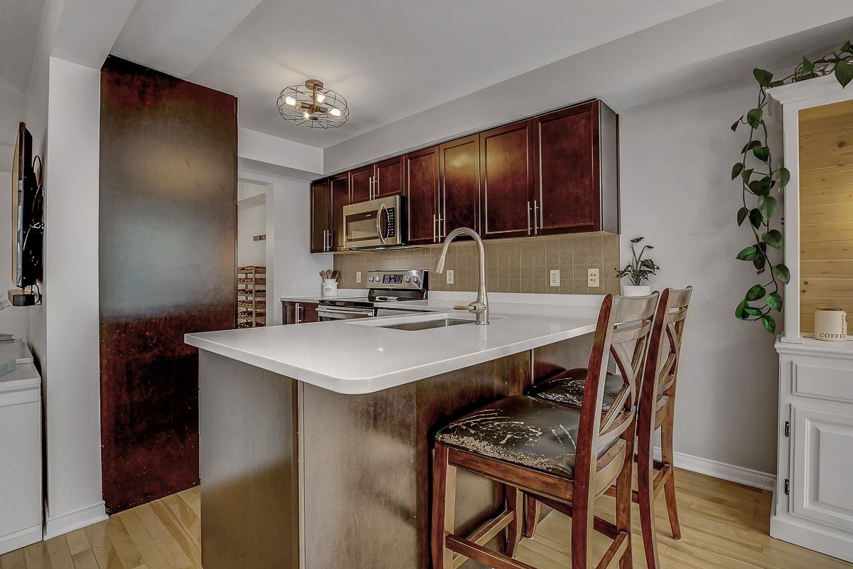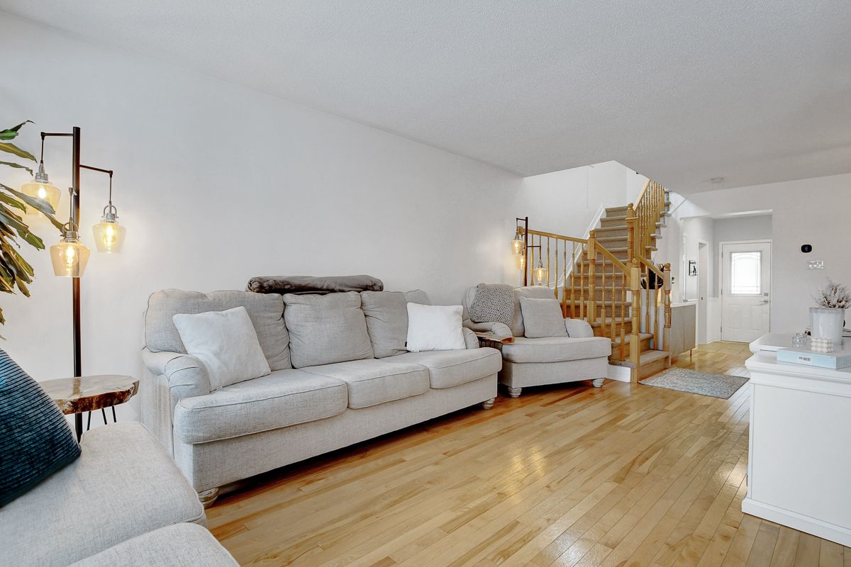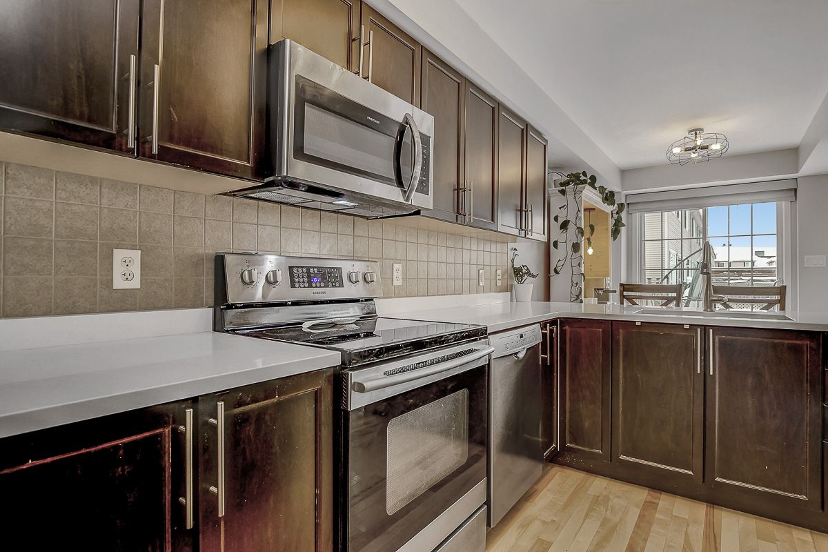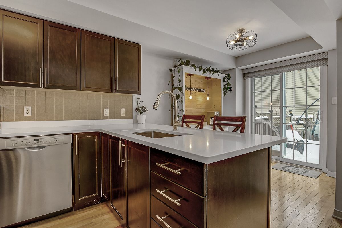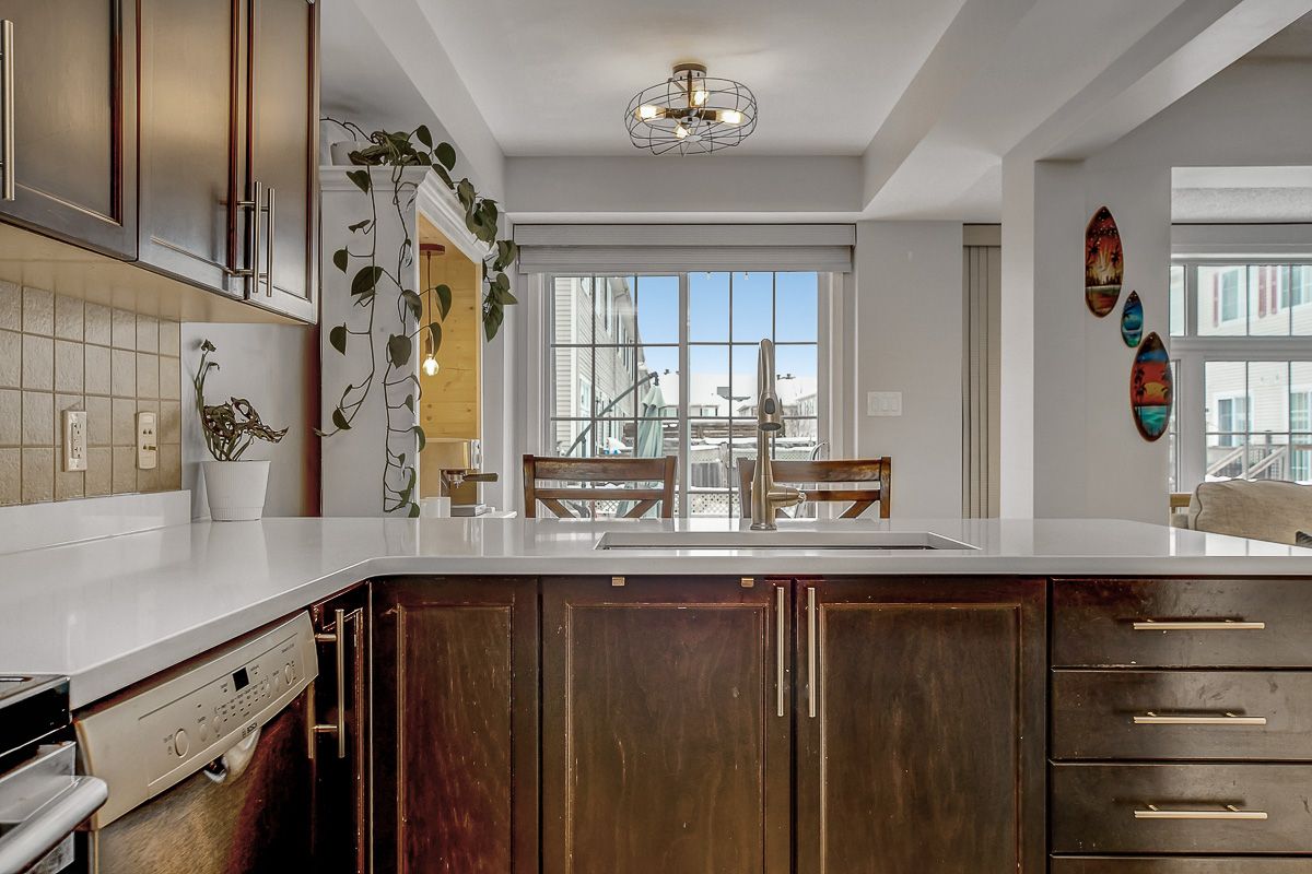 Welcome home to 308 tabaret, an exceptional end unit townhome in the sought after community of trailwest where space, sunlight, and comfort come together beautifully. From the moment you arrive, this home invites you in with warmth and possibility. Step through the front door into a welcoming foyer with generous closet space and a refreshed powder room designed for everyday ease. Gleaming hardwood floors lead you into a bright dining area filled with natural light, creating the perfect setting for memorable dinners and relaxed gatherings. The spacious family room offers an inviting place to unwind or entertain. In warmer months, step outside to your private interlock patio and enjoy your own outdoor retreat for morning coffee or summer evenings with friends. The kitchen has been elevated with brand new quartz countertops that bring a fresh, modern elegance to the space. Paired with stainless steel appliances, ample cabinetry, and generous prep space, it is both stylish and functional, ready for everything from quick breakfasts to weekend hosting. Upstairs, the primary suite feels like a true retreat with dual walk in closets and a private ensuite bath. Two additional bedrooms provide flexibility for family, guests, or a dedicated home office. Second level laundry adds everyday convenience. The finished lower level expands your living space with a cozy recreation room anchored by a natural gas fireplace. A workshop and abundant storage in the utility room complete the home. Located in a family friendly neighbourhood close to parks, schools, and everyday amenities, 308 tabaret offers the perfect balance of comfort and community. This is more than a townhome. It is a place to grow, gather, and create lasting memories.
