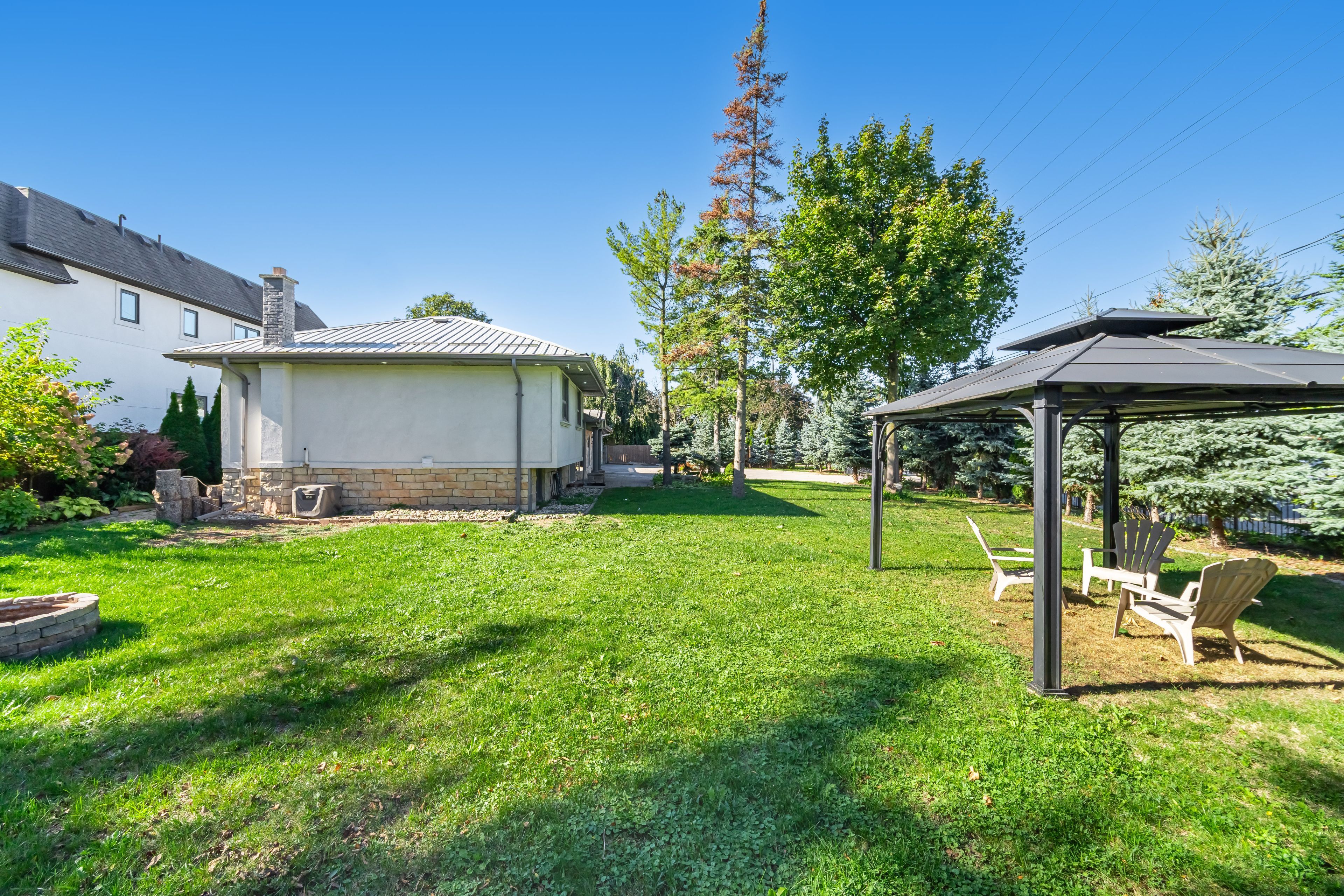 • Beautifully landscaped front and backyard with a gazebo, fire pit, and garden shed.