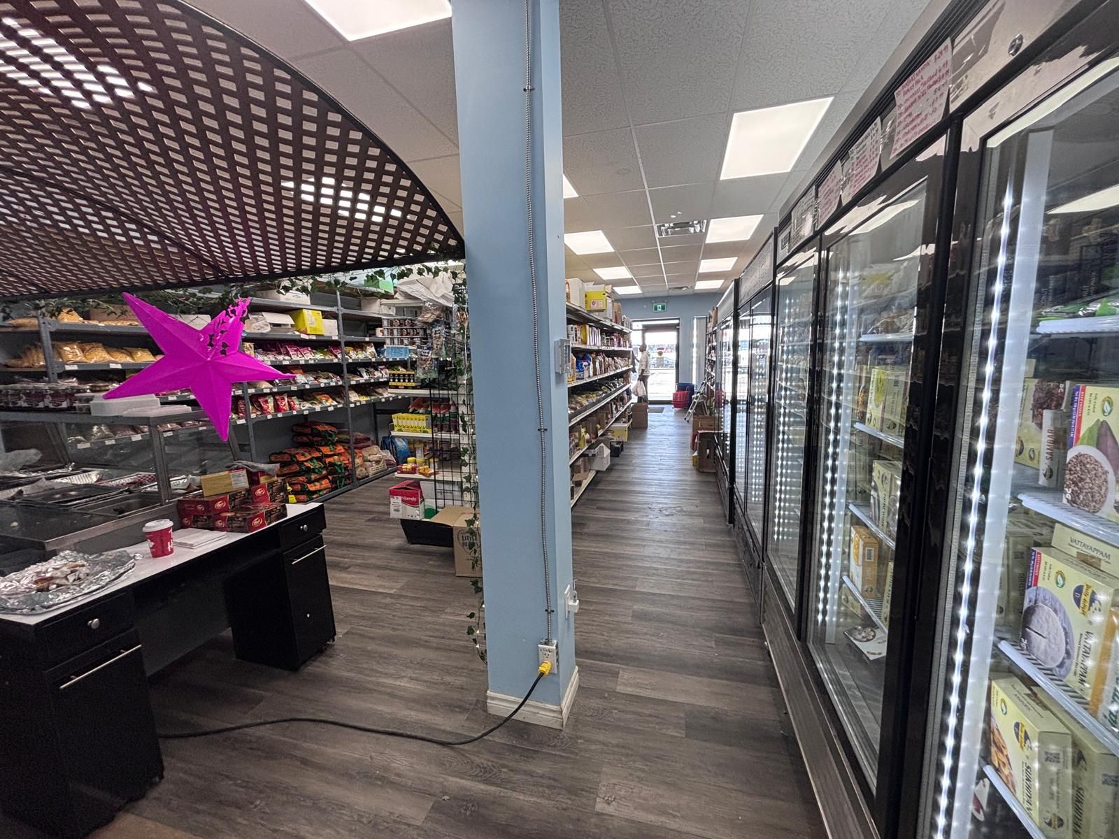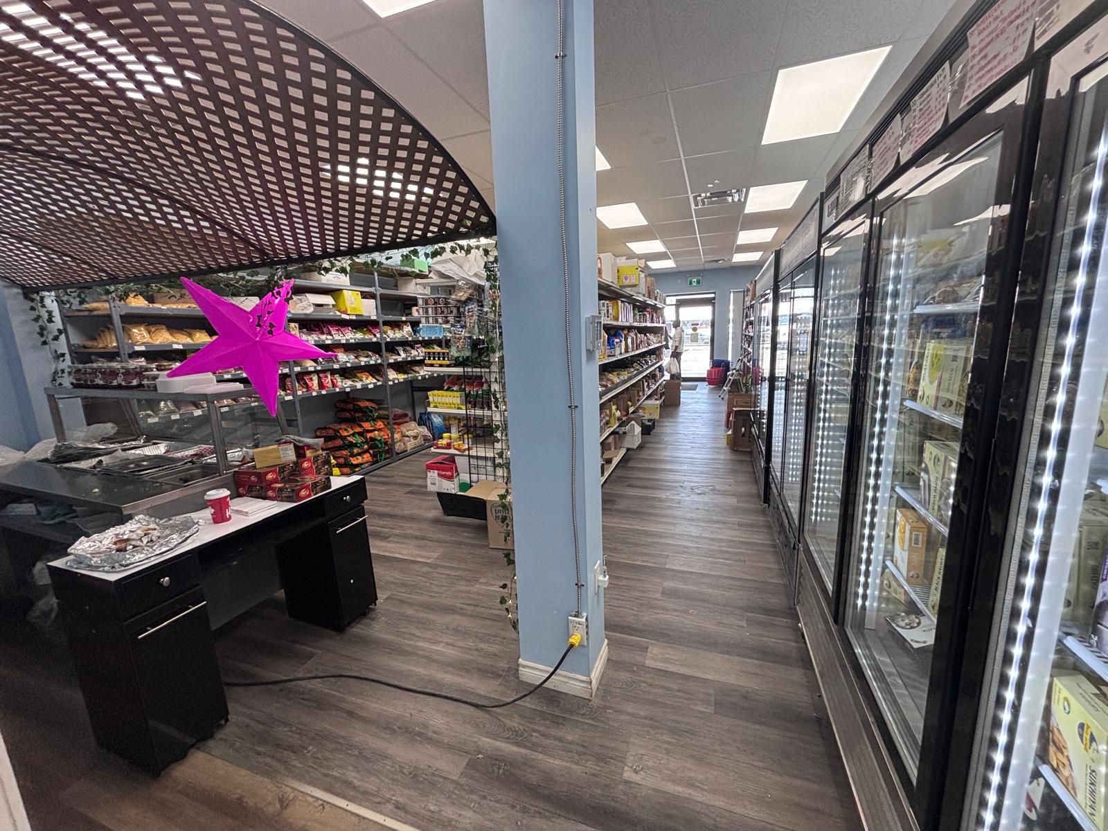 A well-established, fully stocked grocery store located in a high-traffic area with steady foot fall and loyal repeat customers. Ideal for owner-operators or investors looking for a profitable business with growth potential. Operating for over a years with proven revenue. Prime location near schools and residential neighbourhood and excellent local reputation with loyal customer base and consistent weekly sales and strong margins. Ample parking space available and reputable national tenants in plaza. Fixtures & equipment includes commercial walk-in cooler & freezer units, beverage coolers , display shelves and checkout counter . Good size 1433 sqft space with low monthly rent of 3223. 73 including taxes and two (5) years terms remaining.