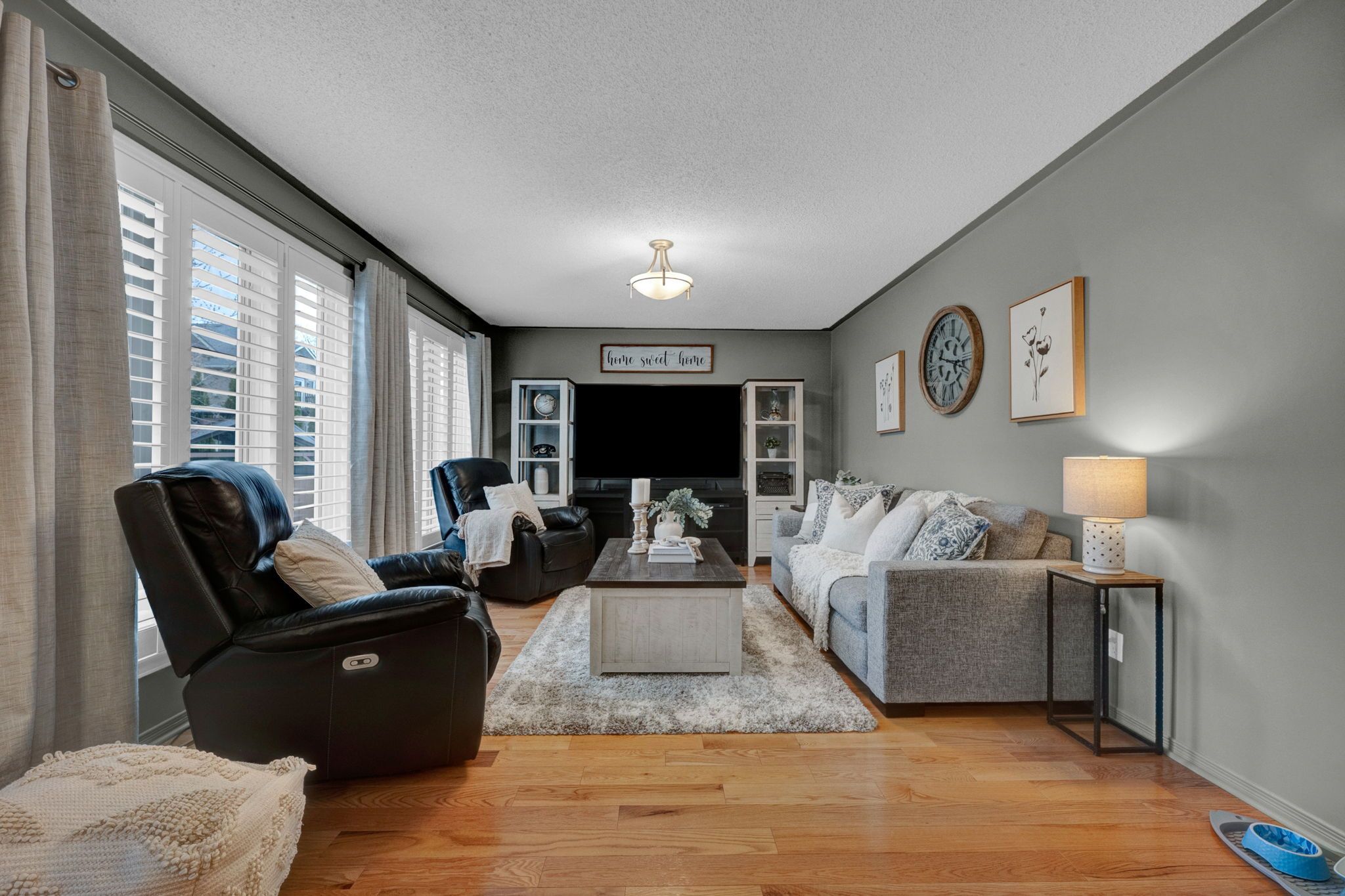 Lovely raised bungalow in desirable woodland acres, offering space, comfort, and thoughtful updates throughout. The carpet-free main floor features hardwood flooring in the main living areas, laminate in the bedrooms, and an open-concept kitchen, living, and dining area with three well-sized bedrooms. The bright lower level includes two additional generous bedrooms with above-grade windows-ideal for larger families or multi-generational living. This well-maintained home offers three full bathrooms, with new toilets in all bathrooms and new vanities in the upper-level baths. The kitchen includes stainless steel appliances, a dual granite sink, and a walkout to a large deck with a 10 x 10 gazebo-perfect for outdoor entertaining. The fully fenced backyard provides privacy and space to enjoy. Additional features include california shutters throughout, a gas line for bbq, access to the garage from inside the home, and an in-ground sprinkler system in the front yard. Furnace (2019) and shingles (2018) offer peace of mind. No water bill-water and sewer costs are conveniently included in the property taxes. Ideally located just minutes from lakefield, trent university, shopping, and the peterborough zoo, with plenty of nearby walking trails.