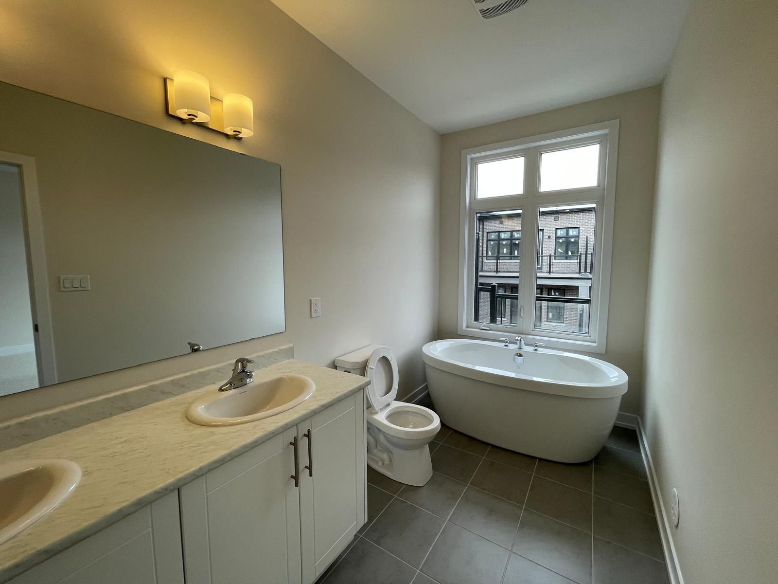 New modern 3-story townhome, less than year old, newer stainless steel appliances, good size 4-bedrooms, 4-washrooms, large windows thru-out, located in a high demand neighborhood, best rated schools of oakville in the area, contemporary style beautiful 3-story townhouse, 2360 sq. Ft., high 10' feet ceiling on upper level, 13' ft ceiling on 3rd floor bedroom 2 and 3, huge primary bedroom with walk-in closet, 5 pcs en-suite, walk out to terrance, open-concept living space, separate home office with large window, tons of sunlight in day time all over the house, built-in double-car garage for ample parking and extra storage space, you can park two standard cars outside the garage. Kitchen with stainless steel appliances built-in dishwasher, french door fridge, ceiling height cabinets with tons of storage, huge center island with quartz counter-top, huge family room with open concept walk out to good size balcony for entertainment, 4th bedroom with full washroom on main floor, double garage, minutes to hwy 407, 403, walmart, costco, canadian tire, shopping, go station, restaurants, banks and much more!!! Appliances, window coverings and garage door opener is ordered and will be installed before occupancy!