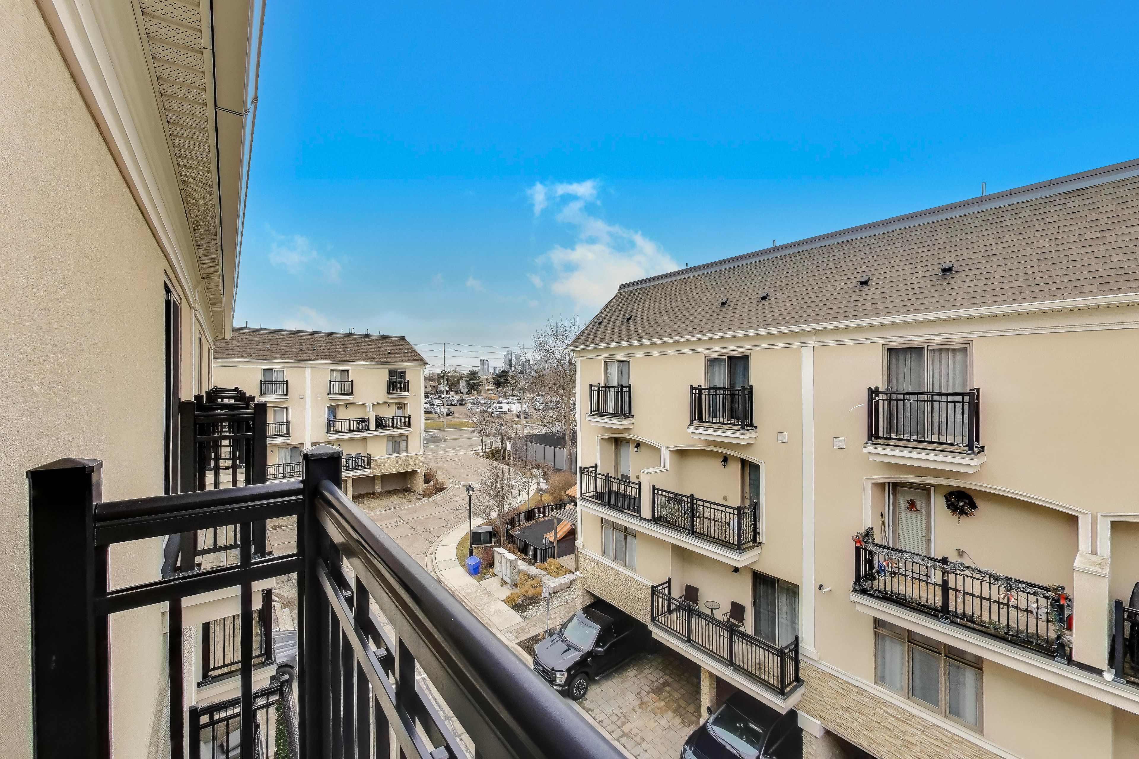 Welcome to elevated living in the heart of applewood, one of mississauga's most established and family-friendly communities. This sun-filled, south-facing 2-bedroom, 2-bathroom townhouse offers the perfect blend of modern sophistication, functional design, and effortless low-maintenance living. From the moment you step inside, the home feels bright, airy, and inviting. The open-concept living, dining, and kitchen space is thoughtfully designed for both comfortable everyday living and easy entertaining, finished with luxurious statuario marble tile flooring, sleek black quartz countertops, stainless steel appliances, and a fresh designer-inspired palette that creates a truly move-in-ready experience. The home's soaring 10-foot ceilings on the second level and 9-foot ceilings on the third add a sense of volume and elegance rarely found in townhouse living, while multiple private balconies provide the perfect spots to enjoy your morning coffee, unwind in the evening, or entertain outdoors. A gas bbq hookup makes summer hosting effortless. Freshly painted and vacant, this residence offers the flexibility today's buyers value most, with easy showings, immediate enjoyment, and flexible closing options. Two parking spaces provide exceptional convenience for busy households and visiting guests alike. Beyond the home itself, the well-maintained, family-oriented complex features its own private park, creating a welcoming community atmosphere with green space just steps from your door - ideal for young families, dog owners, or anyone who appreciates outdoor living. Perfectly positioned just minutes to hwy 401, the qew, square one, sherway gardens, top schools, parks, and daily essentials, this is a home that truly complements a connected, effortless lifestyle. Whether you're looking for your next family home, a stylish downsizing move, or an elegant turnkey property in a prime mississauga location, this applewood gem delivers the lifestyle buyers are searching for.