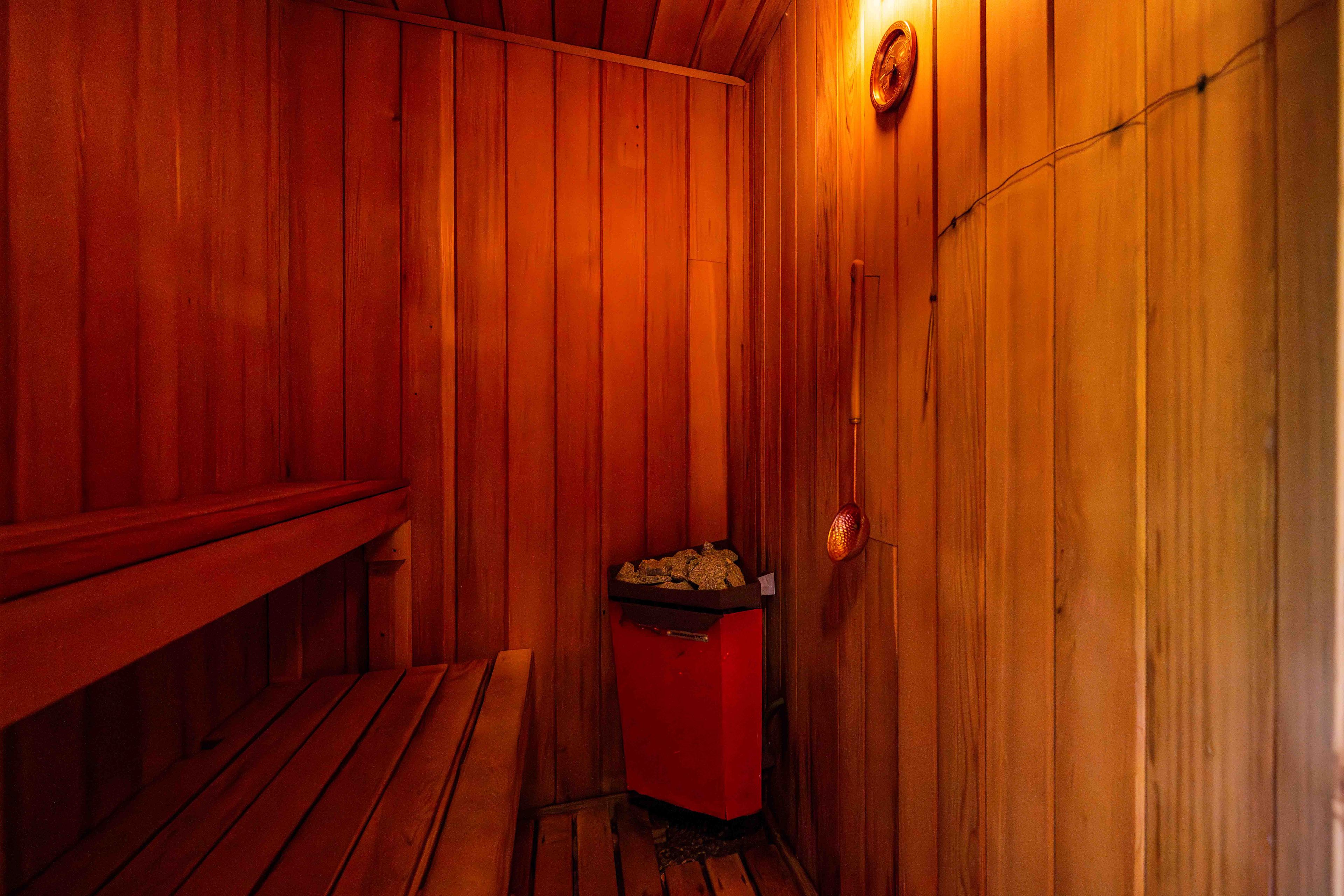 • Outdoor sauna and pond create a relaxing atmosphere for unwinding.