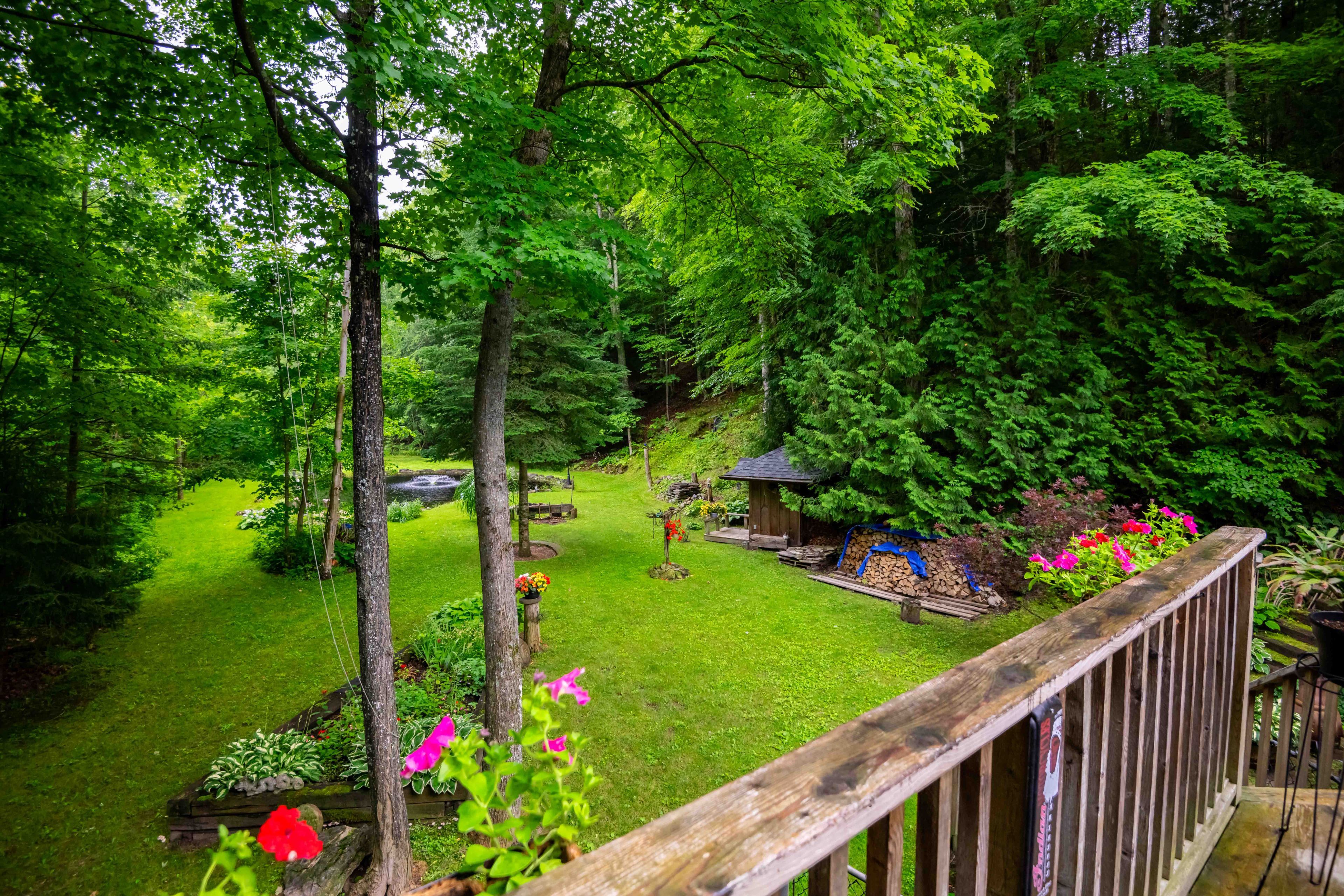 **public open house sat, april 11, 1-3pm**welcome to this warm and welcoming viceroy-style home set on a spacious 1. 87-acre lot in beautiful mono. If you've been dreaming of a quieter lifestyle surrounded by nature, this property is your chance to make that dream a reality. The eat-in kitchen offers a breakfast bar and walk-out to the back deck - perfect for morning coffee or casual meals. There's also a separate dining room with its own walk-out, ideal for hosting family dinners or special occasions. The great room is filled with natural light thanks to its large windows and vaulted ceiling, offering views of the peaceful backyard. For more laid-back hangouts, there's a separate family room that also walks out to the deck. A convenient 2 piece bathroom is located nearby for guests. This home features 3 bedrooms and 3 bathrooms, including a main level primary bedroom with a walk-in closet, updated 4 piece ensuite, and its own walk-out to the deck. Upstairs, bedrooms two and three each have their own vaulted ceilings, giving them an open and airy feel. You'll also appreciate the updated main floor laundry and the insulated 2 car garage, which adds extra storage and keeps your vehicles out of the weather. Surrounded by mature trees, the property feels private and serene. A quiet pond with a soothing water feature adds to the sense of calm, and an invisible fence keeps your pets safe while they explore. When its time to unwind, head out to the outdoor sauna and soak in the peaceful setting.