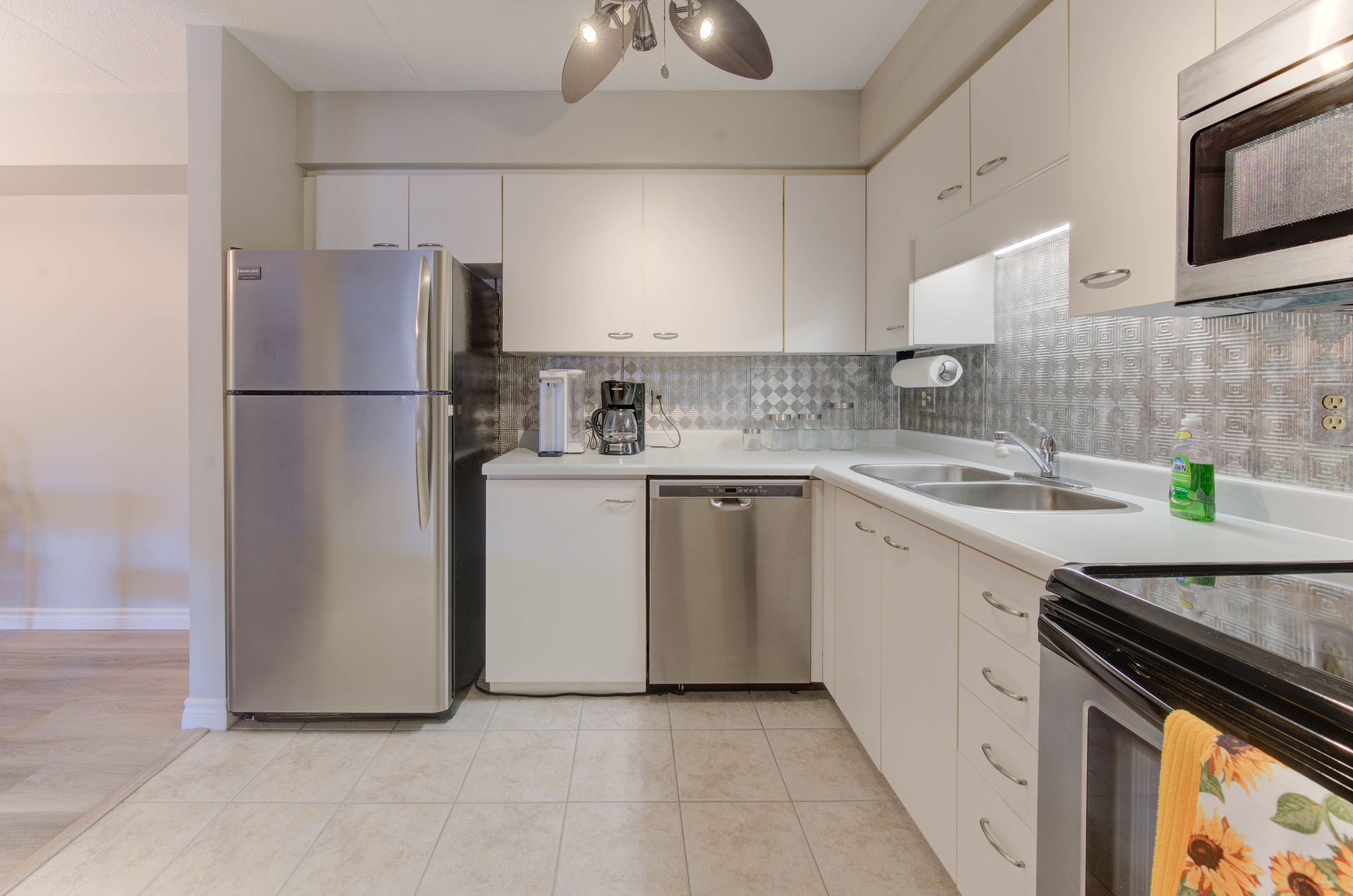 Don't miss out on this well kept, clean and affordable 2 bedroom condo with close proximity to the 401, this move in ready condo is perfect for first time buyers, downsizers or investors in a well kept quiet complex, fantastic layout with large living room including a decorative fireplace that is perfect for gatherings with family or relaxing evenings, freshly painted throughout with updated laminate flooring the condo has a modern, clean feel, the kitchen is equipped with plenty of cupboard space including a stainless steel stove, fridge, dishwasher and built in microwave, the separate formal dining area offers additional space, whether for meals or a home office area, the newer sliding door leads to your own recently upgraded private balcony, both bedrooms are generously sized, the bathroom has a full-sized tub and shower, there is an in-suite washer and dryer for added convenience as well as a newer owned water softener, forced air furnace and central air conditioning make this home a must see, with quick possession available this condo offers the perfect blend of comfort and convenience, located within walking distance to fairview mall, grocery stores, lrt and grt stops, and a wide range of shops and restaurants, you'll enjoy easy access to all the amenities you will need, this is a rare opportunity to buy in a such a sought after area - book your showing today!
