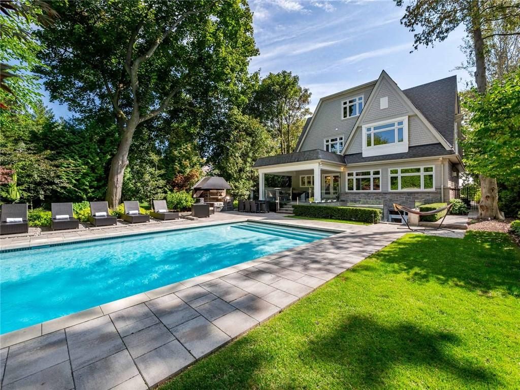 Set on prestigious lakeshore road in roseland one of burlington's most sought-after neighbourhoods this custom-built residence offers over6,000 square feet of finely finished living space on a rare217-ft-deep property. Located within the tuck/ nelson school district, just steps from the lake, it combines an exceptional address with remarkable scale and design. The main level is anchored by an elegant great room with a gas fireplace, custom built-ins with glass accents & expansive windows overlooking the rear gardens. A private home office, formal dining area with a wet bar, & a chef's kitchen designed for both daily living & entertaining set the tone for the home. The kitchen features a large quartz island with seating, dual dishwashers, dual frigidaire professional wall ovens, a gas range with decorative hood, warming drawer, microwave, & a kitchen aid s/s refrigerator with ice & water. Custom soft-close cabinetry, a walk-in pantry, & a walkout to the covered patio complete this well appointed space. A separate main floor laundry room with custom cabinetry, quartz counters & washer/ dryer adds convenience. Upstairs, four bedrooms each feature their own private ensuite baths & custom closet organizers, including a self-contained in law suite with a separate entrance featuring a living area, bedroom, and full bath, ideal for extended family or guests. The third-floor loft, currently used as a gym, offers flexibility as an additional bedroom or creative studio. The fully finished lower level extends the living space with a large recreation room with a wet bar, sitting area with gas fireplace, sixth bedroom with ensuite, music/media room,& a walk-up to the backyard. Set on a 200ft-deep lot, the property offers rare privacy & scale, with a resort-style backyard featuring a heated saltwater pool, stone patio, covered terrace, &outdoor kitchen. A three-car garage & additional parking complete this home, just minutes from downtown burlington & the lake. Luxury certified
