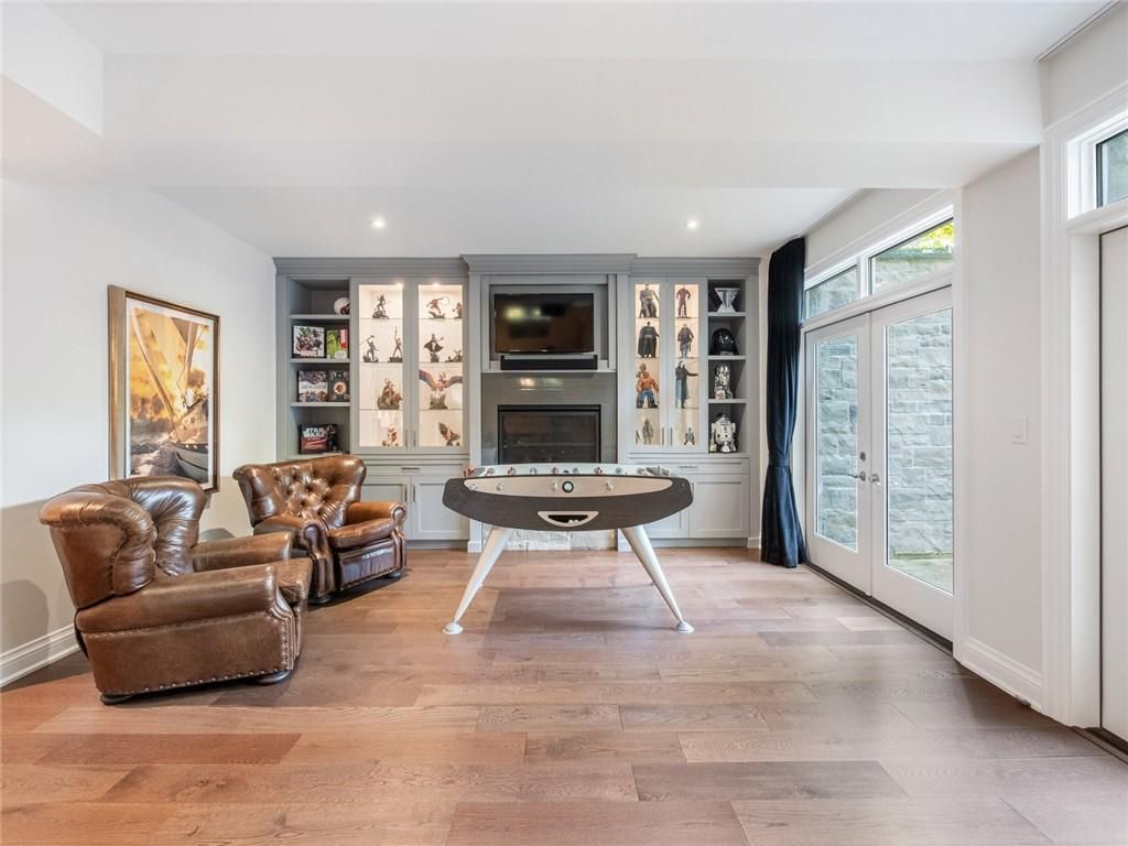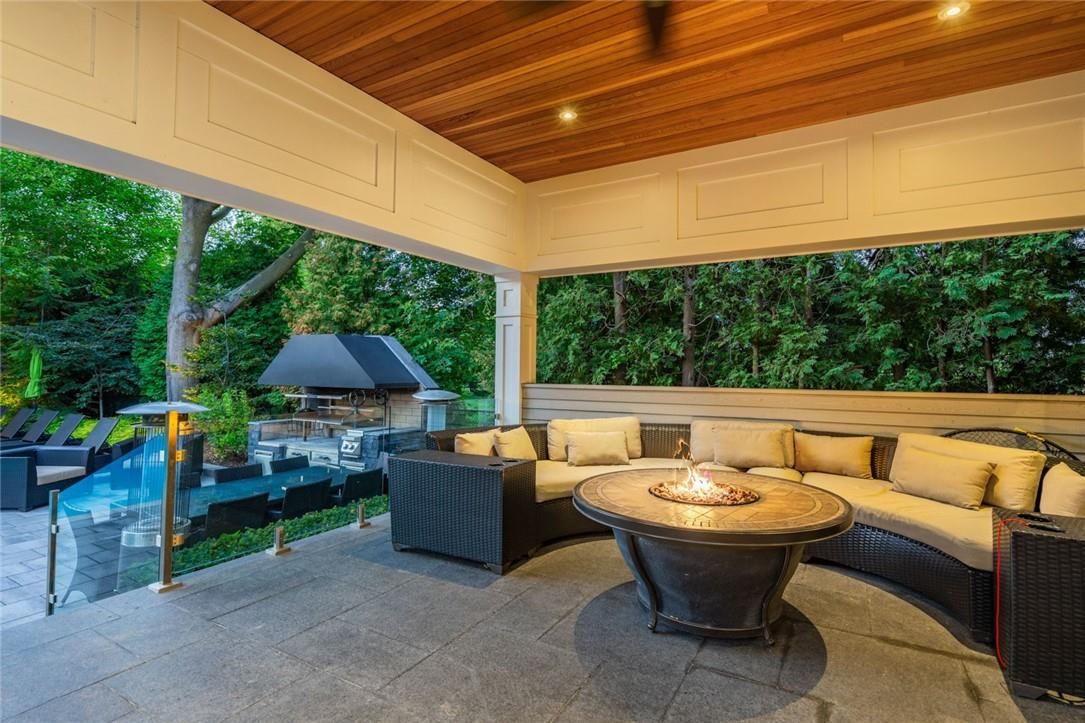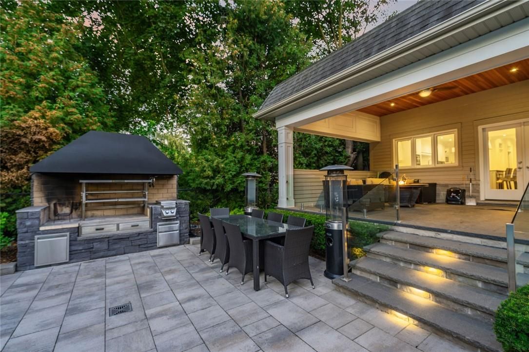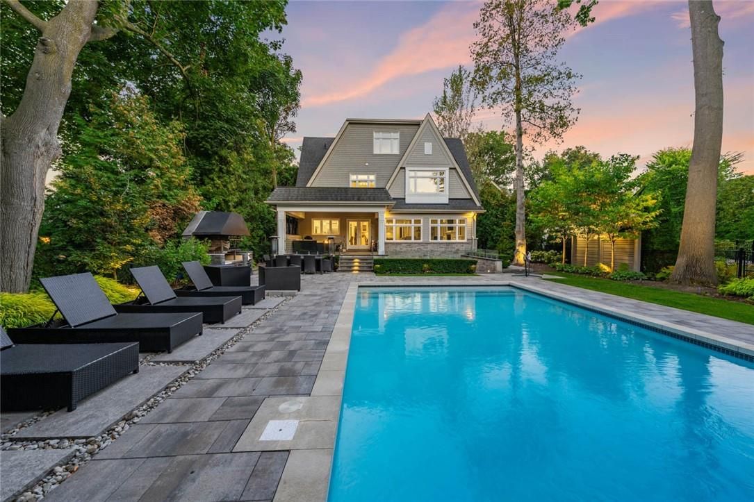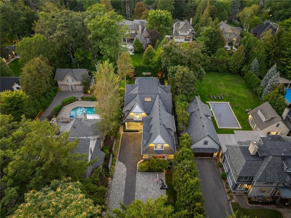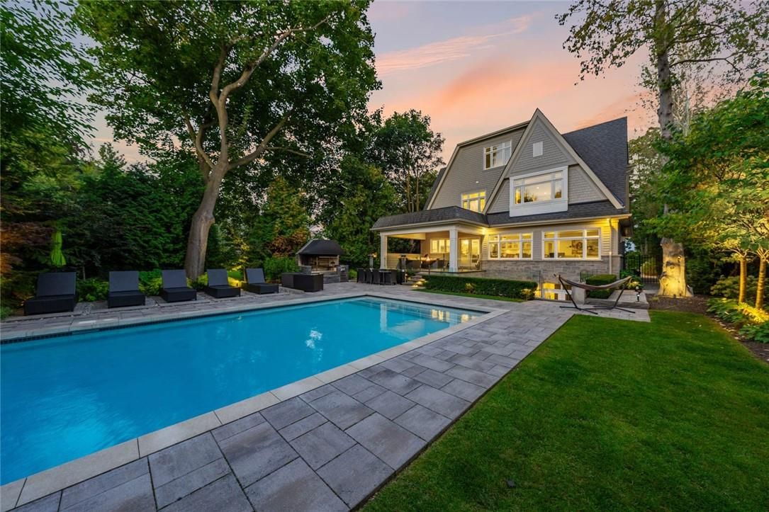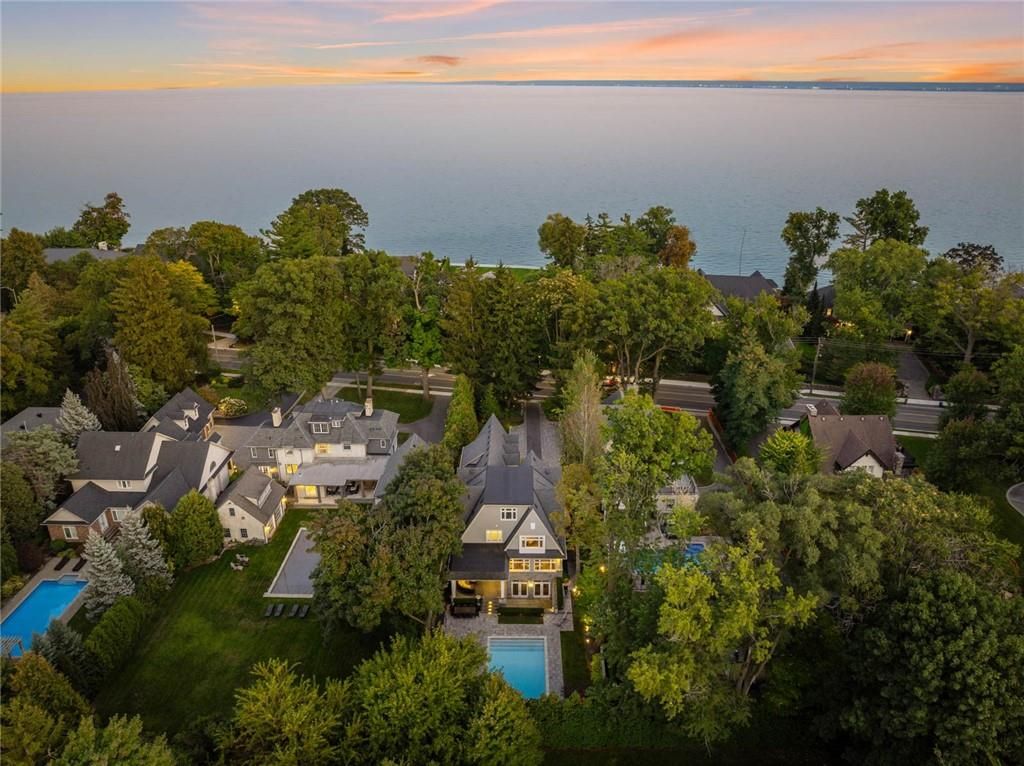 Set on prestigious lakeshore road in roseland one of burlington's most sought-after neighbourhoods this custom-built residence offers over6,000 square feet of finely finished living space on a rare217-ft-deep property. Located within the tuck/ nelson school district, just steps from the lake, it combines an exceptional address with remarkable scale and design. The main level is anchored by an elegant great room with a gas fireplace, custom built-ins with glass accents & expansive windows overlooking the rear gardens. A private home office, formal dining area with a wet bar, & a chef's kitchen designed for both daily living & entertaining set the tone for the home. The kitchen features a large quartz island with seating, dual dishwashers, dual frigidaire professional wall ovens, a gas range with decorative hood, warming drawer, microwave, & a kitchen aid s/s refrigerator with ice & water. Custom soft-close cabinetry, a walk-in pantry, & a walkout to the covered patio complete this well appointed space. A separate main floor laundry room with custom cabinetry, quartz counters & washer/ dryer adds convenience. Upstairs, four bedrooms each feature their own private ensuite baths & custom closet organizers, including a self-contained in law suite with a separate entrance featuring a living area, bedroom, and full bath, ideal for extended family or guests. The third-floor loft, currently used as a gym, offers flexibility as an additional bedroom or creative studio. The fully finished lower level extends the living space with a large recreation room with a wet bar, sitting area with gas fireplace, sixth bedroom with ensuite, music/media room,& a walk-up to the backyard. Set on a 200ft-deep lot, the property offers rare privacy & scale, with a resort-style backyard featuring a heated saltwater pool, stone patio, covered terrace, &outdoor kitchen. A three-car garage & additional parking complete this home, just minutes from downtown burlington & the lake. Luxury certified