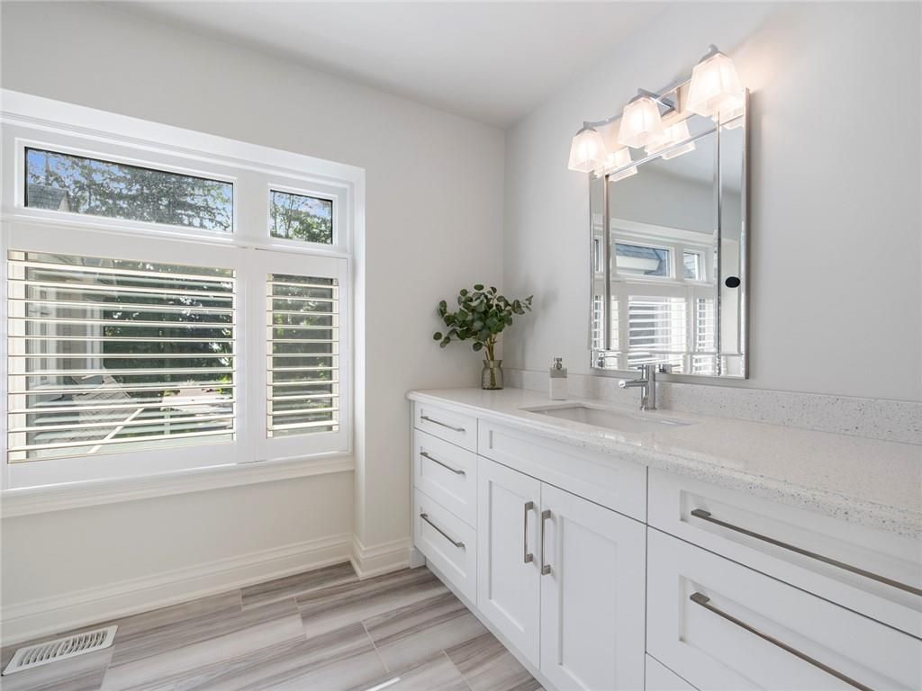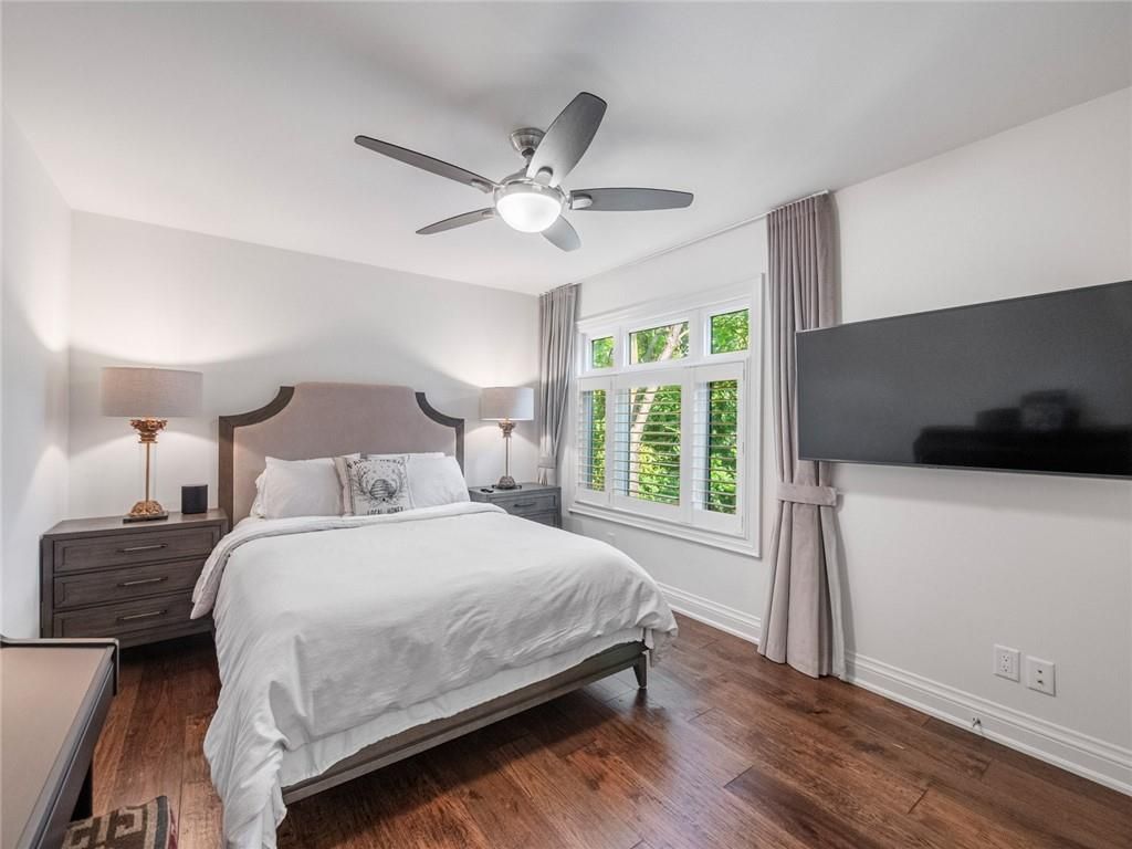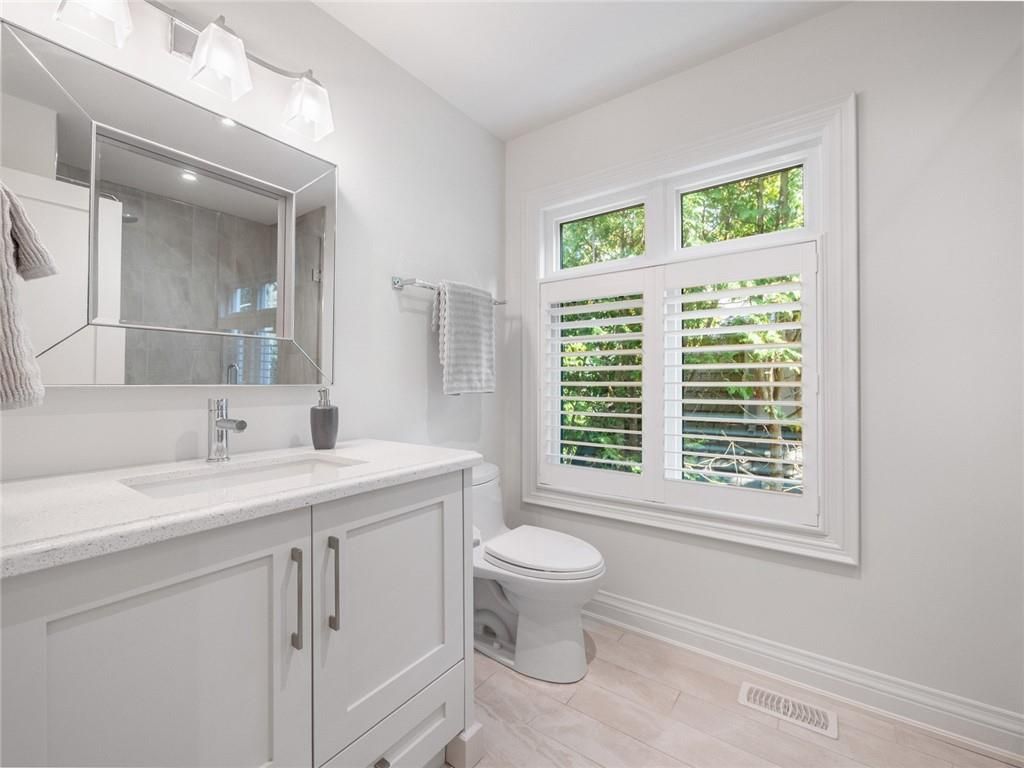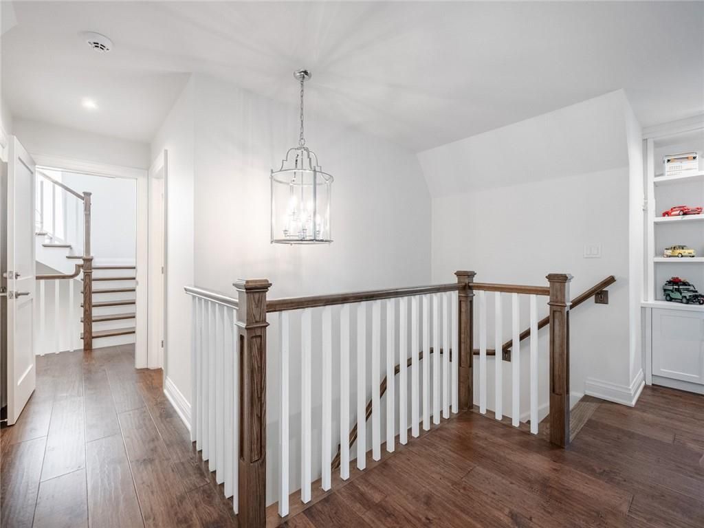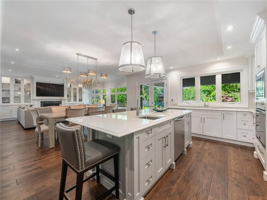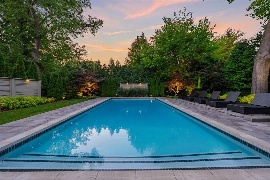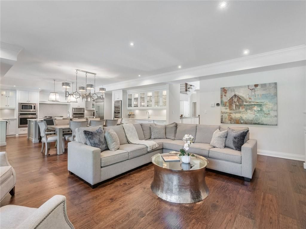Set on prestigious lakeshore road in roseland one of burlington's most sought-after neighbourhoods this custom-built residence offers over6,000 square feet of finely finished living space on a rare217-ft-deep property. Located within the tuck/ nelson school district, just steps from the lake, it combines an exceptional address with remarkable scale and design. The main level is anchored by an elegant great room with a gas fireplace, custom built-ins with glass accents & expansive windows overlooking the rear gardens. A private home office, formal dining area with a wet bar, & a chef's kitchen designed for both daily living & entertaining set the tone for the home. The kitchen features a large quartz island with seating, dual dishwashers, dual frigidaire professional wall ovens, a gas range with decorative hood, warming drawer, microwave, & a kitchen aid s/s refrigerator with ice & water. Custom soft-close cabinetry, a walk-in pantry, & a walkout to the covered patio complete this well appointed space. A separate main floor laundry room with custom cabinetry, quartz counters & washer/ dryer adds convenience. Upstairs, four bedrooms each feature their own private ensuite baths & custom closet organizers, including a self-contained in law suite with a separate entrance featuring a living area, bedroom, and full bath, ideal for extended family or guests. The third-floor loft, currently used as a gym, offers flexibility as an additional bedroom or creative studio. The fully finished lower level extends the living space with a large recreation room with a wet bar, sitting area with gas fireplace, sixth bedroom with ensuite, music/media room,& a walk-up to the backyard. Set on a 200ft-deep lot, the property offers rare privacy & scale, with a resort-style backyard featuring a heated saltwater pool, stone patio, covered terrace, &outdoor kitchen. A three-car garage & additional parking complete this home, just minutes from downtown burlington & the lake. Luxury certified
