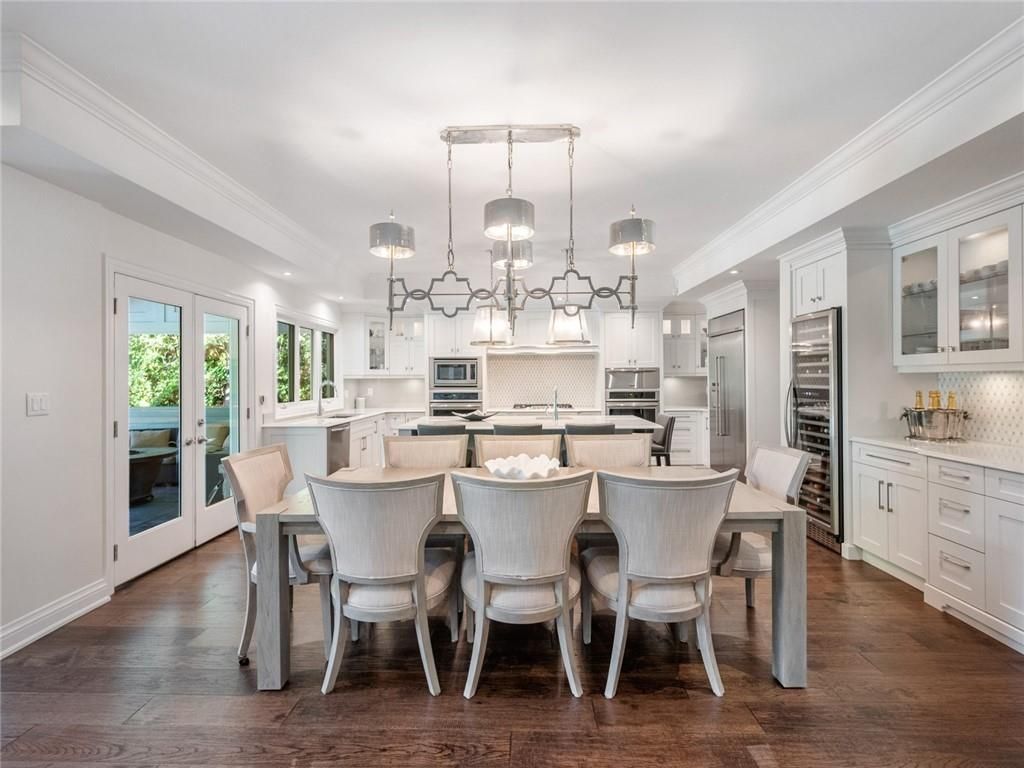 • Chef's kitchen with high-end appliances and large quartz island.