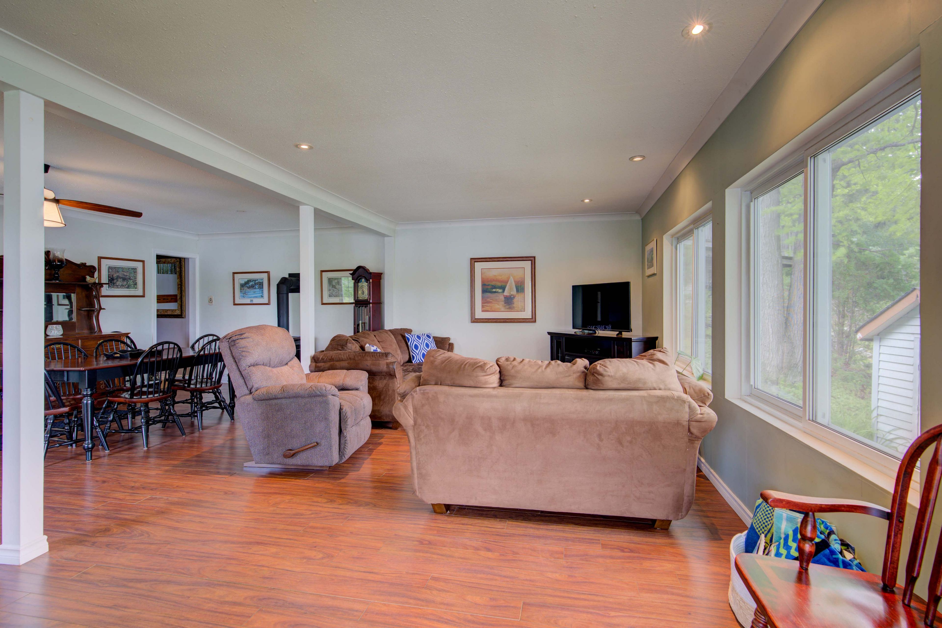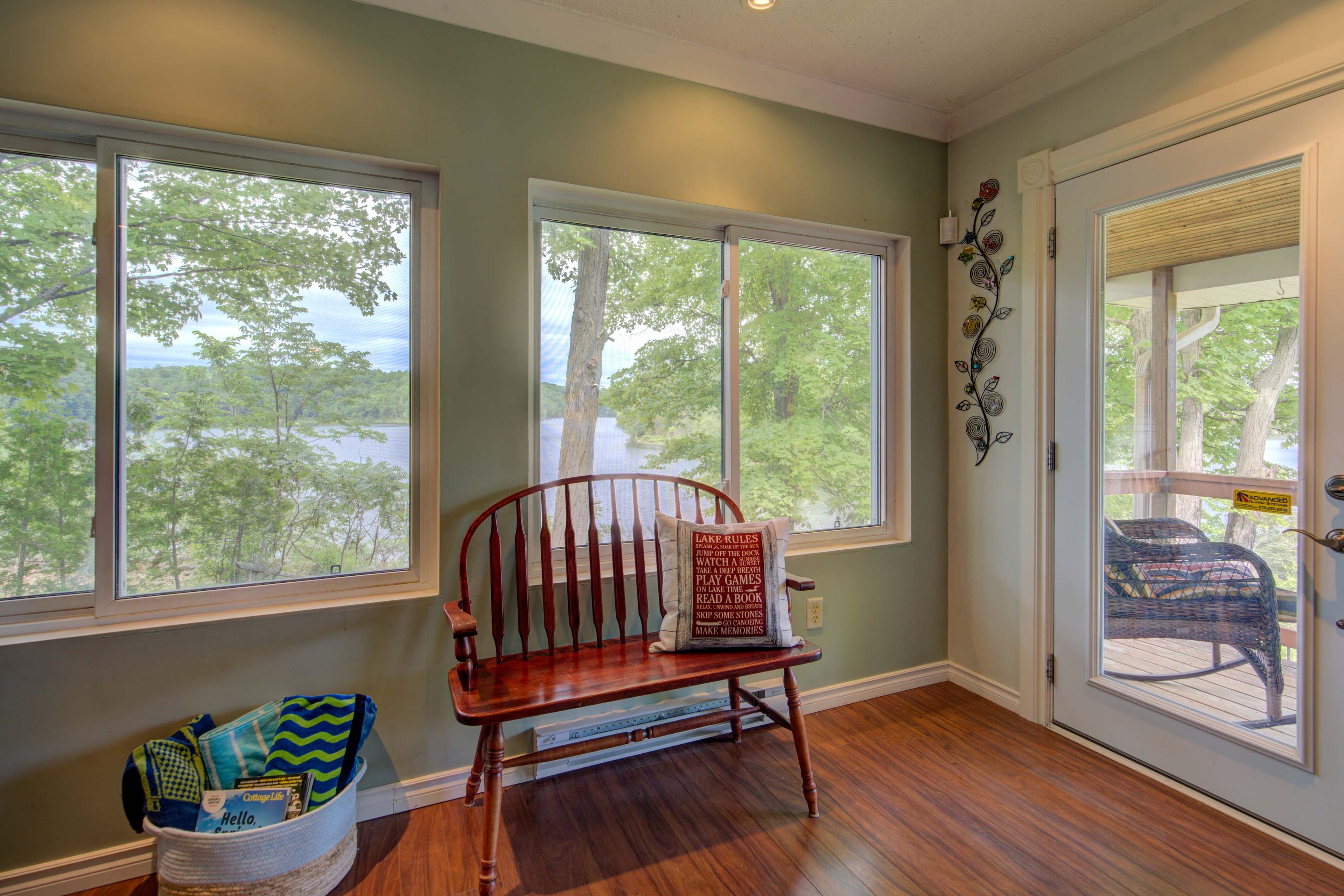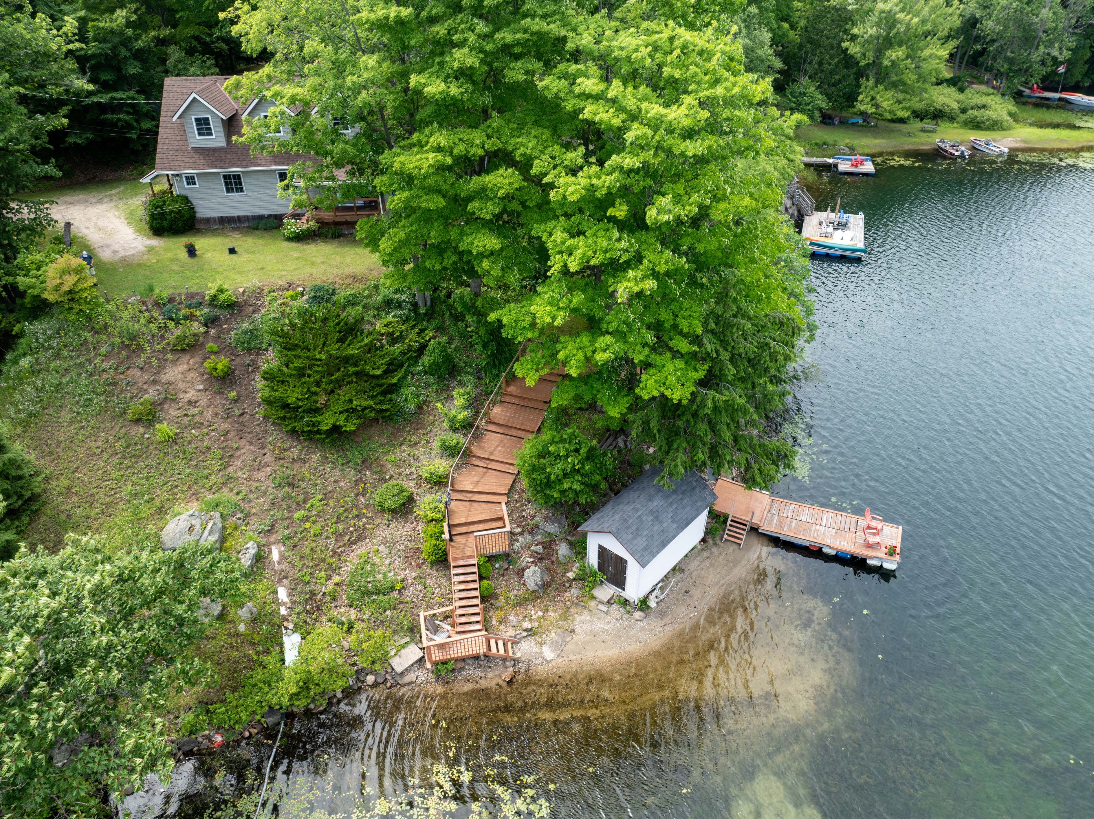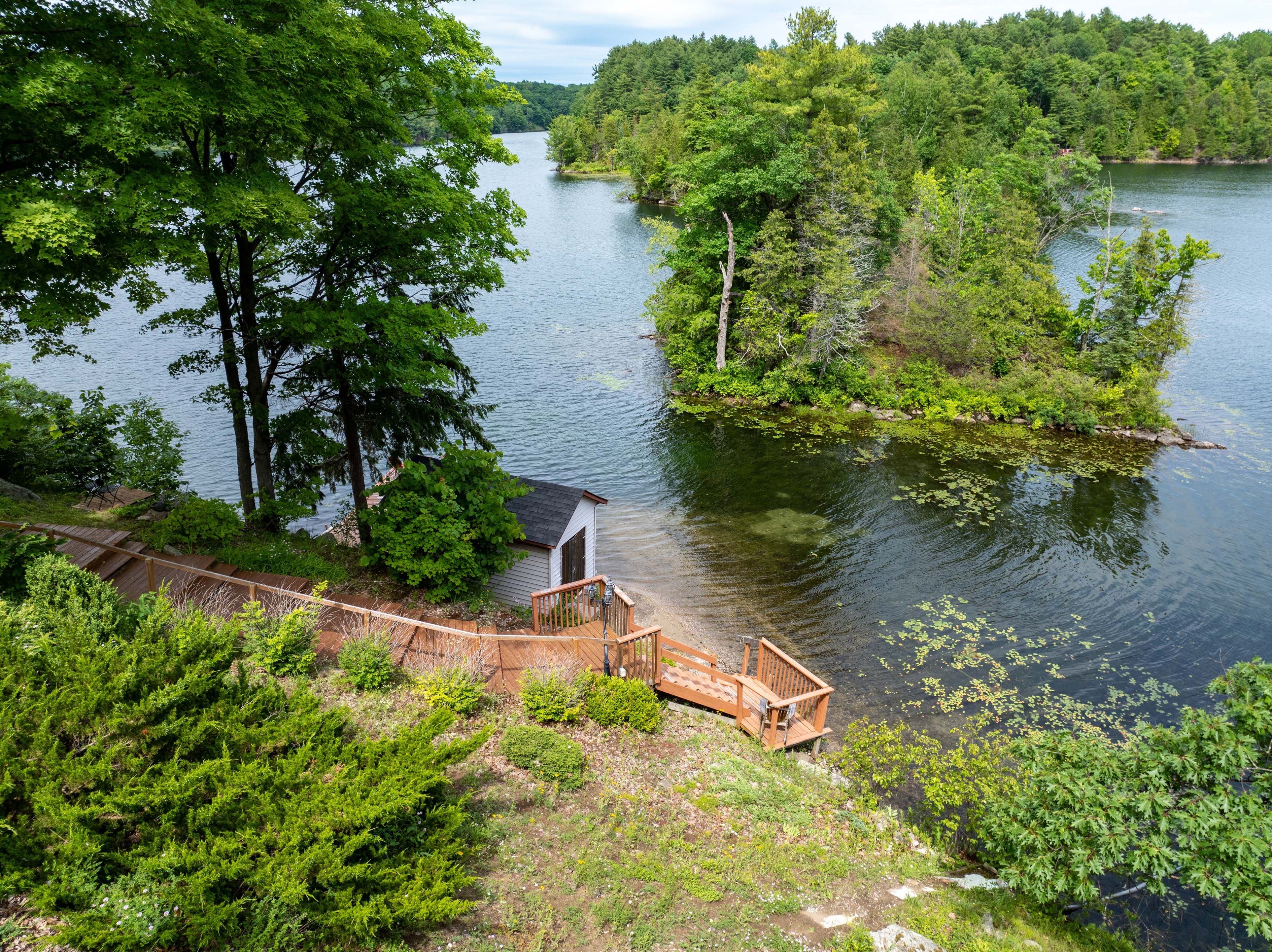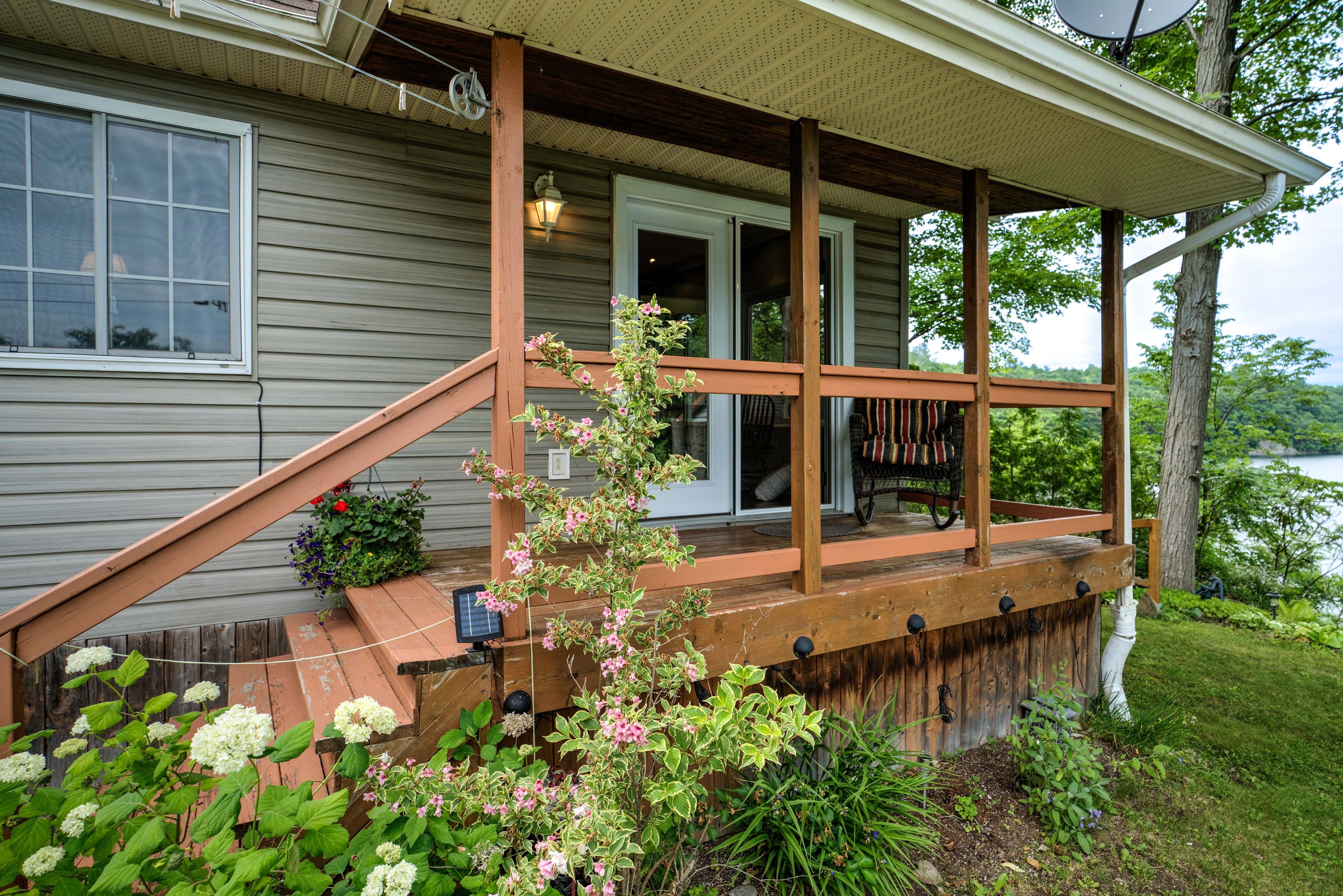 Lakefront living awaits! Sitting nestled in the trees on a hill above beautiful thirty island lake sits this charming property. A beautifully landscaped yard surrounds this 3-bedroom, 1-bathroom home. The main floor plan consists of a large open living room, dining area with propane stove and attached kitchen. There is also a main floor bedroom and a three-piece bathroom located on this level. Up the stairs, you will find two large bedrooms with dormers overlooking the beautiful yard and waterfront. The internet at this property is great for your work from home potential! The house sits on a spray foam insulated crawl space and has a heated waterline and uv system. Walk through the gardens and down the pathway to a gradual staircase that will take you to the waterfront. Once you are down at the lake, you will find a large storage shed, a sandy beach area and deeper water off the end of the dock. Located right out front is your very own island that you can access by walking from the beach area. Your kids or grand-kids will love this waterfront and be able to explore their island while playing and creating lasting lake memories. Thirty island lake is approximately 558 acres in size and has a maximum depth of 105' and an average depth of 37'. Fishing here is fantastic with large and small-mouth bass, black crappie and northern pike. This property is located only 24 minutes from the village of westport where you will find most amenities or about 45 minutes to kingston. This waterfront home or cottage is warm and welcoming and ready for its new owner to make memories at the lake!