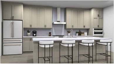 • Designer kitchen with quartz countertops and soft-close cabinetry.