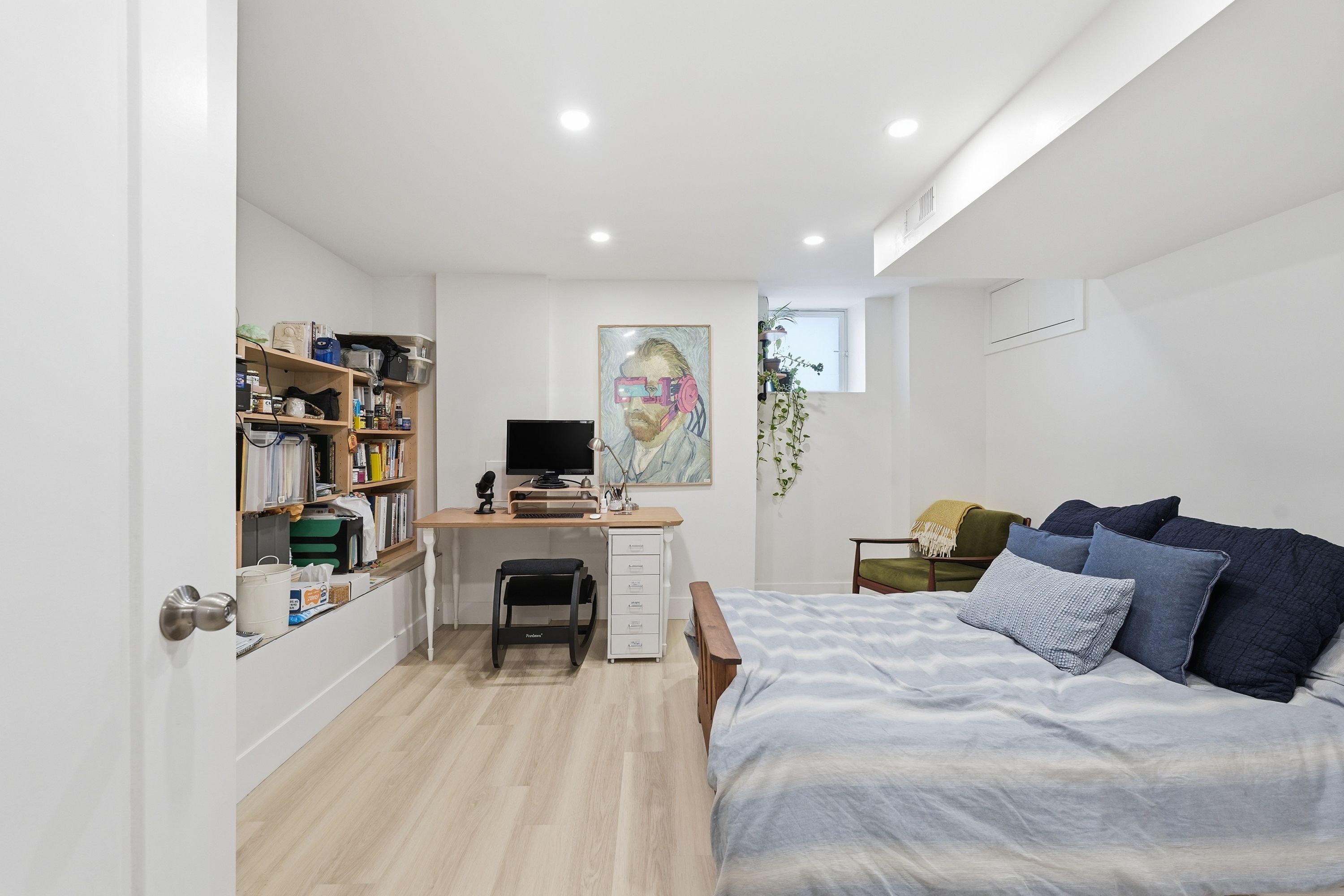 Charming all-brick semi-detached home in a prime central hamilton neighbourhood, steps to every amenity. This versatile property is ideal for investors or end users, currently set up as two units but easily converted back to a spacious single-family home. Live in one unit and rent the other, or lease both. The main level offers a flexible bedroom w/ pocket doors, living room, kitchen & 3pc bath. A professionally finished basement adds a primary bedroom, 4pc bath, laundry & storage. Original charm includes hardwood floors w/ inlay, pocket doors & high ceilings. The second level features a bright living/dining area, bedroom, 4pc bath & kitchen w/ its own laundry. Enjoy a low-maintenance lot w/ private fenced yard, shrubs & trees. Major updates include brickwork, chimney & fully renovated basement. Steps to hospital, go, shops, parks, bayfront, james north & more.