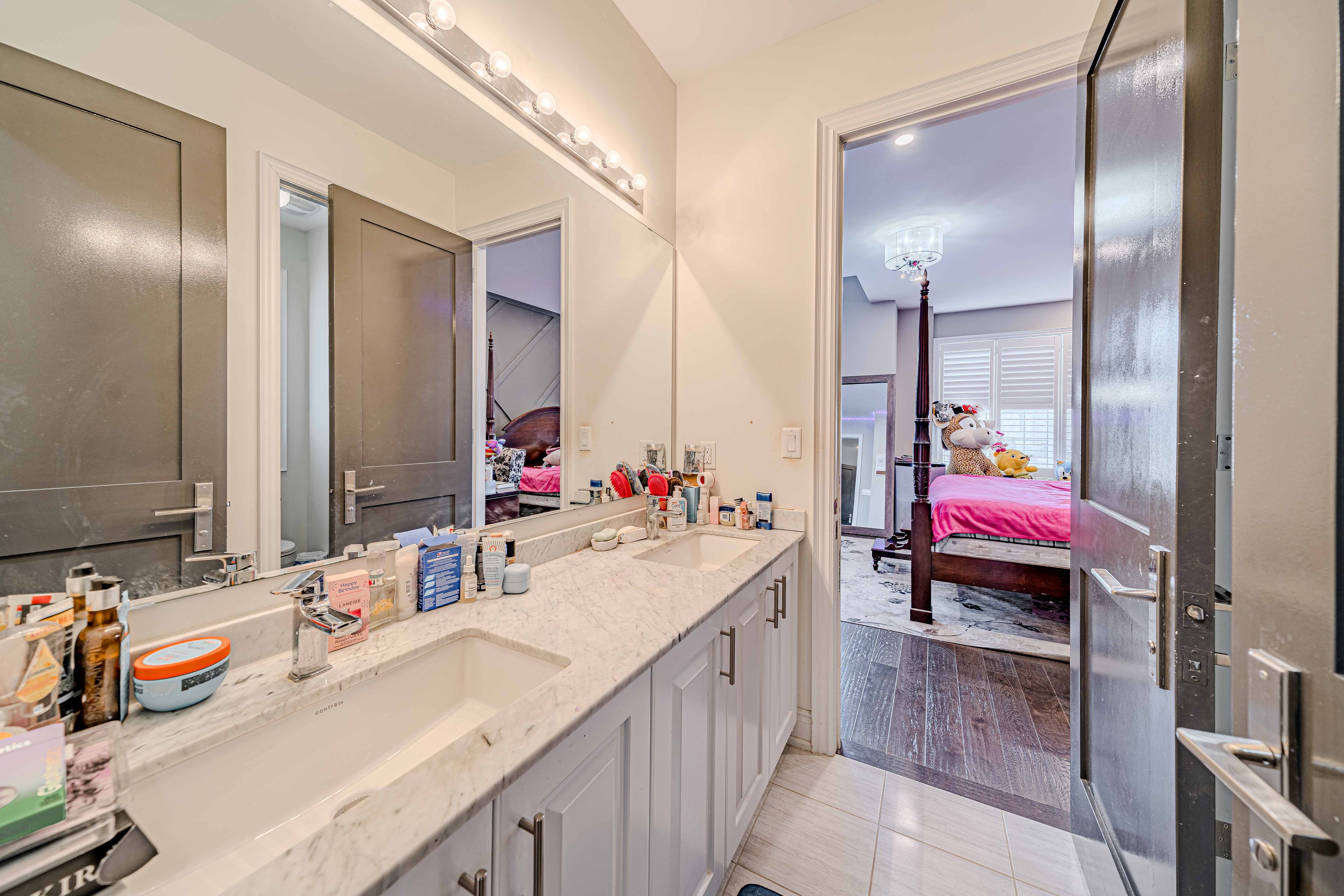 Exquisite luxury home on a ravine lot in prestigious seven oaks! Boasting over 5,400 sq. Ft. Of opulent living space, including 3,600+ sq. Ft. Above grade, this masterpiece is designed for those who appreciate fine craftsmanship and unparalleled detail. Step into grandeur with soaring 11' ceilings on the main floor and solid 9' wood doors throughout. Crystal chandeliers illuminate the elegant living and dining areas, creating an entertainer's dream with custom wainscoting and detailed ceiling designs. The chef's kitchen is a showstopper, featuring built-in sub-zero & wolf appliances, italian quartz countertops, and dual-tone extended cabinetry. The family room exudes warmth, showcasing a waffle ceiling, gas fireplace with stone mantle, and oversized windows that flood the space with natural light. A grand staircase with glass railings adds to the home's sophisticated charm. The primary suite is a retreat with double walk-in closets leading to a spa-inspired ensuite with upgraded marble countertops. The second bedroom boasts a wall of windows, walk-in closet, and a private 3-piece ensuite, while the third bedroom rivals the primary in size, featuring a deep walk-in closet and jack & jill ensuite with 9'ceilings. A professionally finished basement with soaring 10' ceilings offers a soundproofed theatre room, linear gas fireplace, and custom shelving. A roughed-in sauna/steam room and second kitchen add future potential, complete with gas range, cabinetry lighting, and appliance rough-ins. Backing onto lush green space, this home is perfectly situated near top-rated schools, parks, shopping, dining, community centers, and major highways. This is the new definition of luxury!