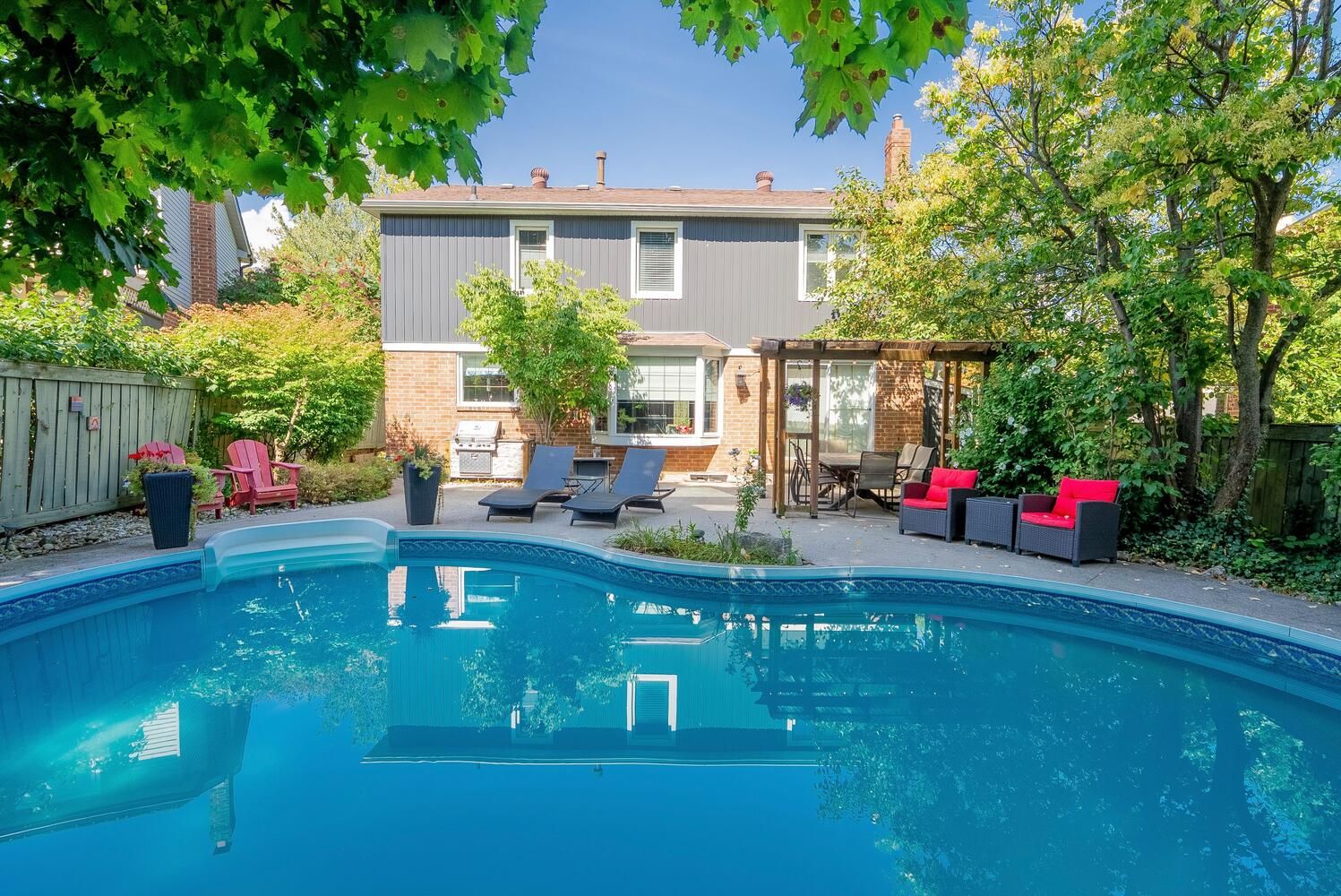 Gorgeous 5 bedroom home approximately 2000 square feet with thousands spent on upgrades and located in the sought after area of sir john's homestead. Great curb appeal with professionally landscaped gardens, hardscaping, pattern concrete driveway/walkway/steps, new siding (2021), front door with beveled glass, and nestled on a 77 by 118 foot lot with in-ground pool. Spacious living/dining room area with bay window, hardwood floors, crown moulding, upgraded baseboards and trim. Main floor family room with hardwood floors, and gas fireplace with granite surround. Updated kitchen with hardwood floors, stainless steel appliances with gas stove, granite counter tops, ceramic backsplash, under mount sink, built-in desk, built-in breakfast bench, built-in pantry with swing out spice door, coffee station, pot lighting, and side door walk-out to stone walkway. Upgraded staircase (2019), refinished hardwood floors (2019), upgraded 2 piece power room, upgraded light fixtures, and interior entrance to garage. Primary bedroom with hardwood floors, wall-unit, walk-in closet, renovated 4 piece en-suite (2017) with his/her sinks, built-in linen closet, smart toilet with remote, and walk-in glass shower. Renovated main 5 piece bathroom (2017) with his/her sinks, marble vanity counter top, jacuzzi tub and other upper level bedrooms with laminate floors. Finished basement with ceramic floors, 2nd gas fireplace, built-in entertainment unit, dry bar with granite counter top, updated 3 piece bathroom, laundry area, and 5th bedroom with walk-in closet. Fully fenced backyard oasis with lush gardens, covered pergola, and pool with lounge area. Premium location close to schools, parks, trails, tennis/pickelball, sports fields, shopping, transit, highways, restaurants, erin mills town centre, credit valley hospital, clarkson go station, south common recreation centre, and university of toronto (utm).
