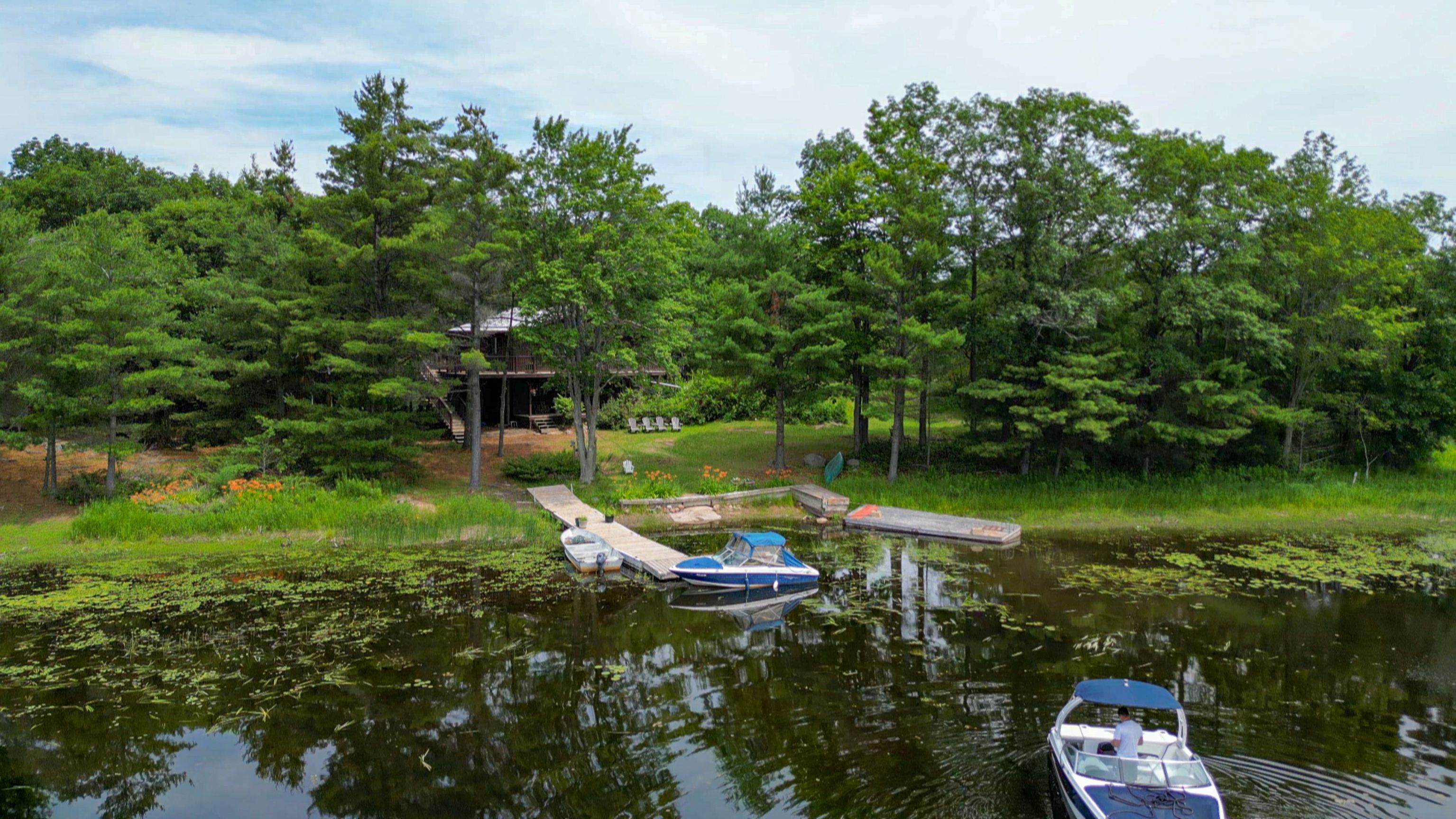 With just a 1. 5 hours drive from the gta, you can be in beautiful honey harbour. From there it's a short 5 minute boat ride from any of the nearby marinas to this property. This 1500 square foot cottage features 4 bedrooms, 2 bathrooms, a kitchen, dining room, living room with wood stove and a large wrap around deck on the top level. There is also a deck on the lower level as well as out back, a large "barn" workshop with a loft that can be used for spillover sleeping as well as winter boat storage. The inlet is a nature lover's paradise with nearly no boat traffic and lots of wildlife. If you are a watersports enthusiast, there are great locations for that in the immediate vicinity. Georgian bay offers unlimited boating so you can take a day trip over to the town of midland or, if you're looking for a longer boat ride, you could head up to henry's or parry sound.