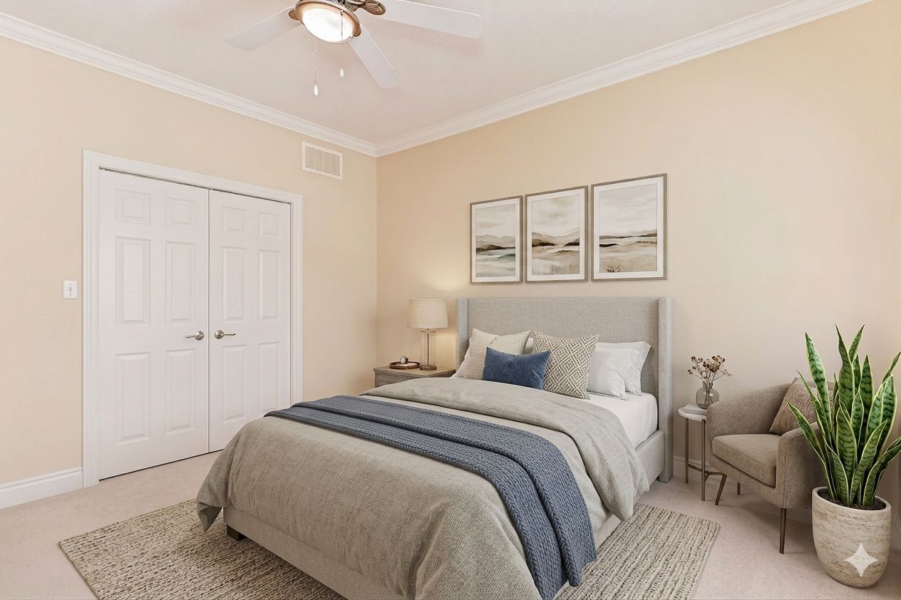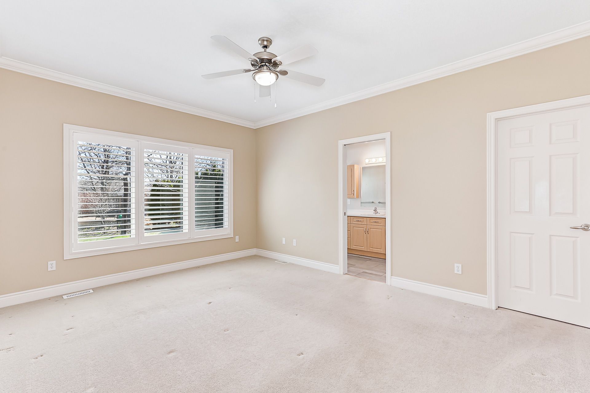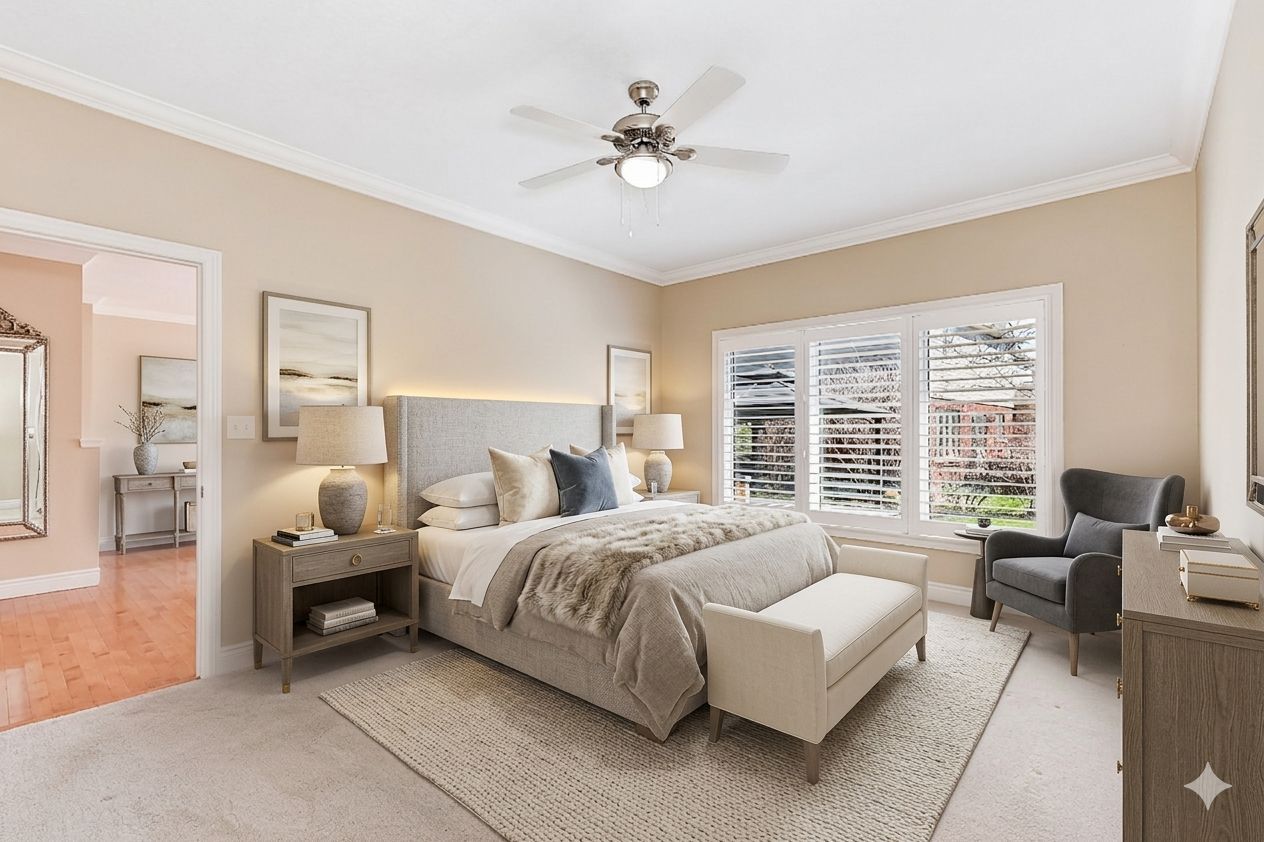 • King-sized primary bedroom with ensuite bath and walk-in closet.