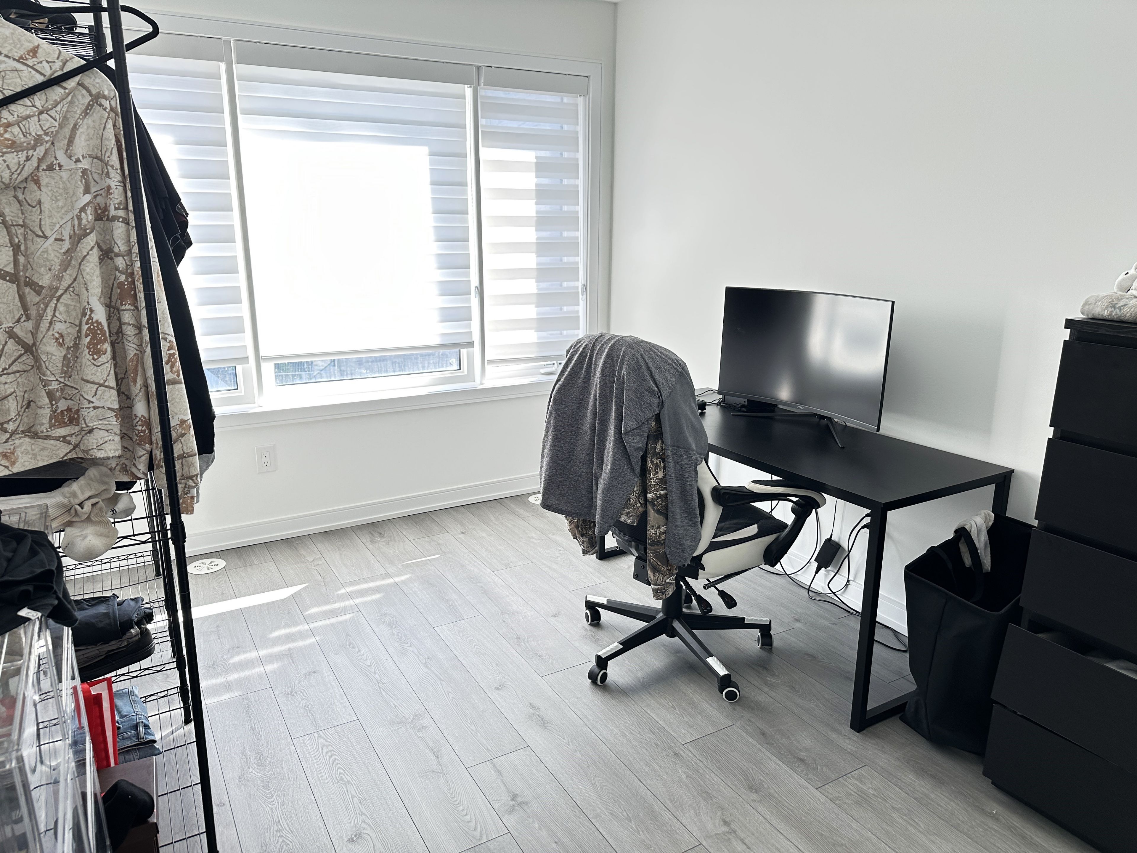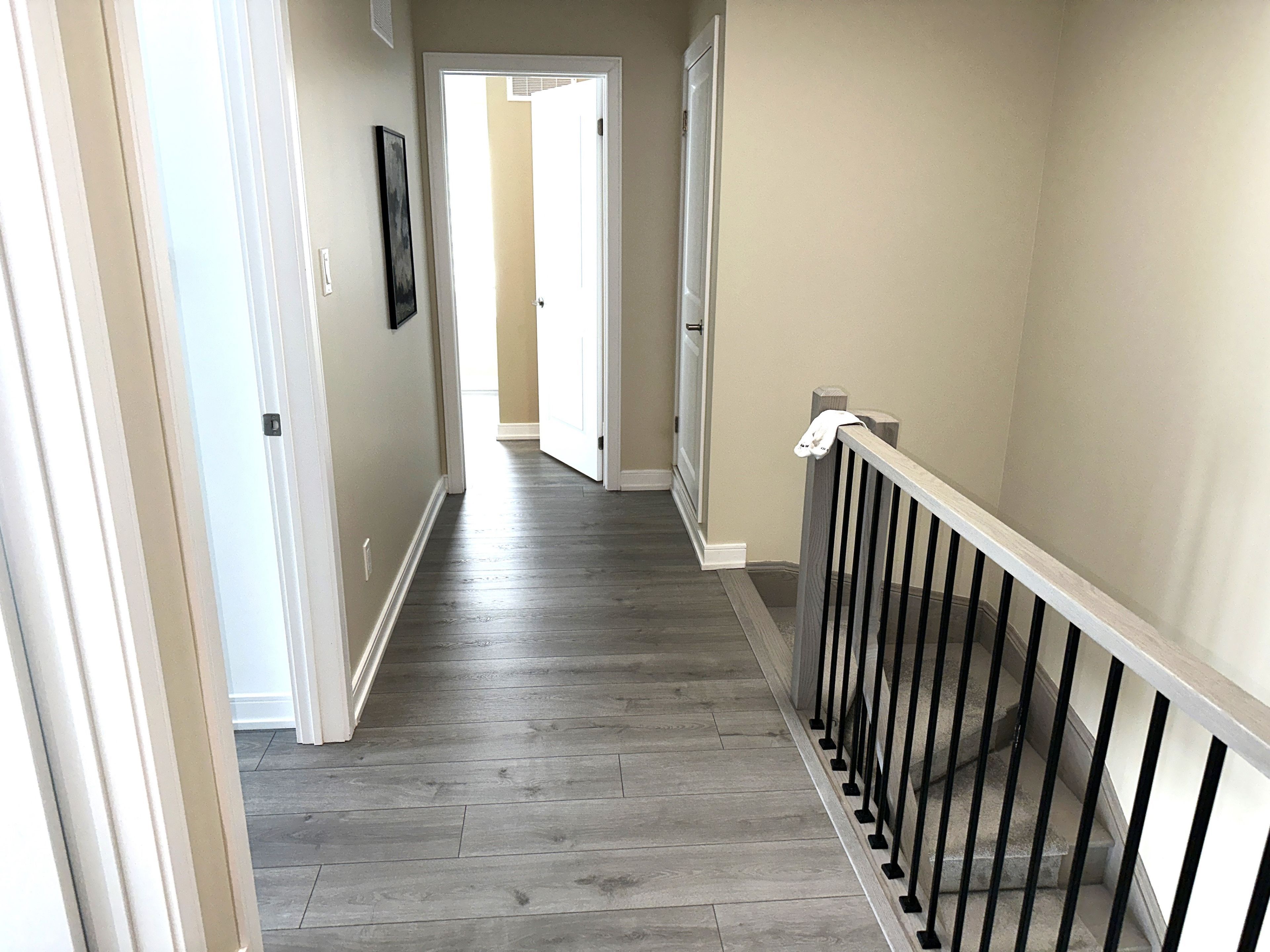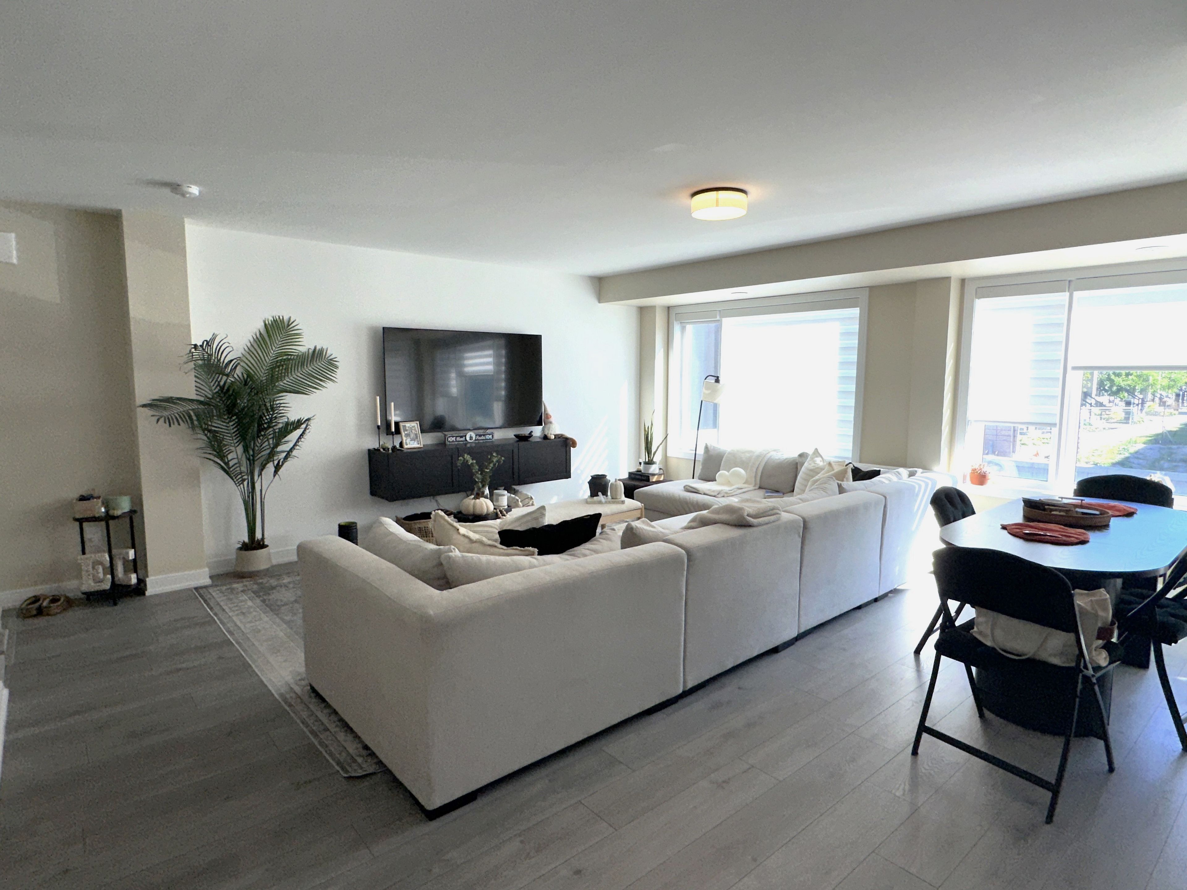 Corner townhouse with 3 bedrooms and 3 baths. Features include open-concept layout, laminate floors throughout, 9 ft ceilings, upgraded stainless steel appliances, quartz counters with backsplash, and second-floor laundry. Primary bedroom with ensuite. Private covered terrace off the great room. Personal garage included. Steps to barrie south go station, surrounded by parks, trails, and close to beaches.