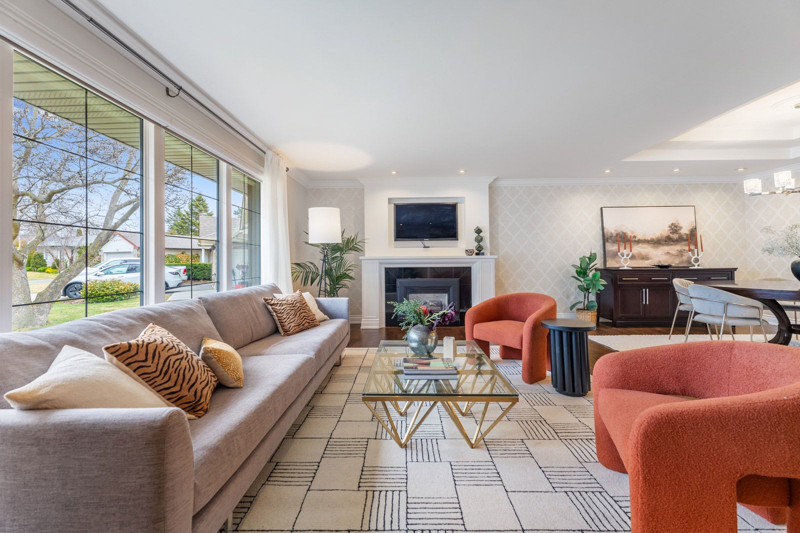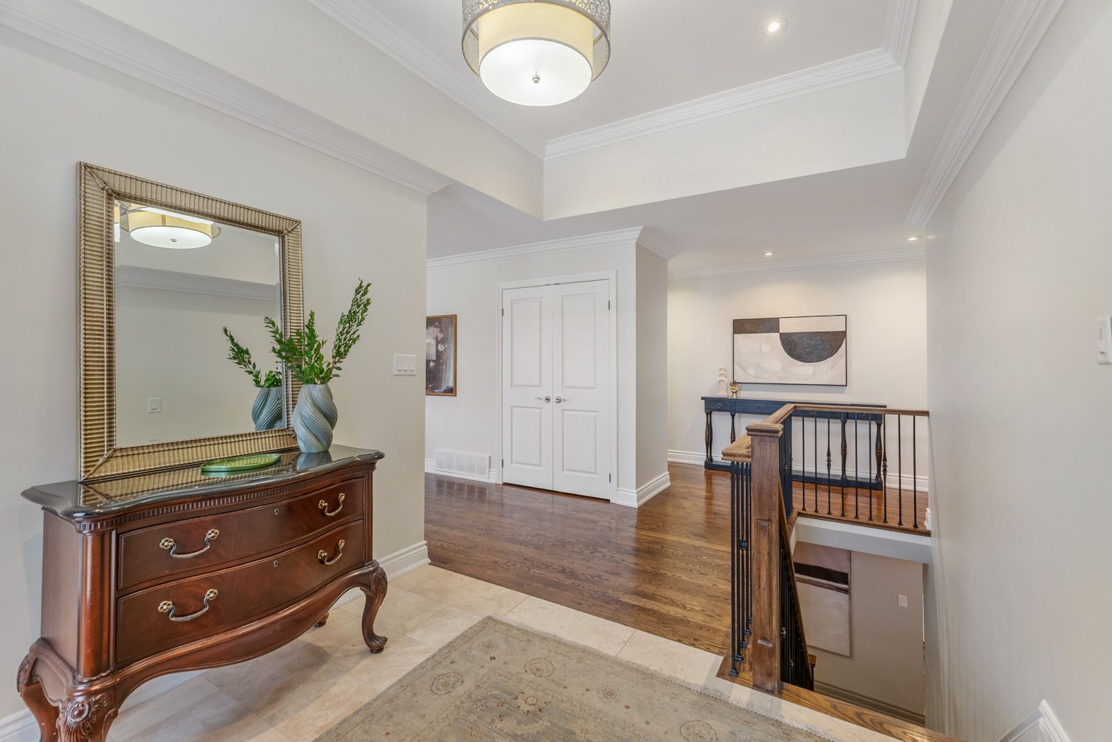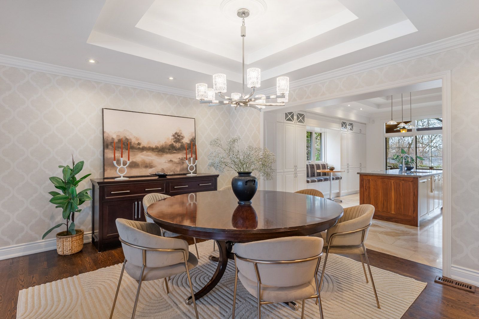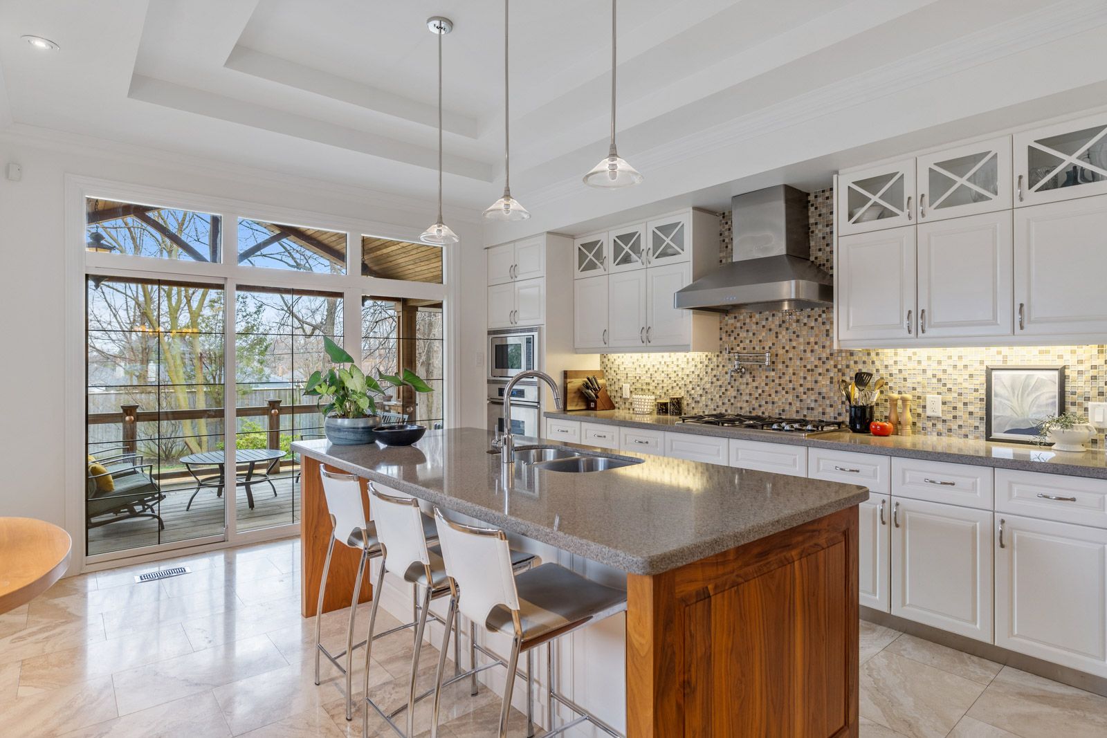 • Spacious interior with a stunning kitchen and elegant high ceilings.