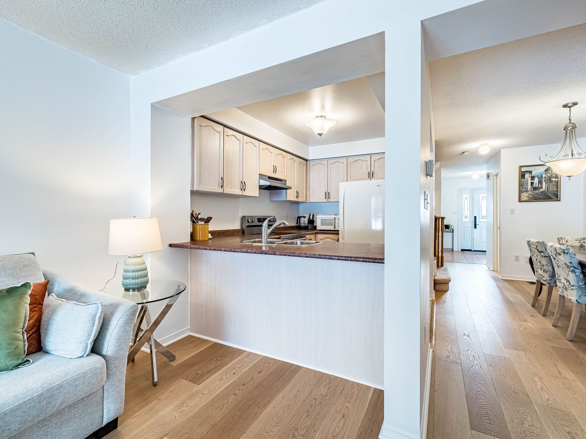 Stunning 4 bedroom, 3 bathroom freehold townhome featuring gorgeous, wide plank oak hardwood floors, a bright freshly painted interior, and spacious rooms that feel more like a large, detached home. Nestled on a quiet, highly desirable court, this home boasts exceptional walkability. Unbeatable location & many upgrades mentioned below, so read on. The open concept main level includes a generous great room flowing into a bright, functional kitchen & separate dining area-an ideal layout for entertaining. Whether relaxing or entertaining in the great room or in the lovely backyard, this home offers comfort and convenience in one complete package. The upper level offers 4 generous-sized bedrooms, perfect for families, guests, or those needing an additional room for a home office. The primary bedroom features walk in closet and a great ensuite bathroom and is slightly tucked away, creating privacy for the king and queen of the home. Garage access into the home and garage access straight to the backyard for summertime convenience. That's an excellent feature. The basement is an excellent opportunity just waiting for your personalization. Upgrades: roof 2019, ac 2025, windows 2021, custom front door 2021, garage door 2022, hardwood floors 2022. Nestled on a quiet, this home boasts exceptional walkability with easy access to shops, restaurants, endless trails & ravine, dog park, schools, go transit, züm transit, lrt, & major highways including the 407, 410, and 401. Located in fletcher's creek south, you're minutes from shoppers world, sheridan college, parks, & top-tier amenities.