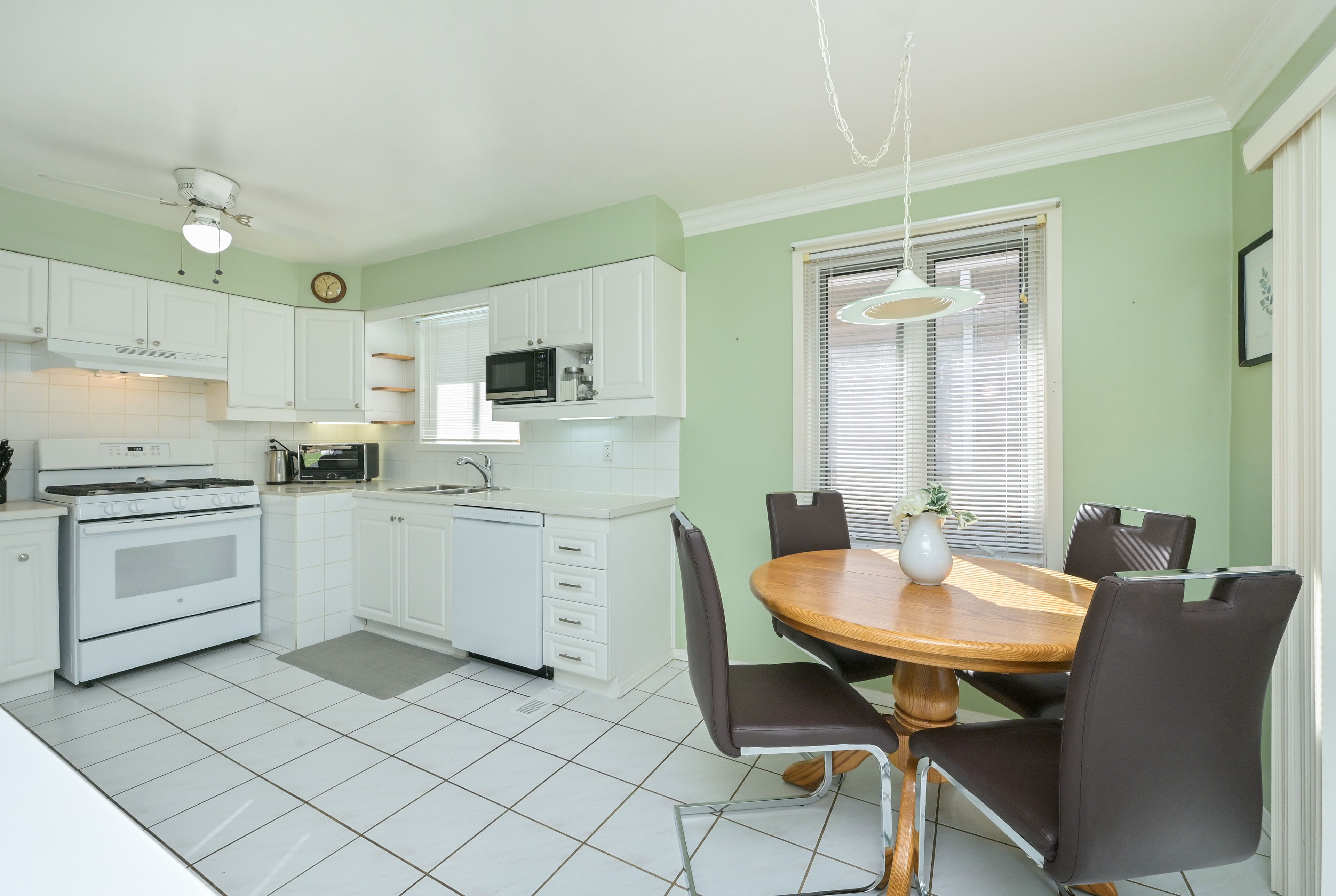• Large eat-in kitchen with a walk-out to a private patio and yard.