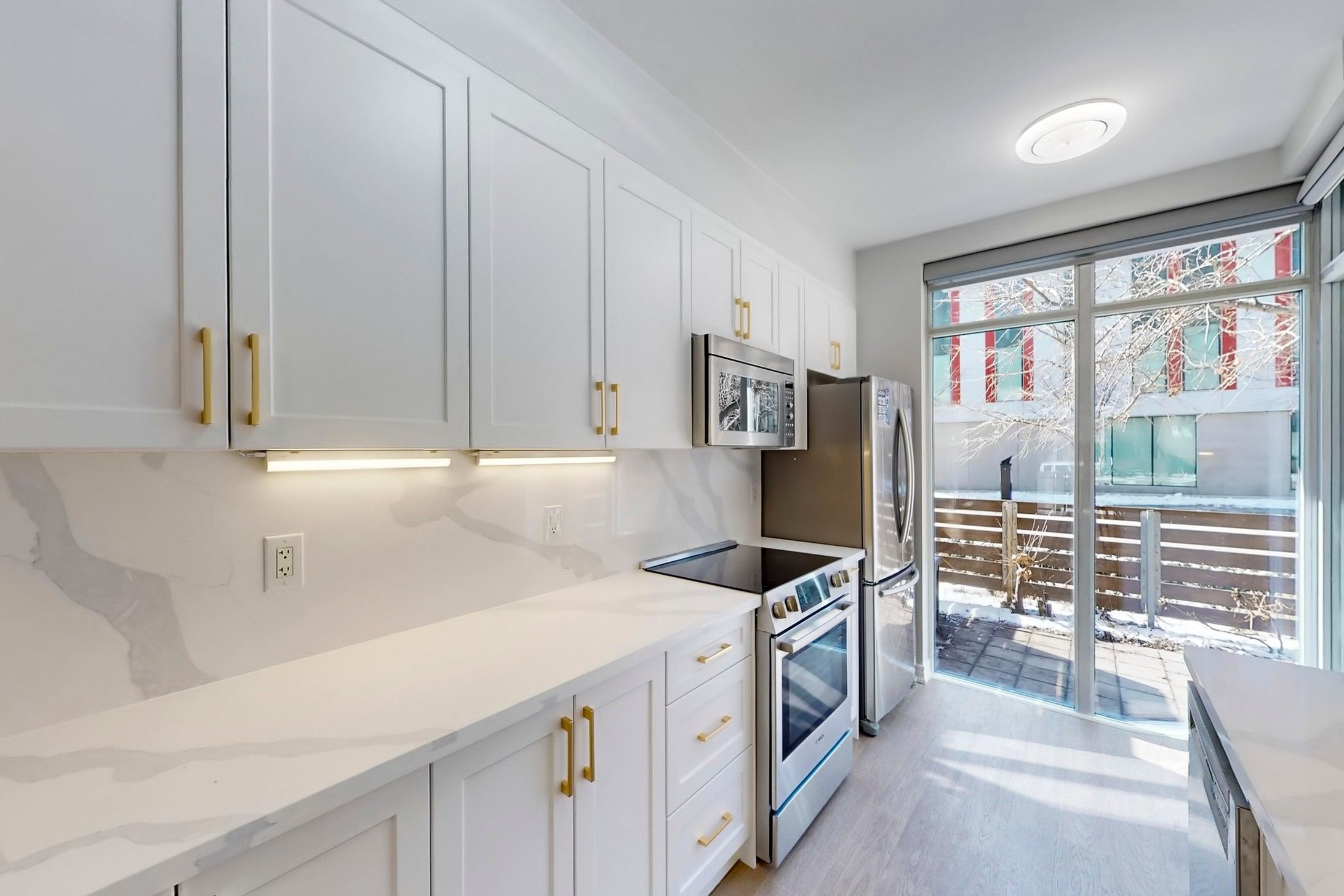 • Modern kitchen with premium countertops and upgraded flooring throughout.