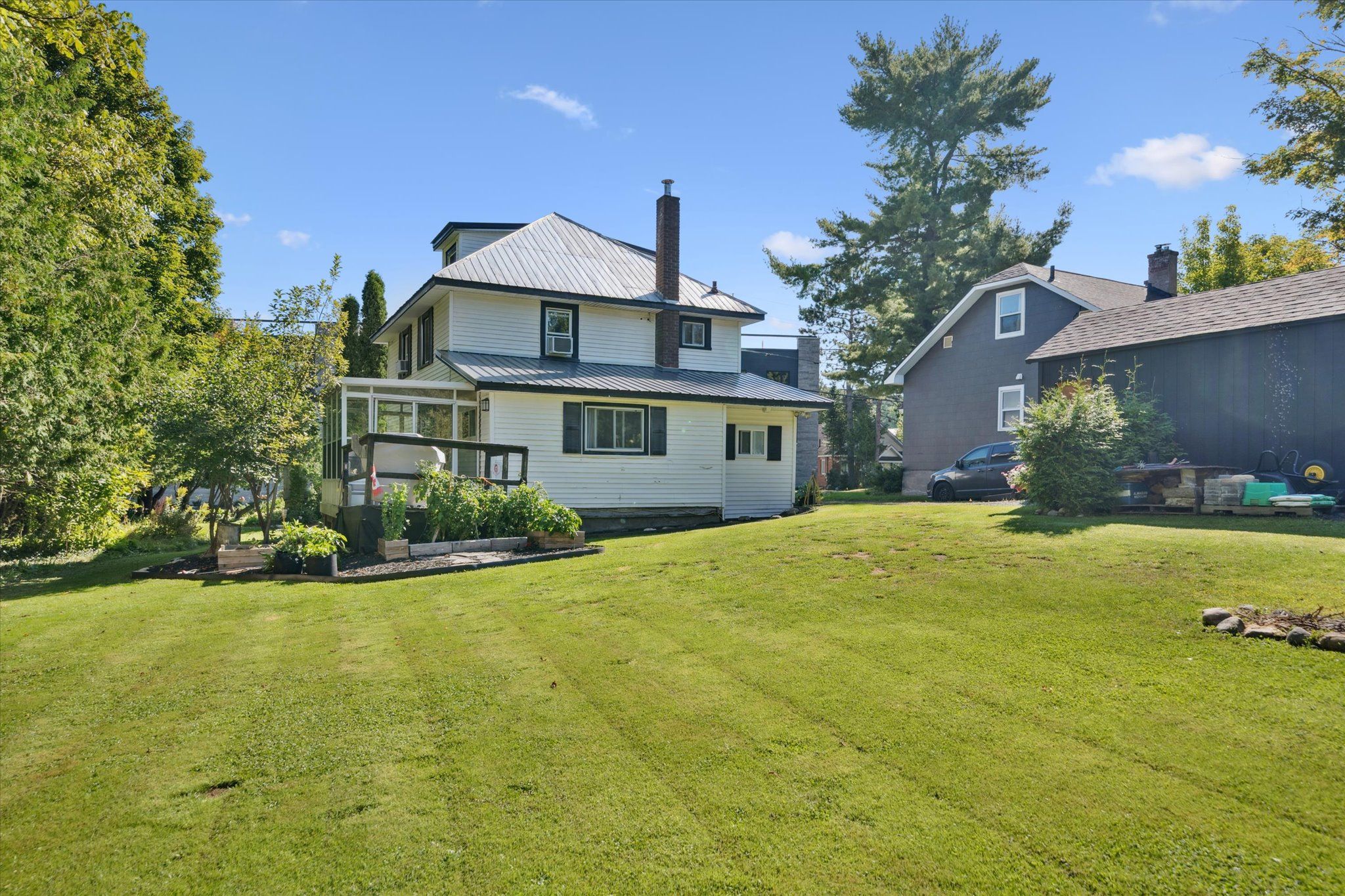 Fantastic opportunity in the heart of downtown huntsville, this charming duplex has been lovingly maintained and features two spacious apartments. For those seeking an income property, both units are currently rented to long-term, reliable tenants who wish to stay, providing immediate rental income, while the property also offers flexibility for a purchaser to move in and enjoy one unit while continuing to generate rent from the other. The main-floor one-bedroom unit boasts a bright sunroom overlooking the deep, private backyard and beautiful gardens, while the upper two-bedroom apartment includes a unique loft-style second bedroom on the third floor. Recent updates include a new metal roof on part of the home, two new water heaters, and replacement of most windows in both units, all complemented by an efficient forced-air natural gas furnace and separate hydro meters. Located just steps from main street shops, dining, the summit centre, and huntsville high school, this property combines location, charm, and versatility. An excellent option whether youre looking for a well-cared-for income property, a place to call home, or a blend of both in one of muskokas fastest-growing towns.