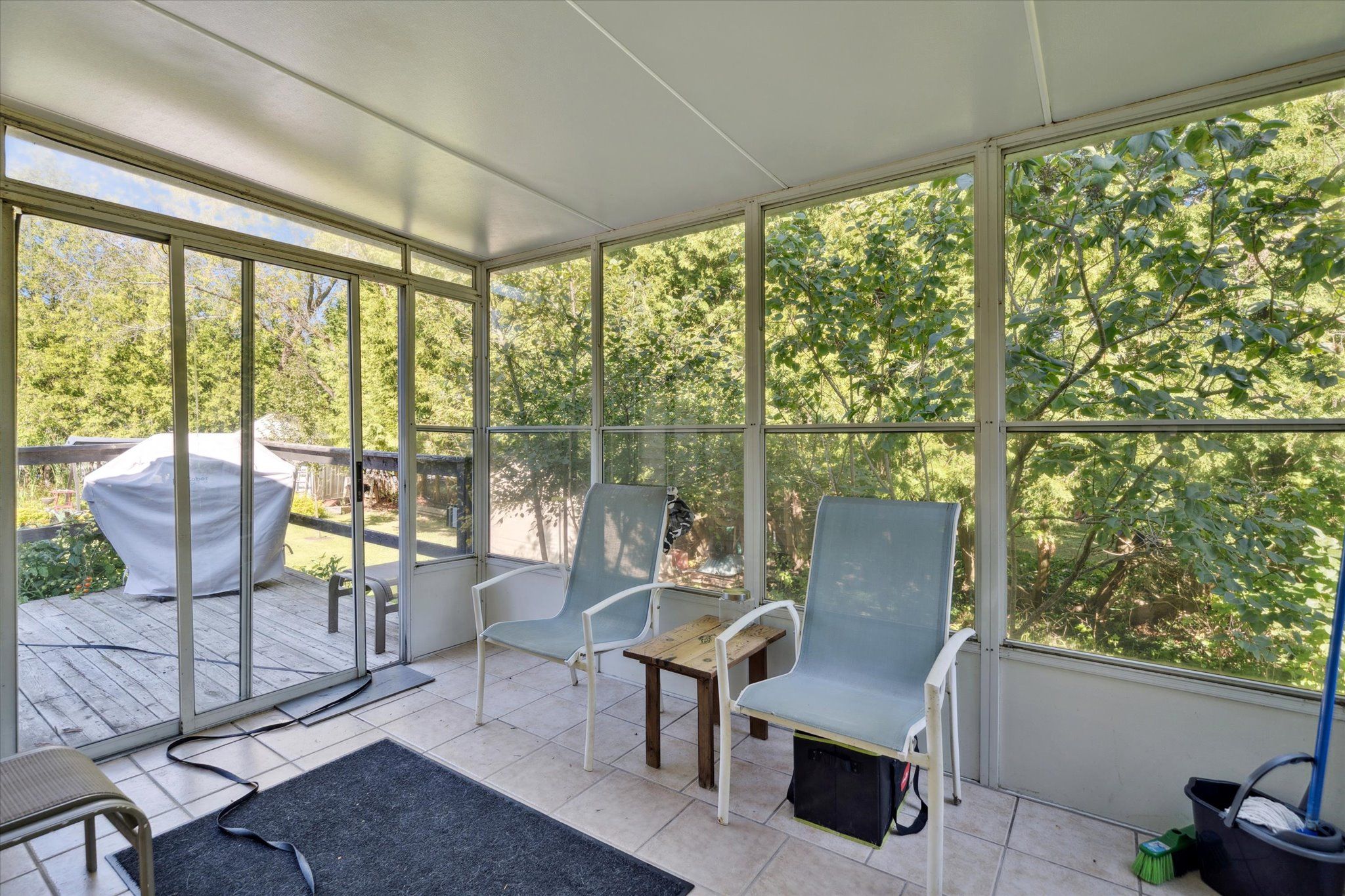 • Main-floor one-bedroom unit features a sunroom and private backyard.