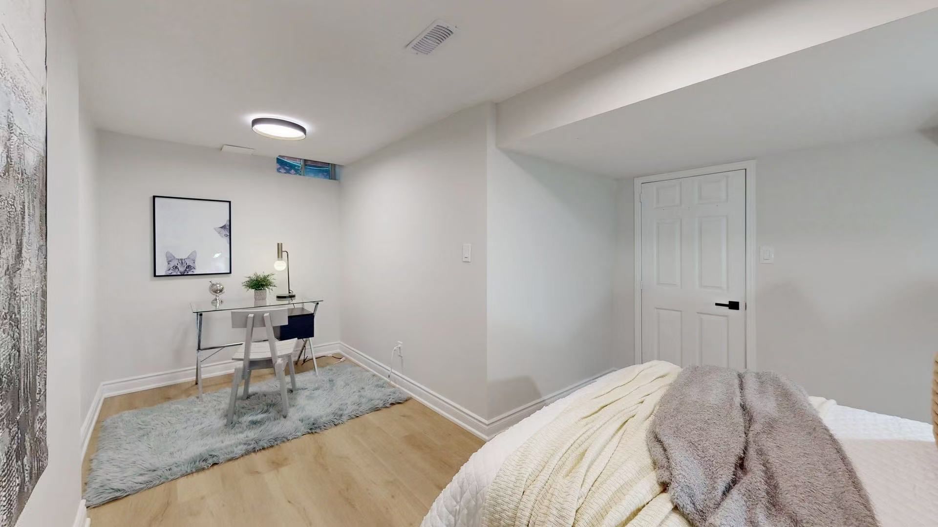 • Four bedrooms on the upper floor, plus a basement apartment.