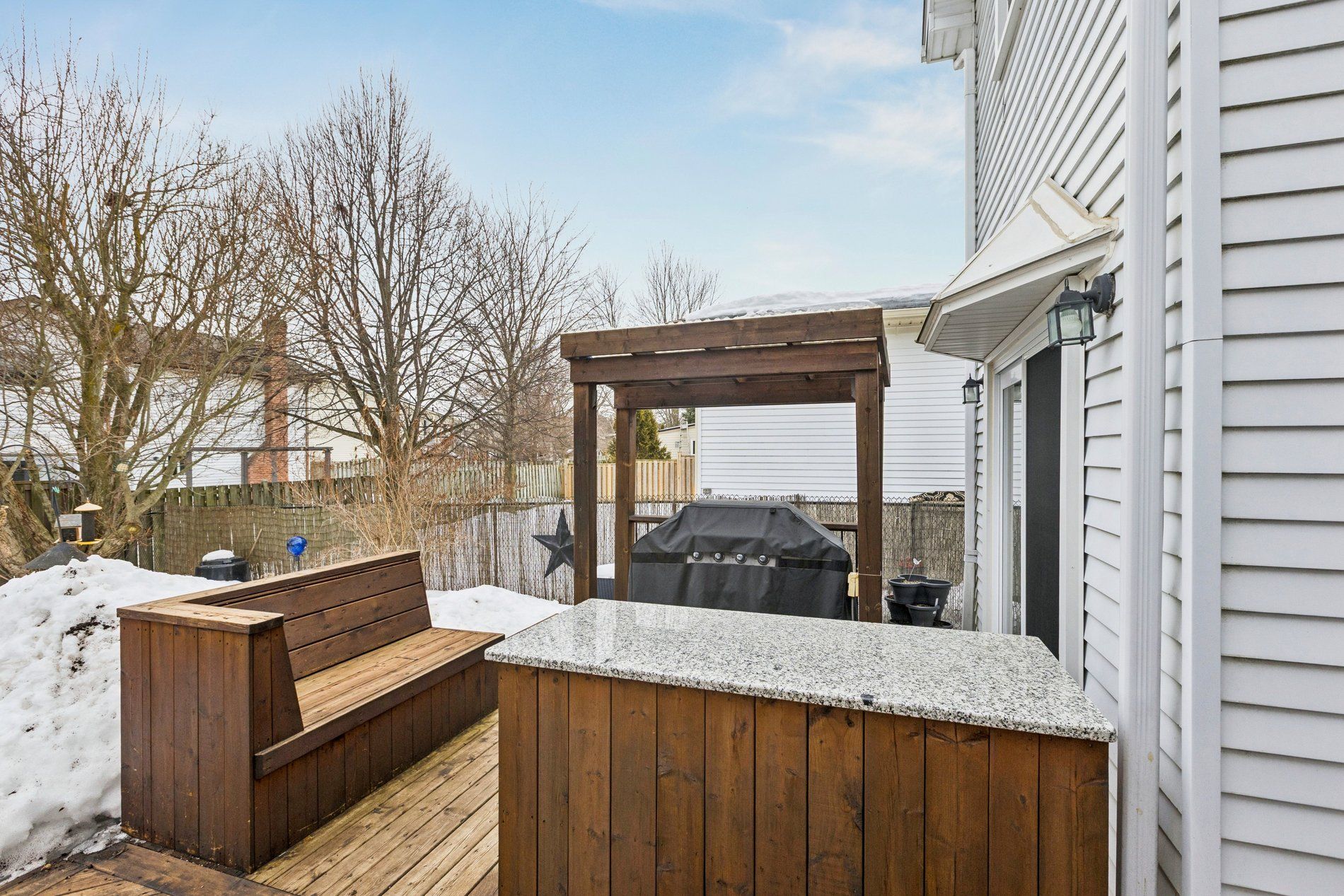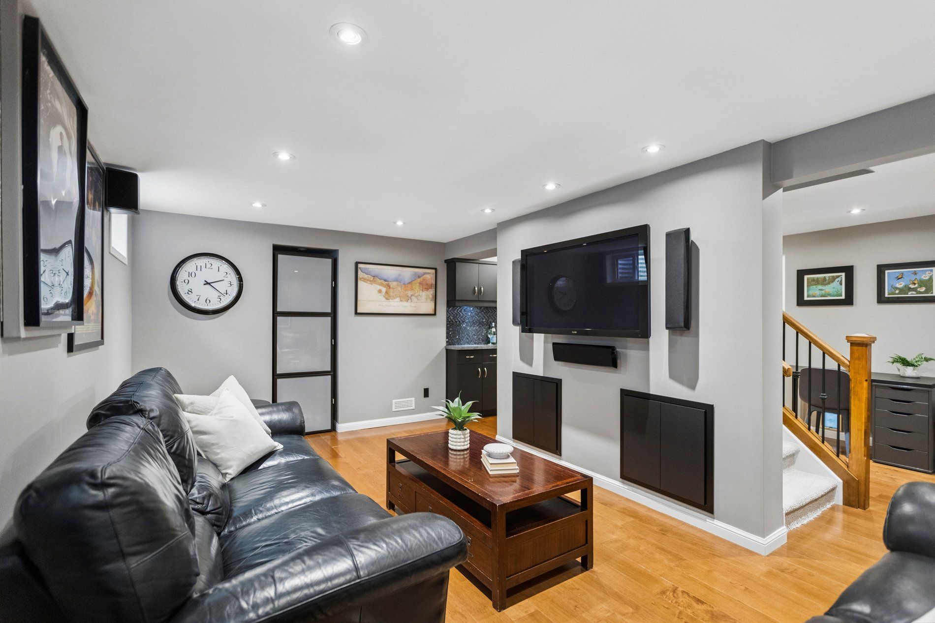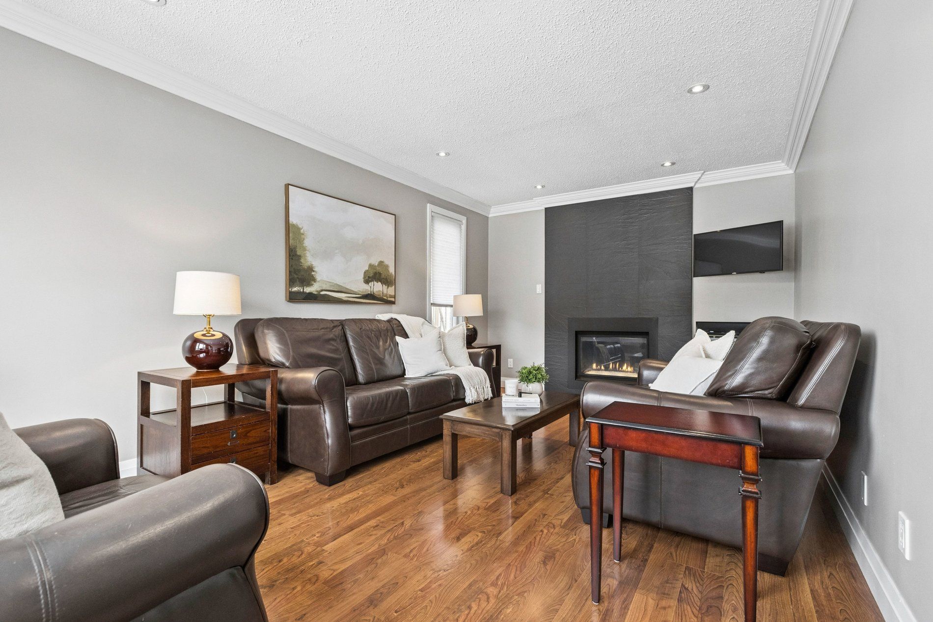 Stylish, thoughtfully updated, and completely move-in ready - this home is a standout from top to bottom. Every space has been refreshed with a cohesive, timeless design that feels both modern and warm, including updated trim and interior doors that give the home a polished finish throughout. The beautifully remodelled kitchen is as sophisticated as it is functional, featuring bamboo cabinetry, quartz countertops, stainless steel appliances, and exceptional storage - including clever kick-plate drawers that maximize every inch. A breakfast bar provides the perfect place for casual meals or entertaining, while the open-concept layout flows seamlessly into the dining area. The dining space features impressive built-in cabinetry for additional storage and display, and a walkout to the backyard deck - creating an ideal connection between indoor and outdoor living. The main floor living room is warm and inviting, anchored by a gas fireplace and complemented by rich flooring and elegant finishes that carry throughout the home. Upstairs, you'll find a spacious primary bedroom along with two additional well-appointed bedrooms. The second-level bathroom has been beautifully updated and features a stylish double vanity, modern fixtures, and finishes that match the home's refined aesthetic. The fully finished basement continues the home's thoughtful design with pocket doors that maintain openness while maximizing space. Enjoy a cozy rec room/tv area, a stylish wet bar, and a full bathroom with heated floors - adding a touch of everyday luxury. The laundry area is equipped with an energy-efficient heat pump dryer. Step outside to your private backyard retreat - expansive decking, a pergola, built-in outdoor prep station, saltwater hot tub, and beautiful perennial gardens combine to create a true outdoor oasis. Nothing to do but move in and enjoy .----> be sure to click on the multi media link to view interactive 3d tour, more photos and walk through video.