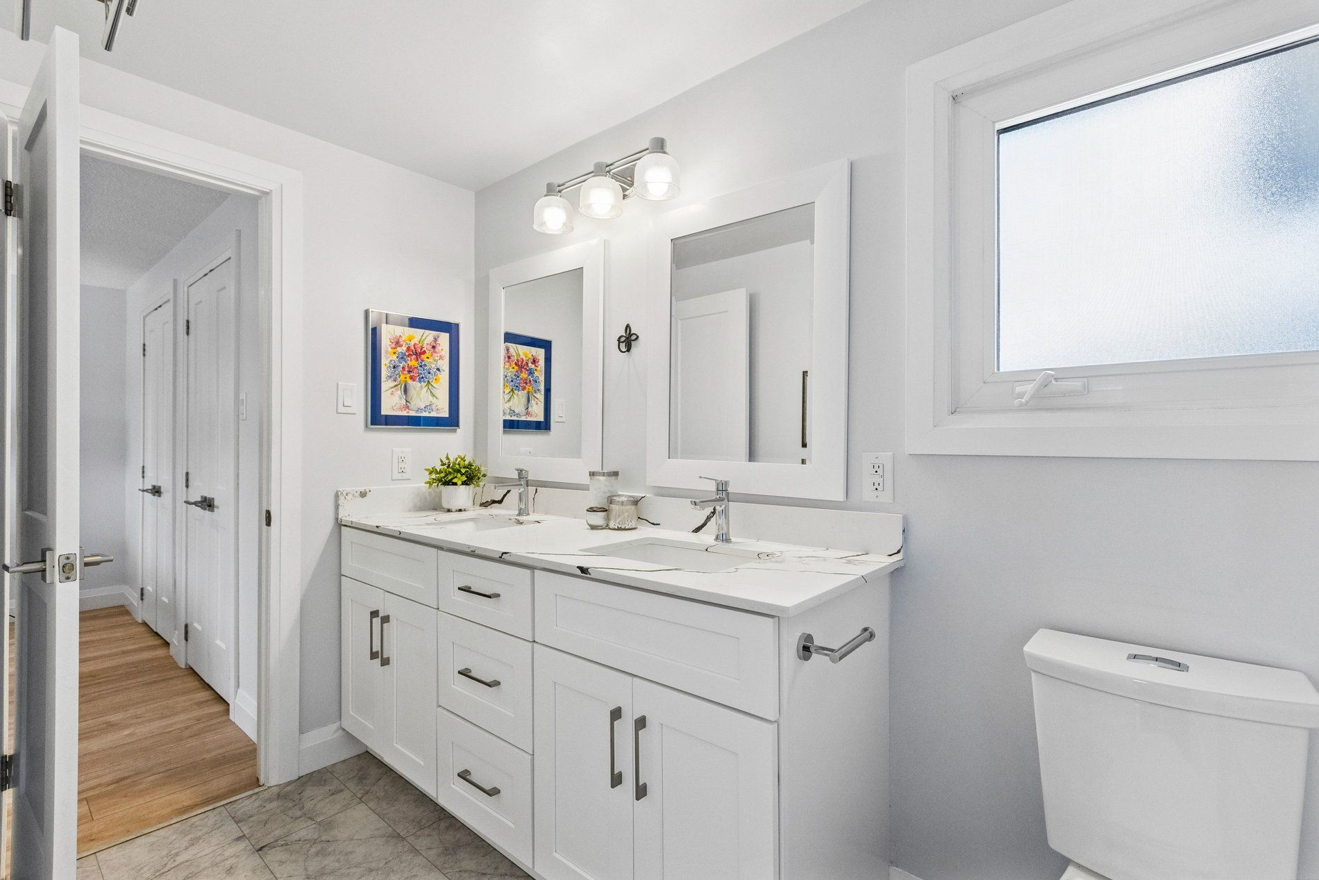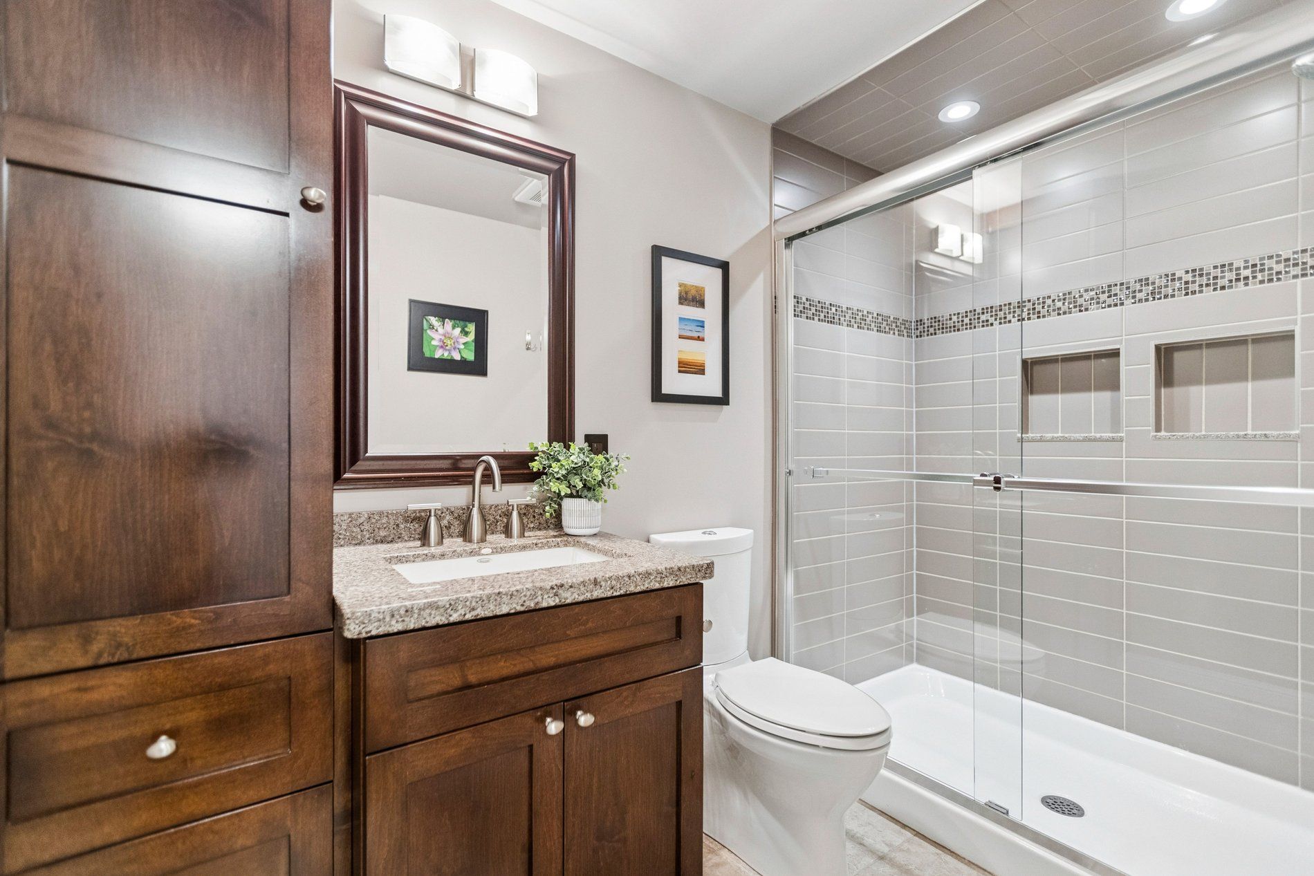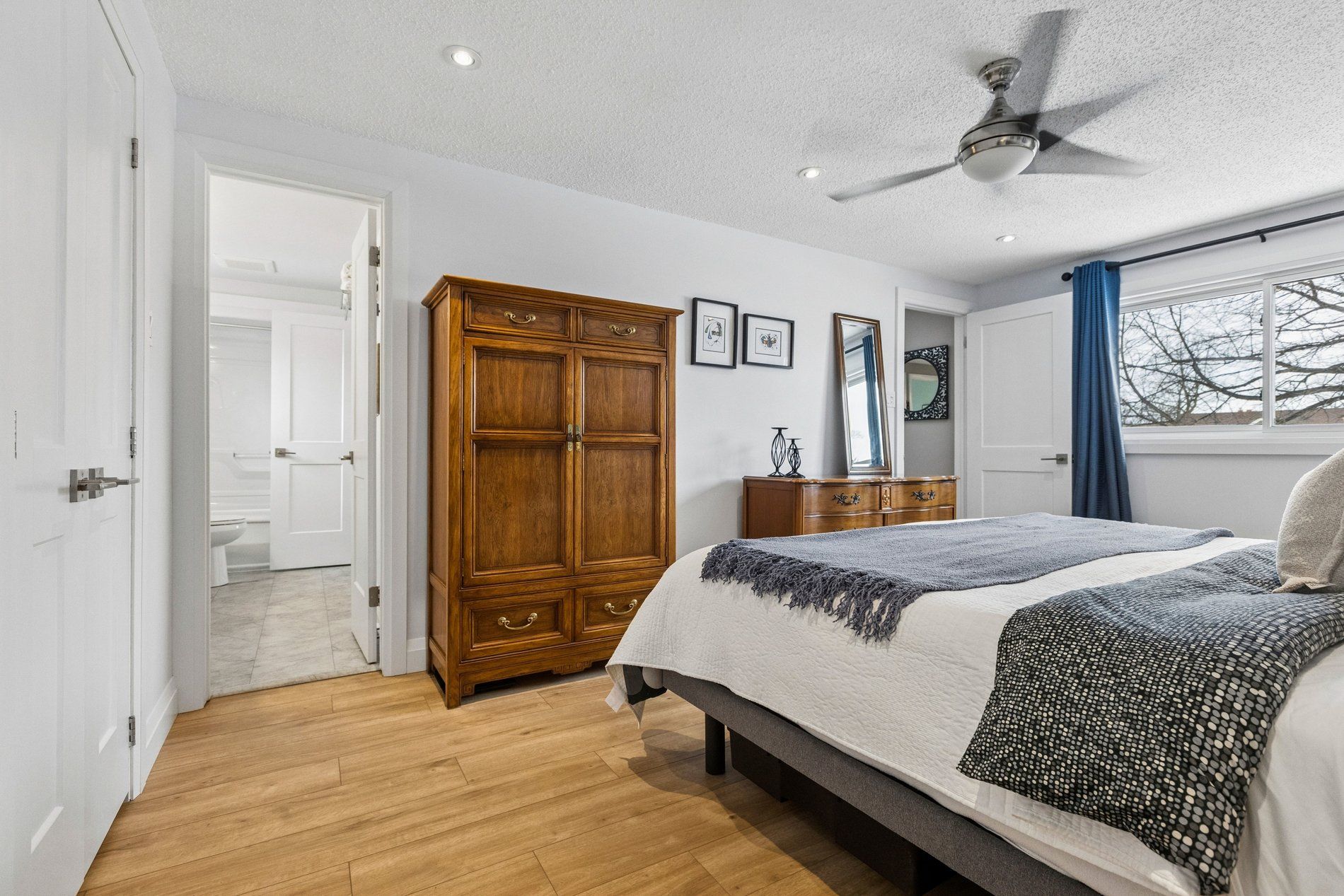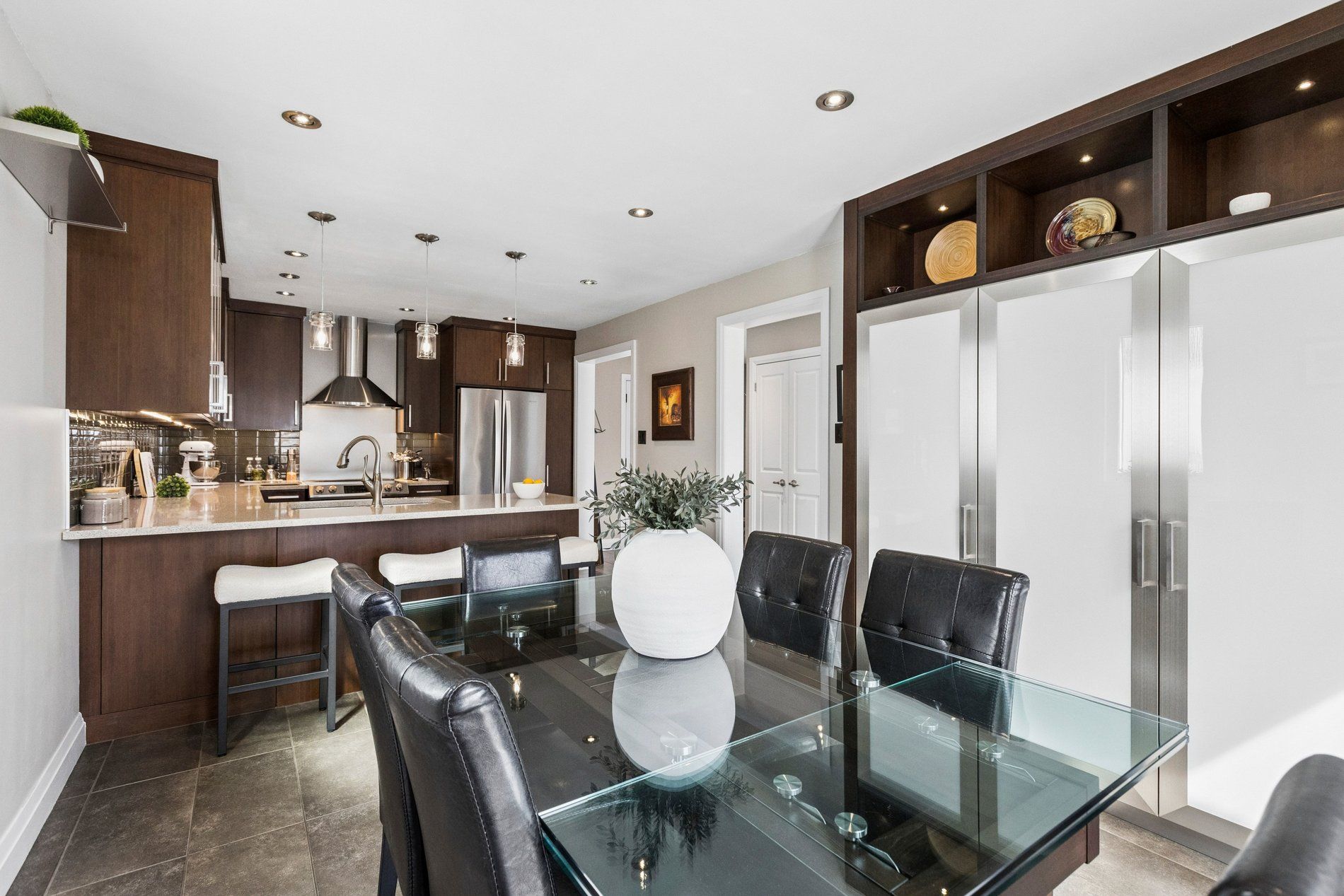 Stylish, thoughtfully updated, and completely move-in ready - this home is a standout from top to bottom. Every space has been refreshed with a cohesive, timeless design that feels both modern and warm, including updated trim and interior doors that give the home a polished finish throughout. The beautifully remodelled kitchen is as sophisticated as it is functional, featuring bamboo cabinetry, quartz countertops, stainless steel appliances, and exceptional storage - including clever kick-plate drawers that maximize every inch. A breakfast bar provides the perfect place for casual meals or entertaining, while the open-concept layout flows seamlessly into the dining area. The dining space features impressive built-in cabinetry for additional storage and display, and a walkout to the backyard deck - creating an ideal connection between indoor and outdoor living. The main floor living room is warm and inviting, anchored by a gas fireplace and complemented by rich flooring and elegant finishes that carry throughout the home. Upstairs, you'll find a spacious primary bedroom along with two additional well-appointed bedrooms. The second-level bathroom has been beautifully updated and features a stylish double vanity, modern fixtures, and finishes that match the home's refined aesthetic. The fully finished basement continues the home's thoughtful design with pocket doors that maintain openness while maximizing space. Enjoy a cozy rec room/tv area, a stylish wet bar, and a full bathroom with heated floors - adding a touch of everyday luxury. The laundry area is equipped with an energy-efficient heat pump dryer. Step outside to your private backyard retreat - expansive decking, a pergola, built-in outdoor prep station, saltwater hot tub, and beautiful perennial gardens combine to create a true outdoor oasis. Nothing to do but move in and enjoy .----> be sure to click on the multi media link to view interactive 3d tour, more photos and walk through video.