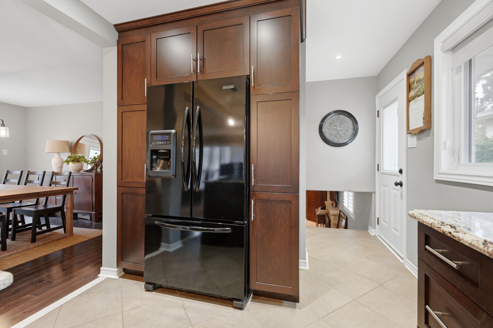 Much bigger than it looks - over 3,000 sq. Ft. Of finished living space! Set on a large, private lot in a quiet, family-friendly neighbourhood, this beautifully maintained 4-bedroom backsplit offers lots of space and a layout that works well for family living. And what a location - steps to the hungry hollow trail system, with river views, boardwalks, winding trails, and wildlife almost at your doorstep. The sun-filled main level features a superb open-concept layout with quality hardwood and ceramic flooring. A large bay window fills the living room with natural light and flows into the dining area, creating a connected space designed for everyday living. The well-appointed kitchen features sleek dark wood, ceiling-height cabinetry, granite counters and a large island with seating - all open to the living and dining areas, making it the natural gathering spot for family and friends. A garden door walkout from the dining room to the large patio makes outdoor entertaining easy. A private, fully fenced yard provides plenty of space for kids and four-legged friends. Upstairs, you'll find four spacious bedrooms. The primary suite includes a large walk-in closet with organizer and a spa-inspired ensuite, while the updated main bath serves the remaining bedrooms. The lower level adds valuable living space with a party-sized rec room featuring a gas fireplace, along with a huge separate games room that offers plenty of flexibility. Both spaces include above-grade windows, bringing in natural light. A large laundry room, additional storage with built-in cabinetry and utility space keeps everything organized. A double garage and double driveway provide plenty of parking. Close to schools, parks, shops, and major routes for commuting. A home that checks all the boxes - space, layout, and a location you'll appreciate every day.