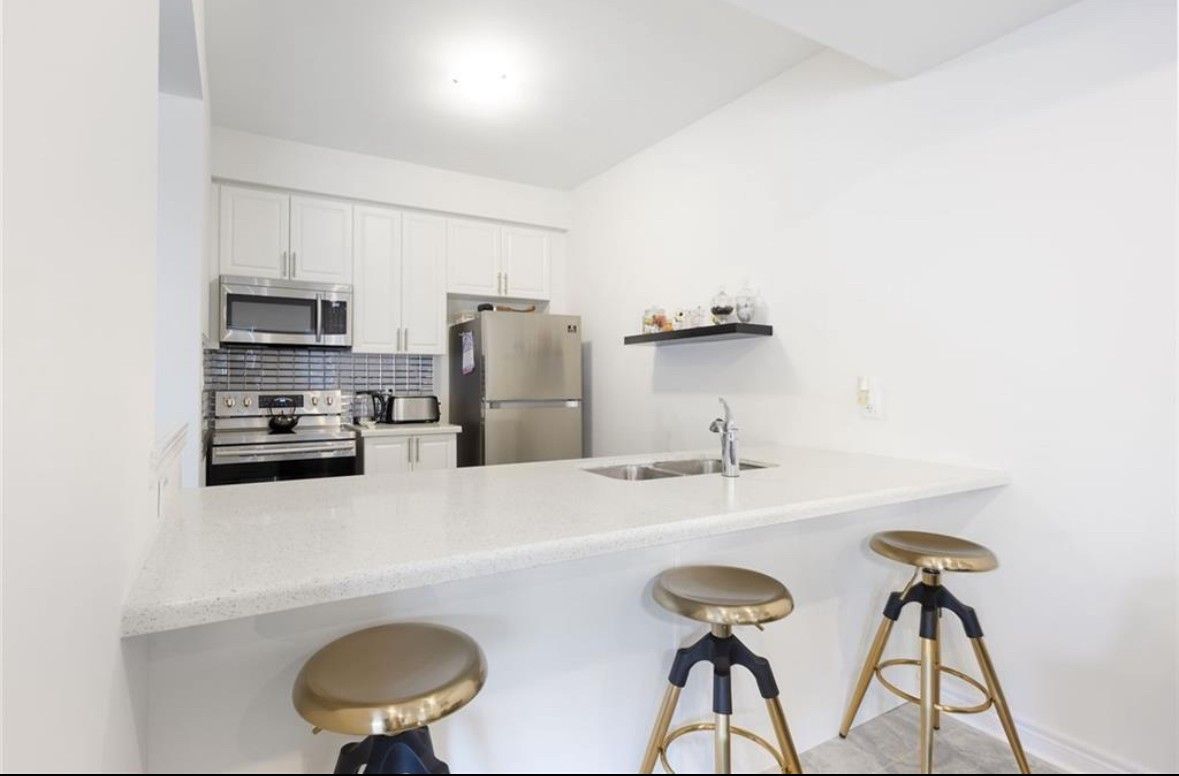 Beautiful townhouse in prestige ancaster meadowlands! No grass cutting! Condo corporation will cut the grass) no sidewalk! 2 story 2 bdr 2 bath with 9 ft ceilings! Open concept. Hardwood flooring on main level modern white kit. W/quartz countertop. Ss appliances and more. Just steps to tiffany hills elementary school & park, close to meadowlands power centre, mins to hwy 403, 10 mins away from lime ridge mall, less than 15 mins to mcmaster university. Vacant possession on june 5th, 2026