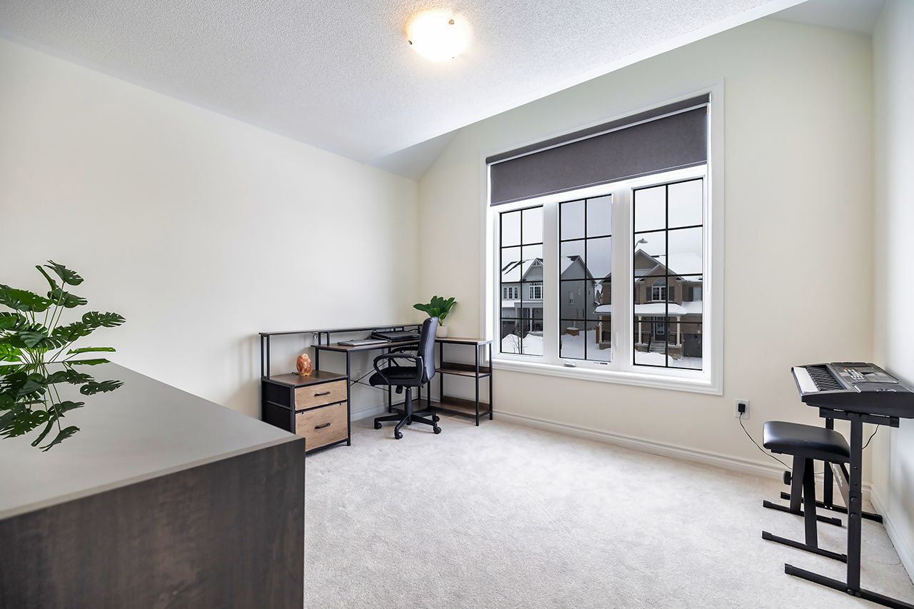 Welcome to this beautifully maintained 4-year old home, the perfect starter for any family. With a functional layout and filled with natural light throughout, this 3 bedroom, 3 bathroom home offers comfort, style and everyday practicality. The inviting great room features a cozy gas fireplace and flows seamlessly into the dinning room and upgraded kitchen, complete with quartz countertops, upgraded appliances, and walk-in pantry for exceptional storage. Quartz surfaces continue throughout all bathrooms creating a refined and cohesive finish. A main floor laundry room connects to the mudroom with direct garage access, while a walk-in closset off the foyer adds even more convenient storage upon entry. The extremely spacious primary bedroom boasts a bright walk-in closet and a 5 pc spa-like ensuite designed for relaxation. The second level is complemented by two well-sized additional bedrooms and a versatile media room, currently used as a home office that can easily be conververted into a fourth bedroom. The unspoiled basement with bathroom rough-in is ready for your vision, whether a rec space, gym, or additional living area. Outside, an irrigation system services both front and back yards on a premium property backing onto joan park. Additional upgrades include custom zebra blinds, owned on-demand water heater, water softener and wired-in security cameras. Meticulously cared for and truly move-in ready, this bright and thoughtfully upgraded home offers the perfect blend of modern finishes, smart design, and long-term value. Open house: sat & sun (feb 14 & 15) at 1-3pm.