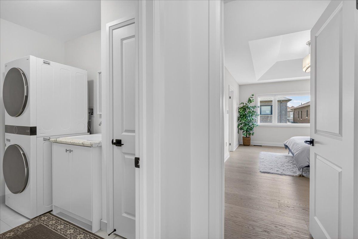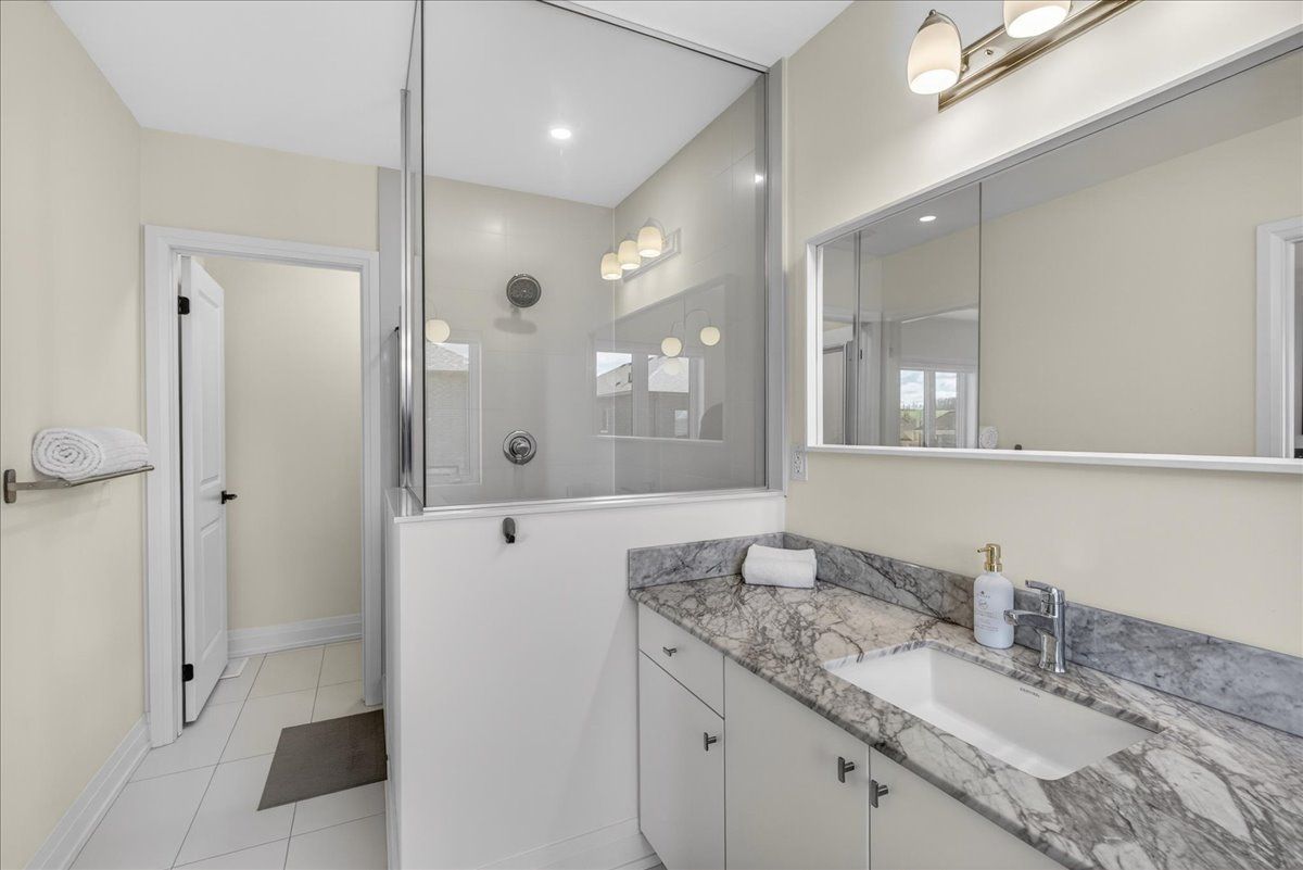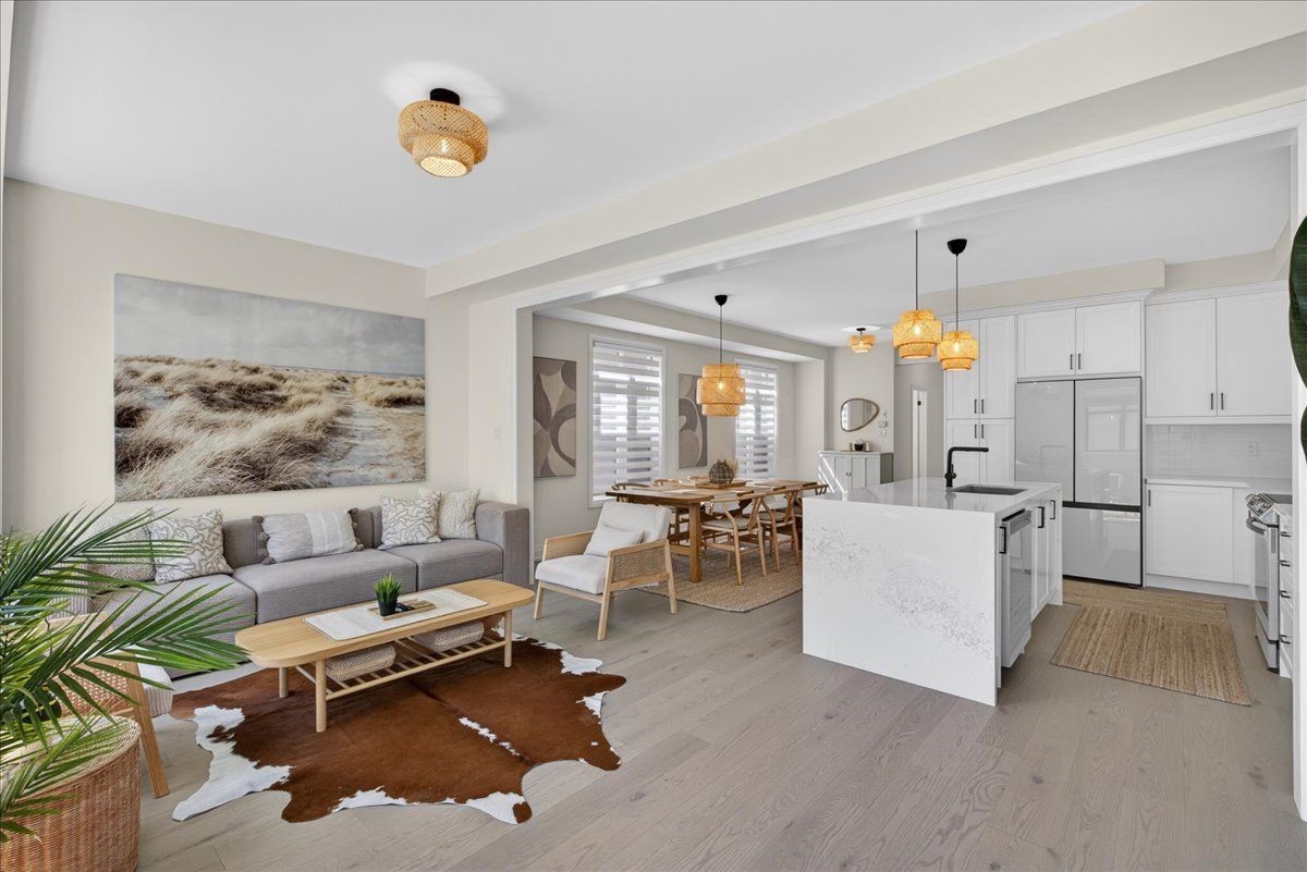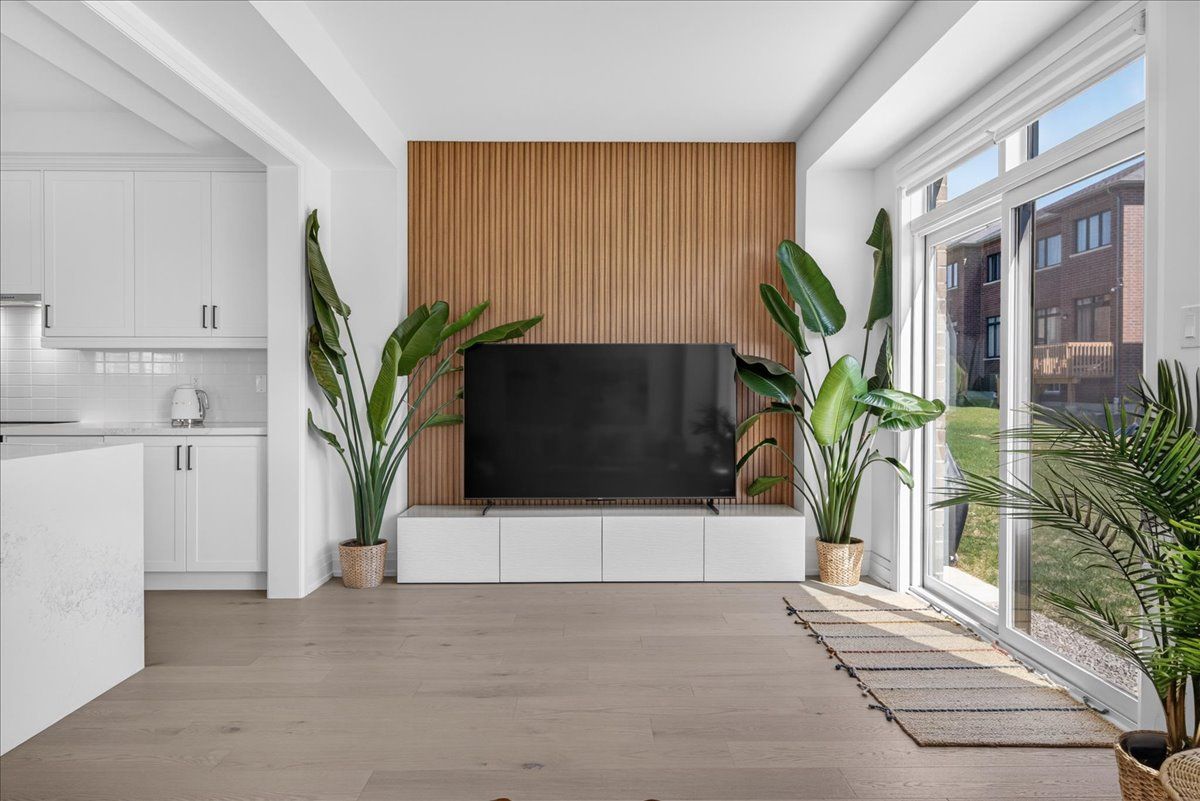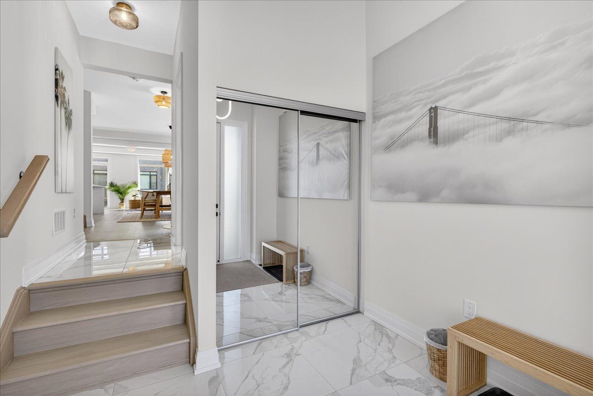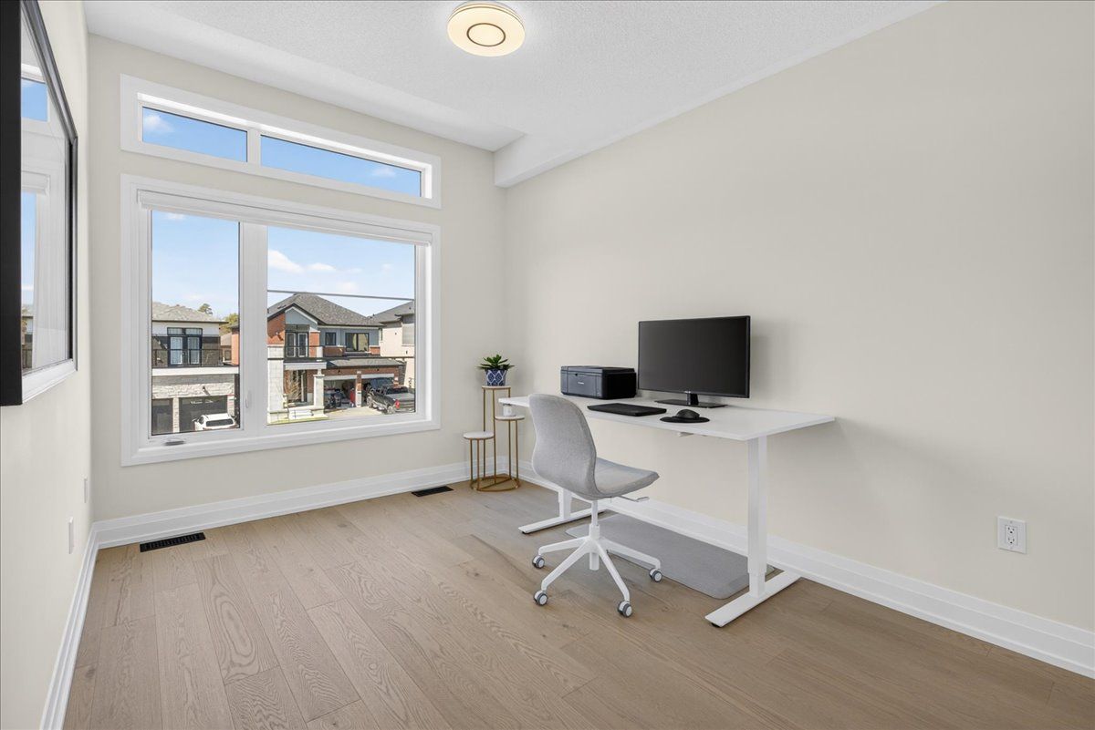 Step into unrivaled elegance: a turnkey geranium masterpiece with $100,000 in premium upgrades . Completed in 2023, this exceptional semi-detached home delivers 2,488 sq. Ft. Of meticulously finished living space, masterfully balancing upscale luxury with the peaceful charm of the elite midhurst valley community. The main level greets you with 6. 5" red oak vintage hardwood floors and a striking teak feature wall in the family room. A chef's dream, the kitchen is outfitted with a samsung bespoke appliance set, glacier white shaker cabinetry, and caesarstone empira white quartz countertops featuring a magnificent 1. 5" waterfall island. Every detail, from the matte black hardware to the porcelain foyer tiles, reflects modern architectural integrity. The elegance continues upstairs, where the primary suite serves as a true sanctuary with a raised tray ceiling and a spa-like ensuite featuring granite vanities and matte white porcelain tile. This level also offers the convenience of a stacked smart laundry center and custom zebra pull-down blinds throughout. The professionally finished basement (~600 sq. Ft.) is an entertainer's paradise, boasting an 80" bar with a built-in beverage fridge, custom barn doors, and a high-end acoustic insulation system for ultimate privacy. With its natural stone exterior and designer-curated interior, this home is a rare opportunity to own a masterfully upgraded asset in an elite four-season enclave.