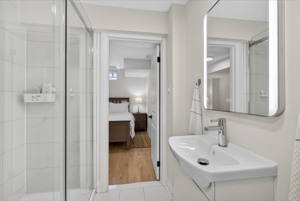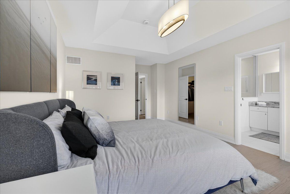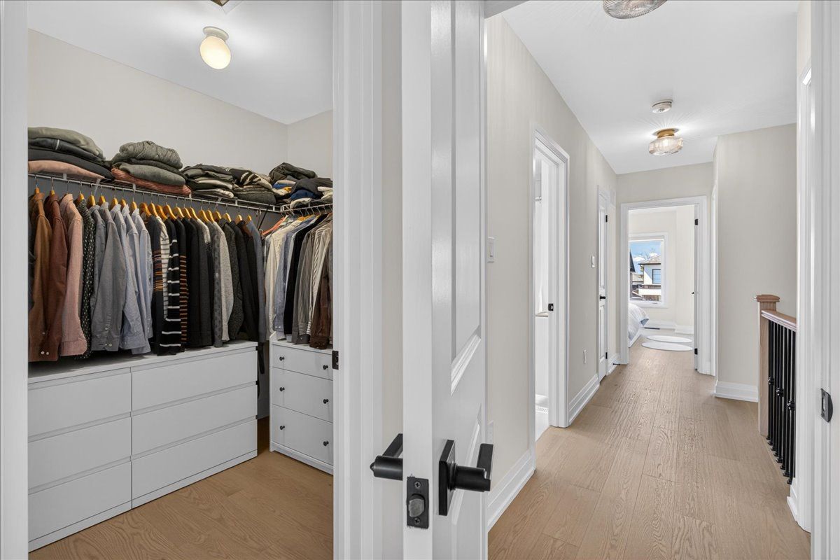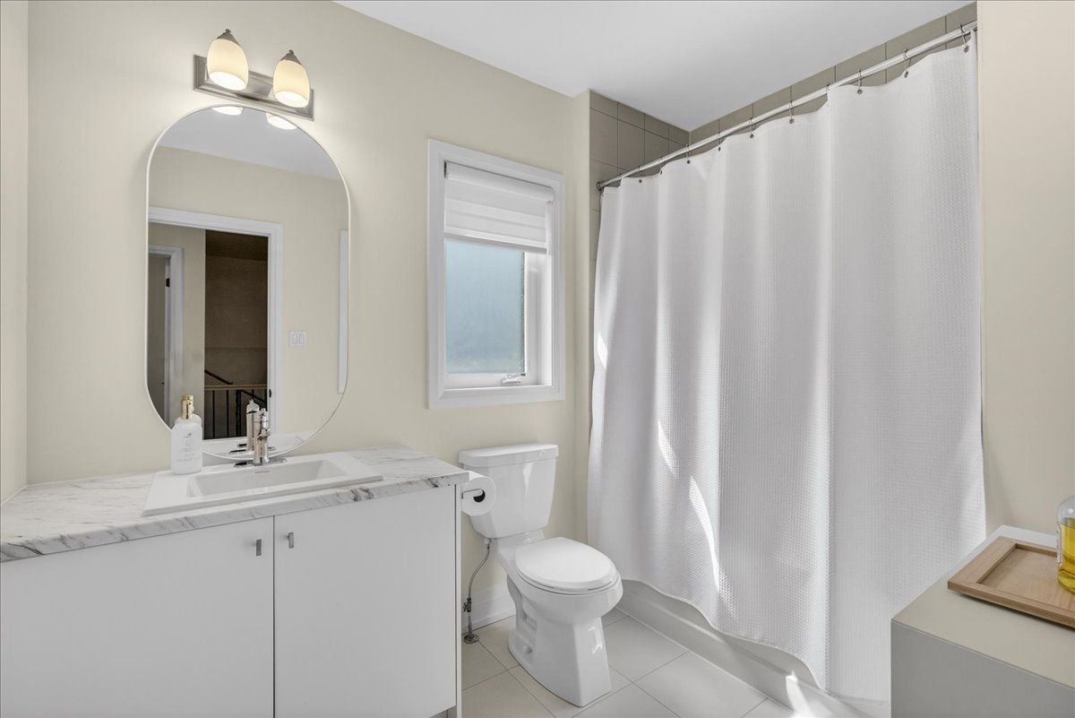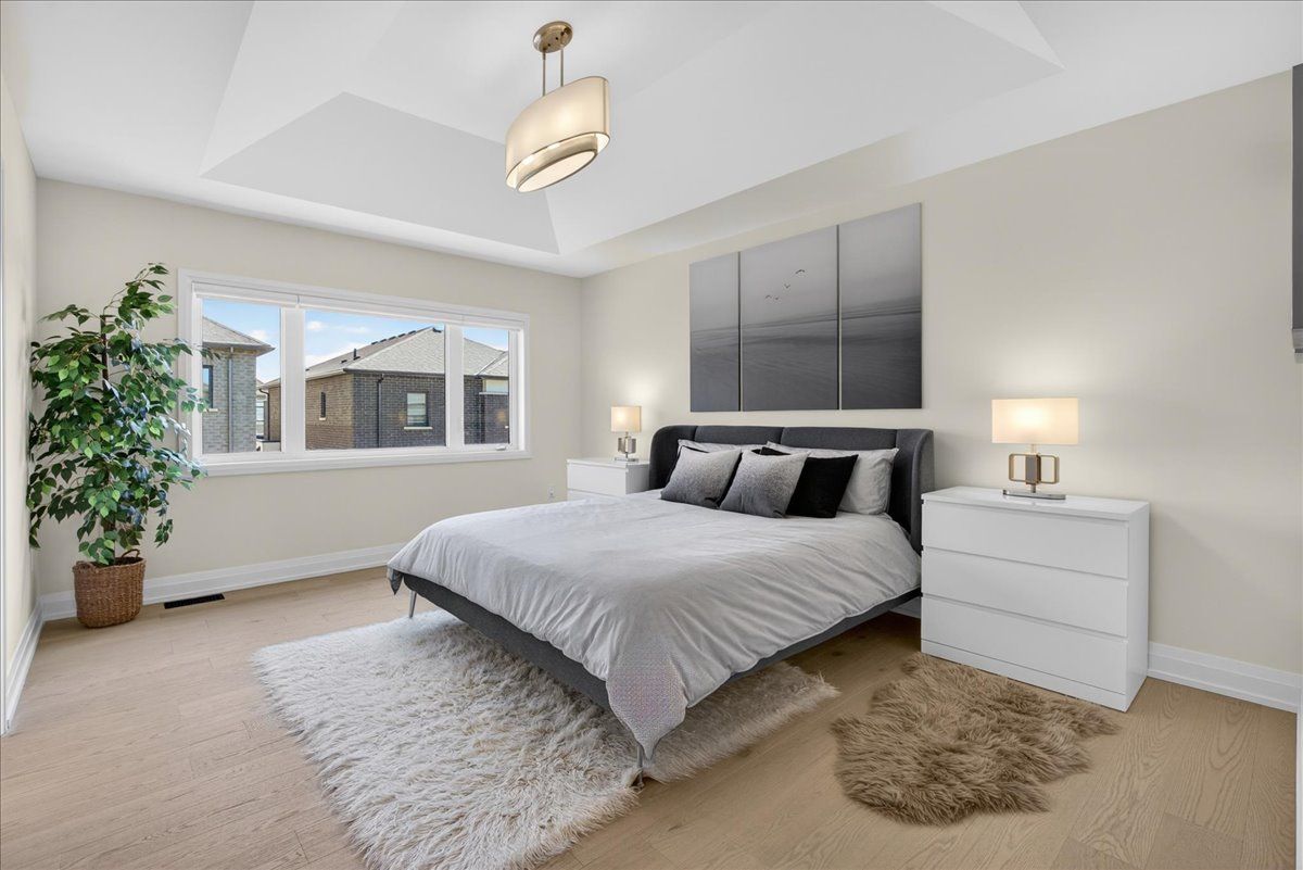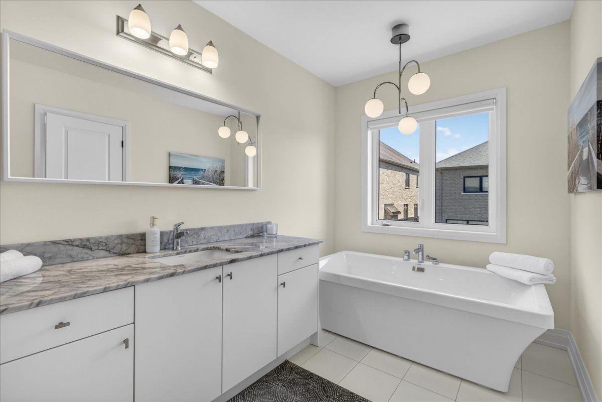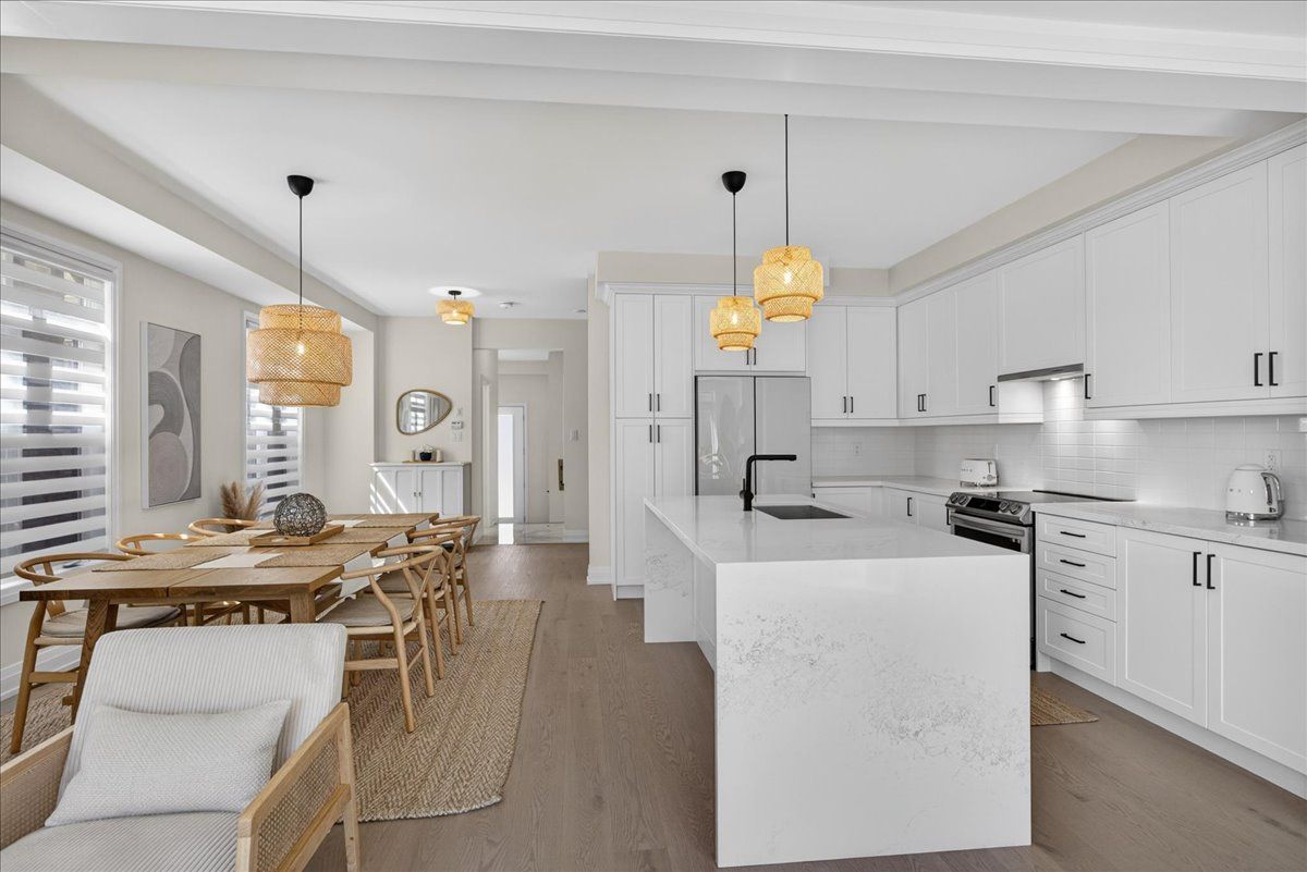 Step into unrivaled elegance: a turnkey geranium masterpiece with $100,000 in premium upgrades . Completed in 2023, this exceptional semi-detached home delivers 2,488 sq. Ft. Of meticulously finished living space, masterfully balancing upscale luxury with the peaceful charm of the elite midhurst valley community. The main level greets you with 6. 5" red oak vintage hardwood floors and a striking teak feature wall in the family room. A chef's dream, the kitchen is outfitted with a samsung bespoke appliance set, glacier white shaker cabinetry, and caesarstone empira white quartz countertops featuring a magnificent 1. 5" waterfall island. Every detail, from the matte black hardware to the porcelain foyer tiles, reflects modern architectural integrity. The elegance continues upstairs, where the primary suite serves as a true sanctuary with a raised tray ceiling and a spa-like ensuite featuring granite vanities and matte white porcelain tile. This level also offers the convenience of a stacked smart laundry center and custom zebra pull-down blinds throughout. The professionally finished basement (~600 sq. Ft.) is an entertainer's paradise, boasting an 80" bar with a built-in beverage fridge, custom barn doors, and a high-end acoustic insulation system for ultimate privacy. With its natural stone exterior and designer-curated interior, this home is a rare opportunity to own a masterfully upgraded asset in an elite four-season enclave.