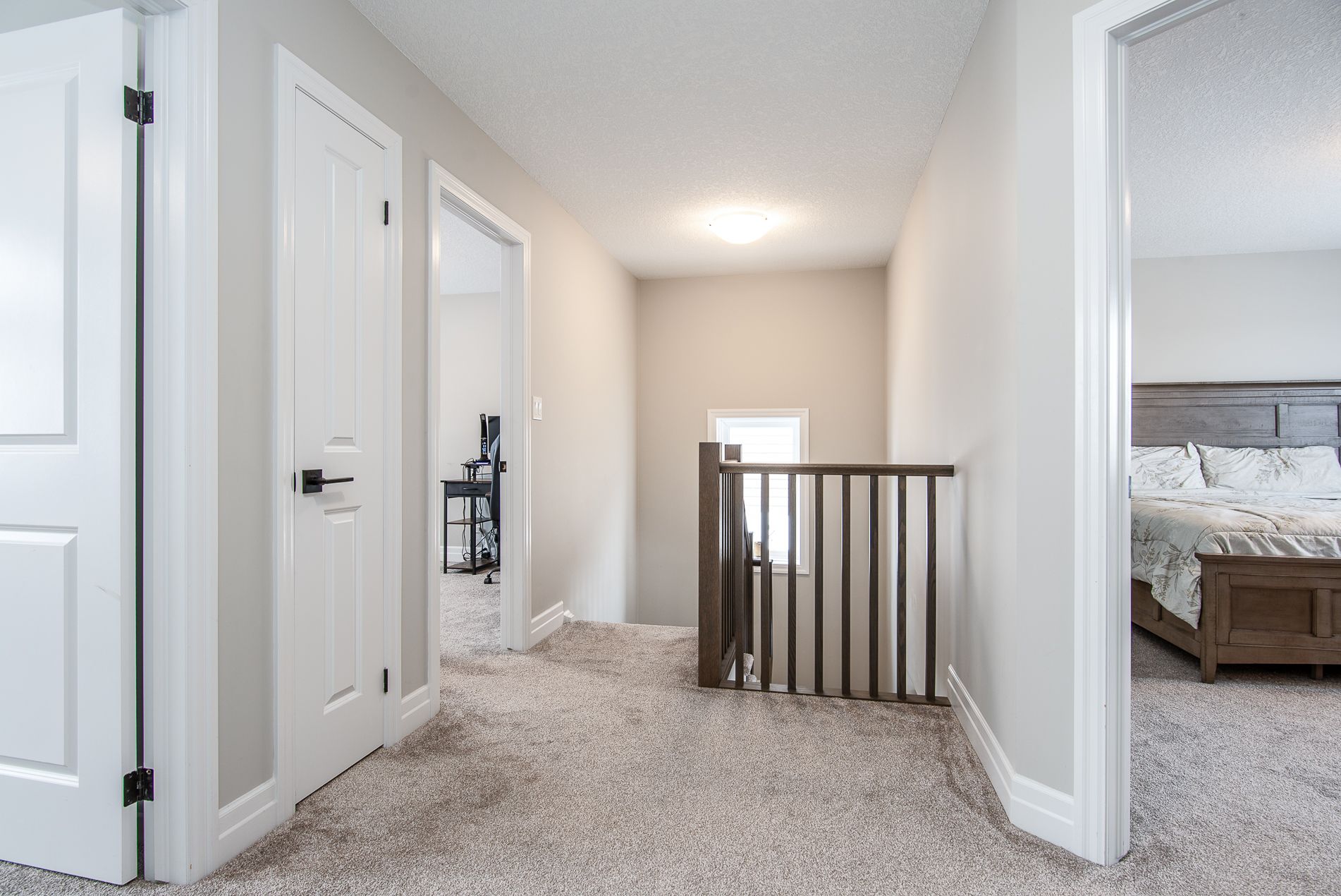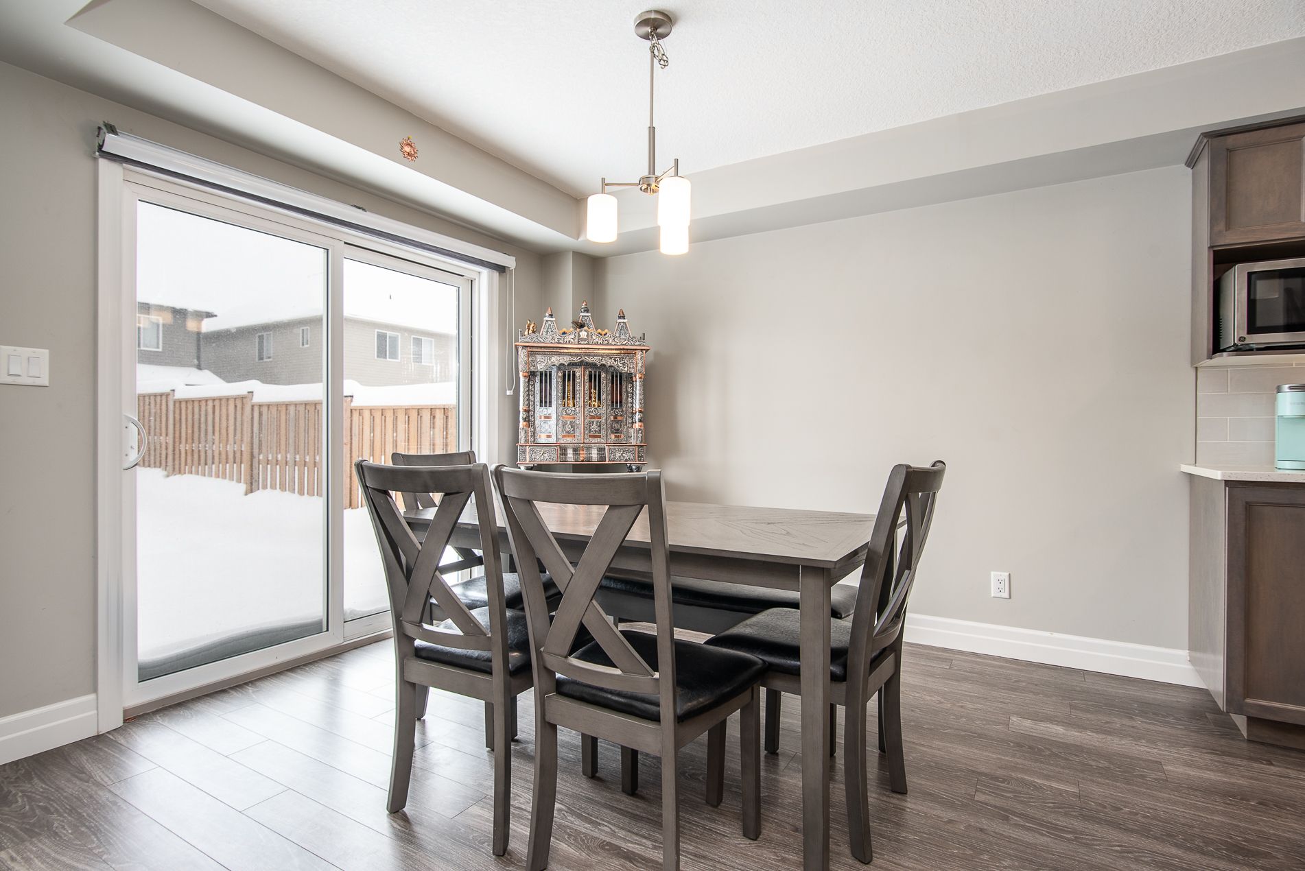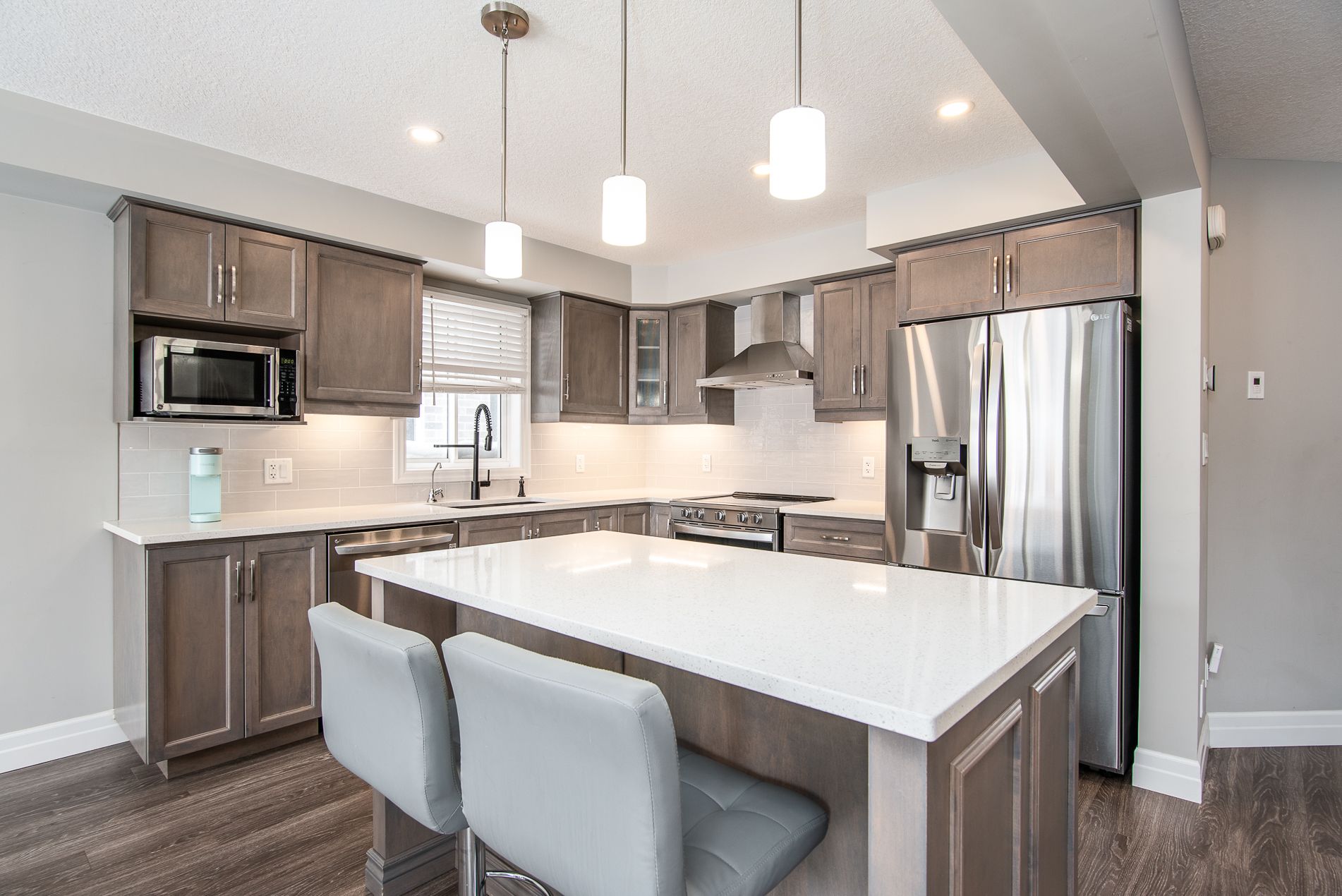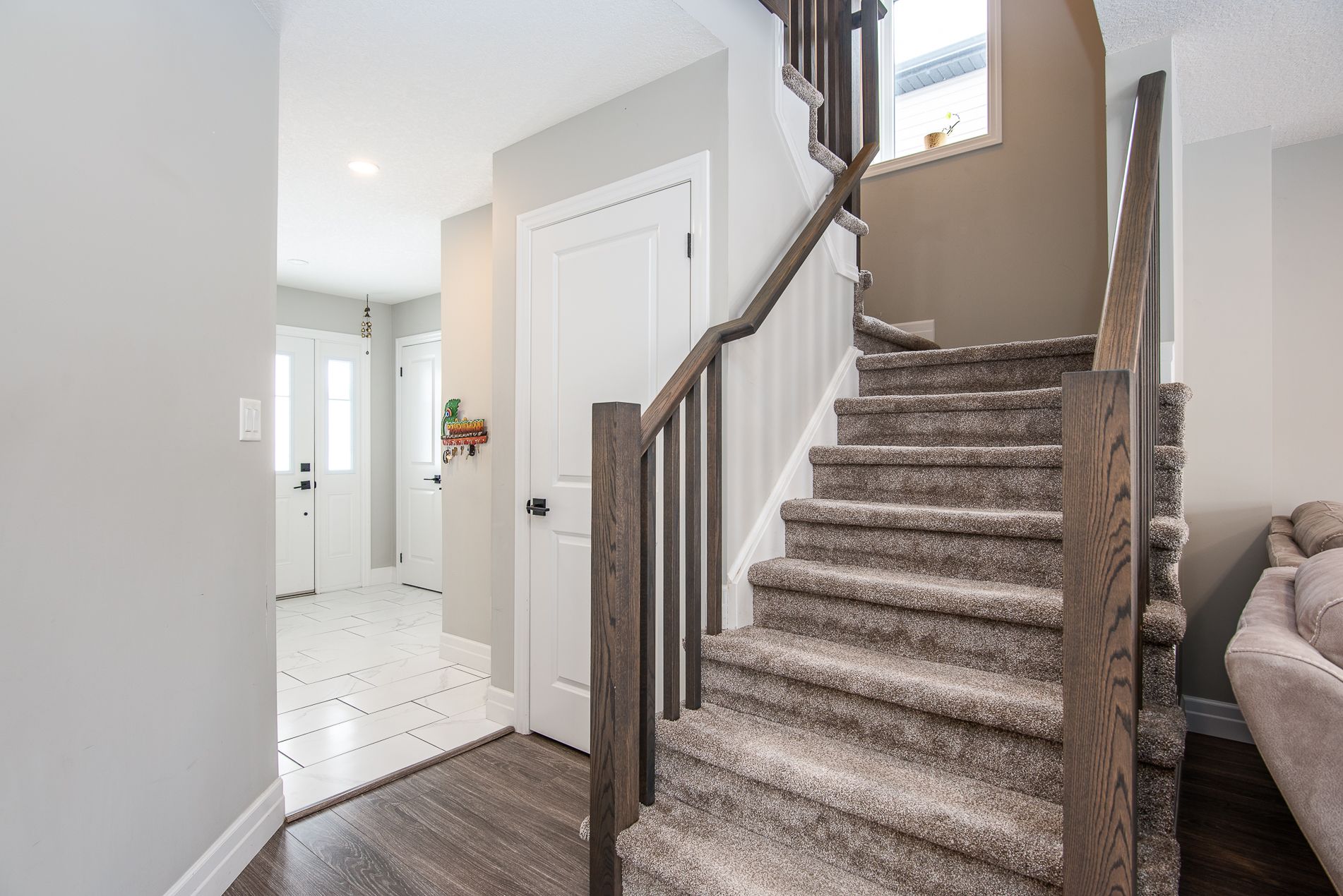 This beautiful, immaculate 5-year-old, 1,630 sq. Ft. Family home is located in a highly desirable neighbourhood. The main floor features a bright open-concept layout with an abundance of windows that flood the home with natural light. The family room showcases an electric fireplace surrounded by elegant stonework, creating a warm and inviting space. The kitchen offers a spacious island, ample upgraded cabinetry, quartz countertops, stainless-steel appliances, and a sliding door with walk-out to the fully fenced backyard. The main floor also includes a powder room, a generously sized dining/living area, and a large number of upgraded pot lights throughout . Upstairs, you will find three spacious bedrooms, including a primary bedroom with a large closet and a 3-piece ensuite featuring an upgraded glass shower door. A second 4-piece bathroom completes the upper level. This lovely residence offers numerous upgrades, including: subway tile backsplash, extended kitchen cabinetry, brushed cabinet hardware, blanco kitchen sink, soft-close drawers, additional pot lights, steel range hood, laminate flooring, black faucets throughout, upgraded bathroom and foyer tiles, railings and plush shag carpeting, black shower heads and door handles, two bidets, water line to fridge, built-in soap dispenser, owned water softener, water purification and water heater system. The large basement features oversized windows and a bathroom rough-in, offering endless possibilities for future development. Additional highlights include a large garage, very generous concrete driveway, concreate sidewalk all the way to the backyard and patio -2025 plus heat pump that acts like a heat and central air. . Conveniently located close to a community center, farmers' market, public transit, schools, and shopping. Flexible closing