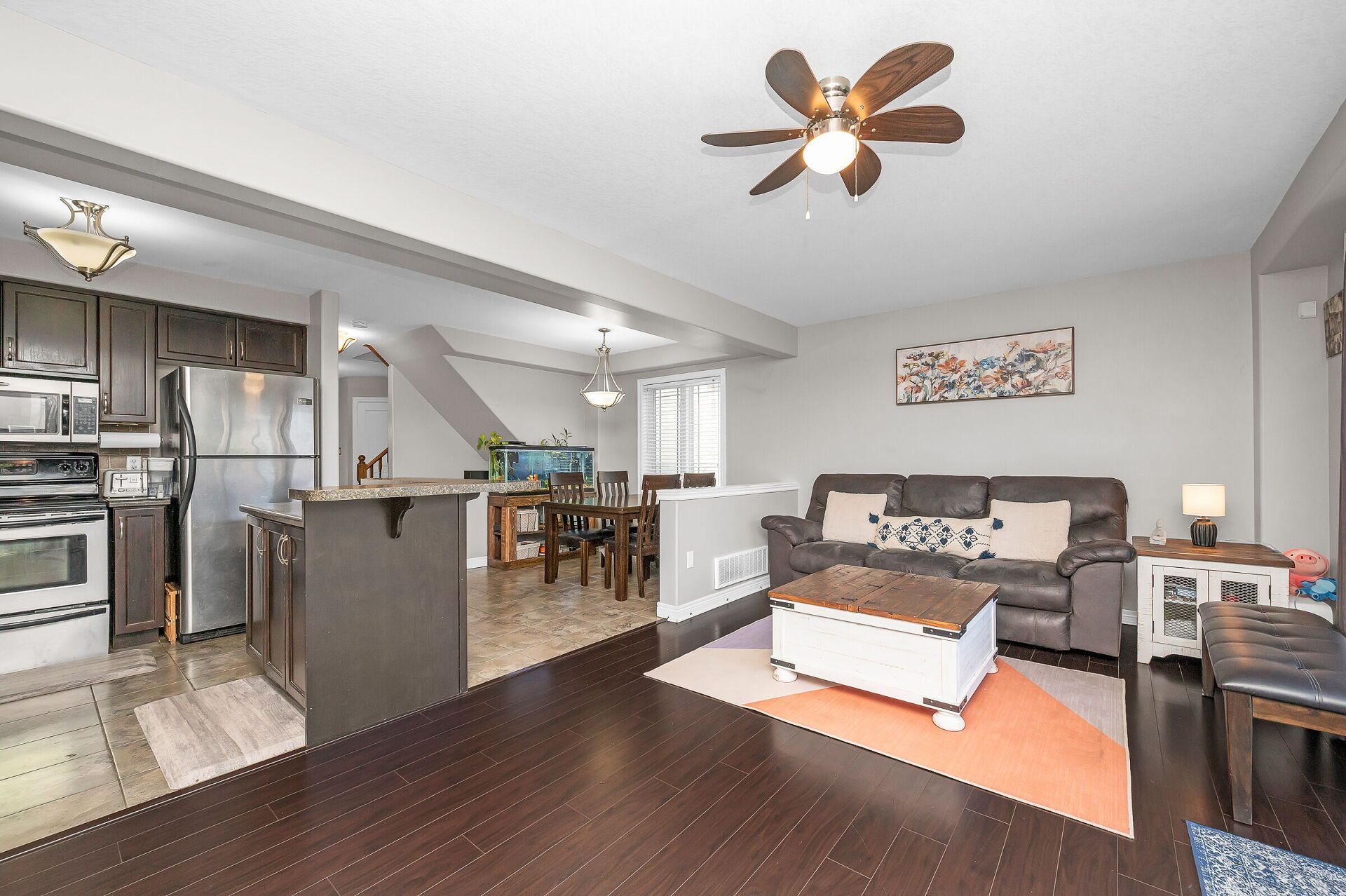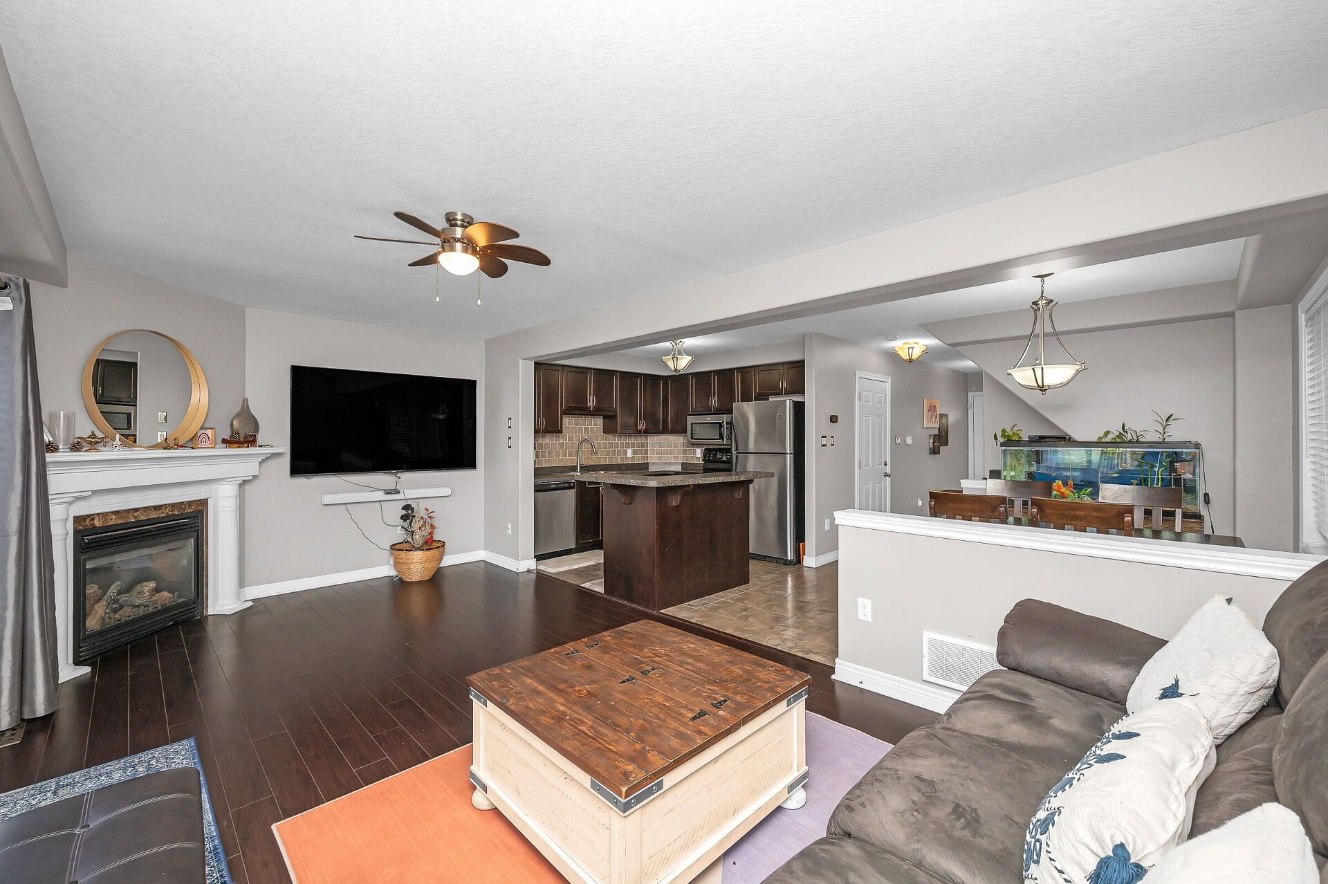 • Open-concept main floor with a stylish kitchen and cozy living room.