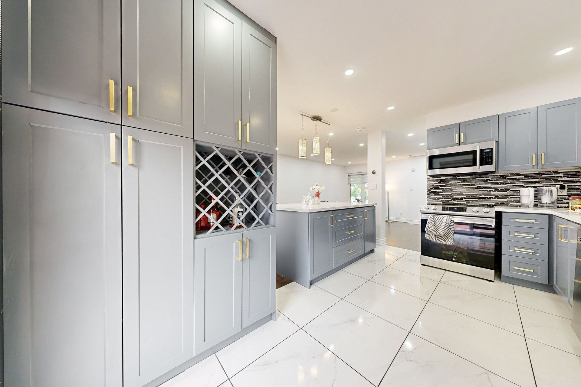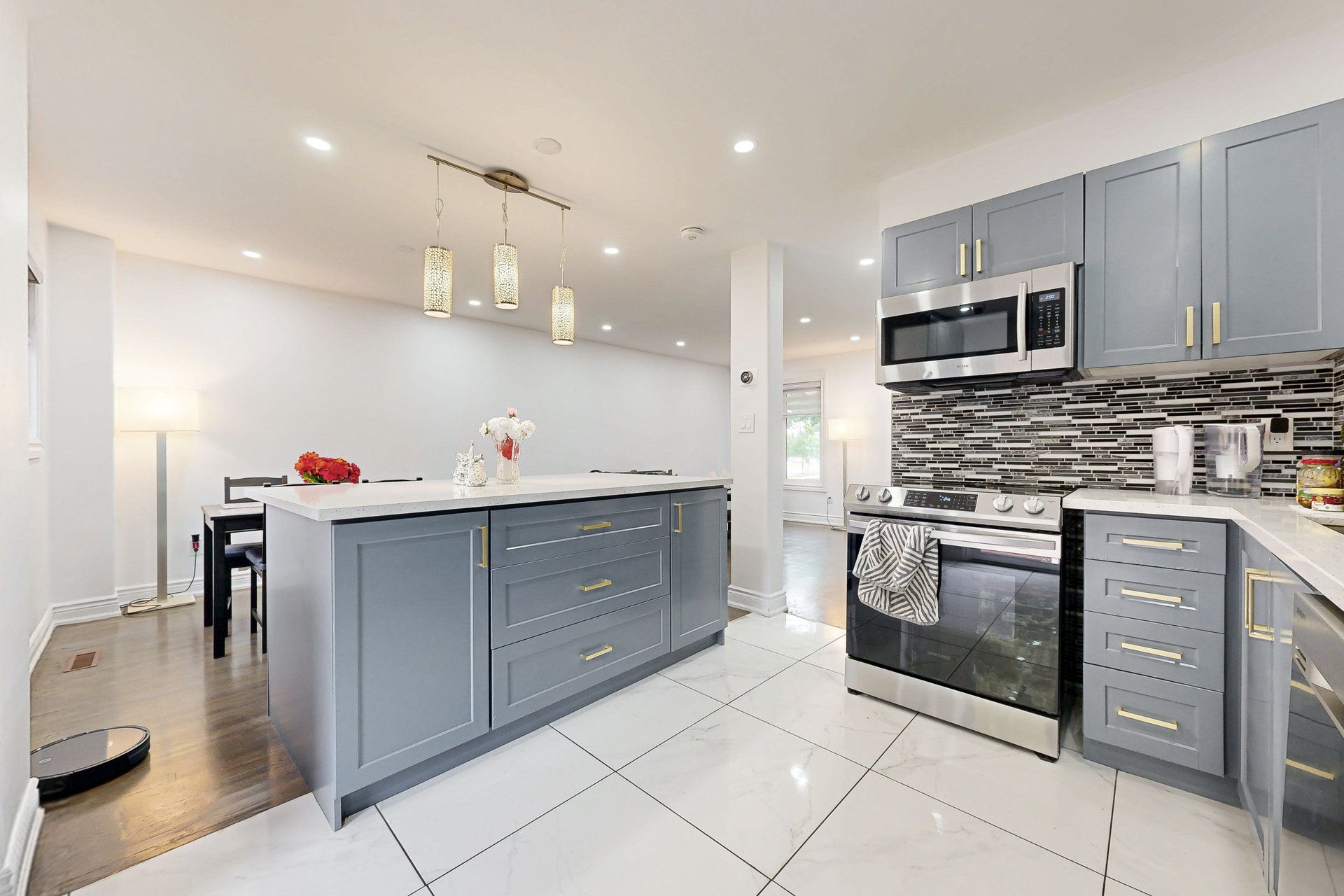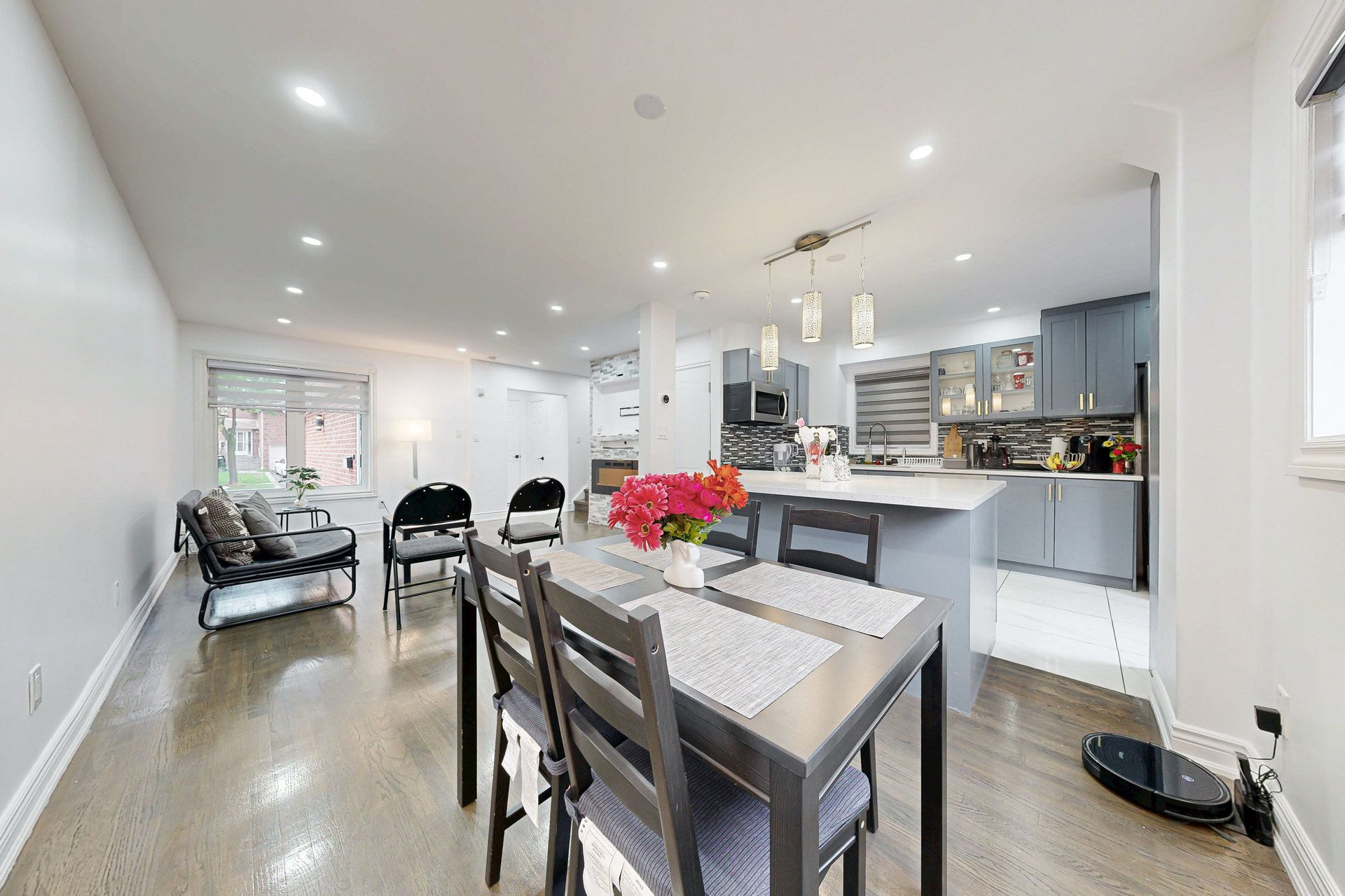 • Open concept main floor featuring quartz countertops and pot lights.