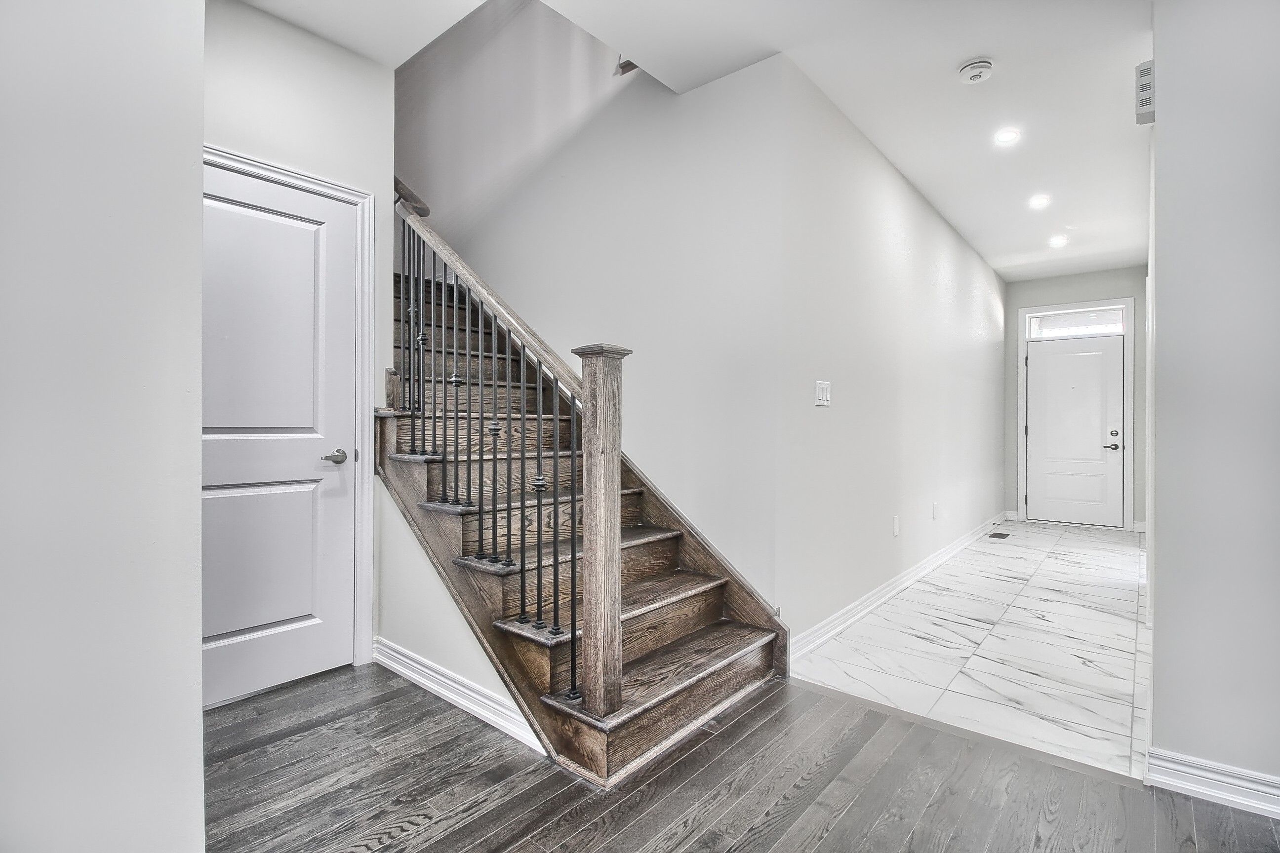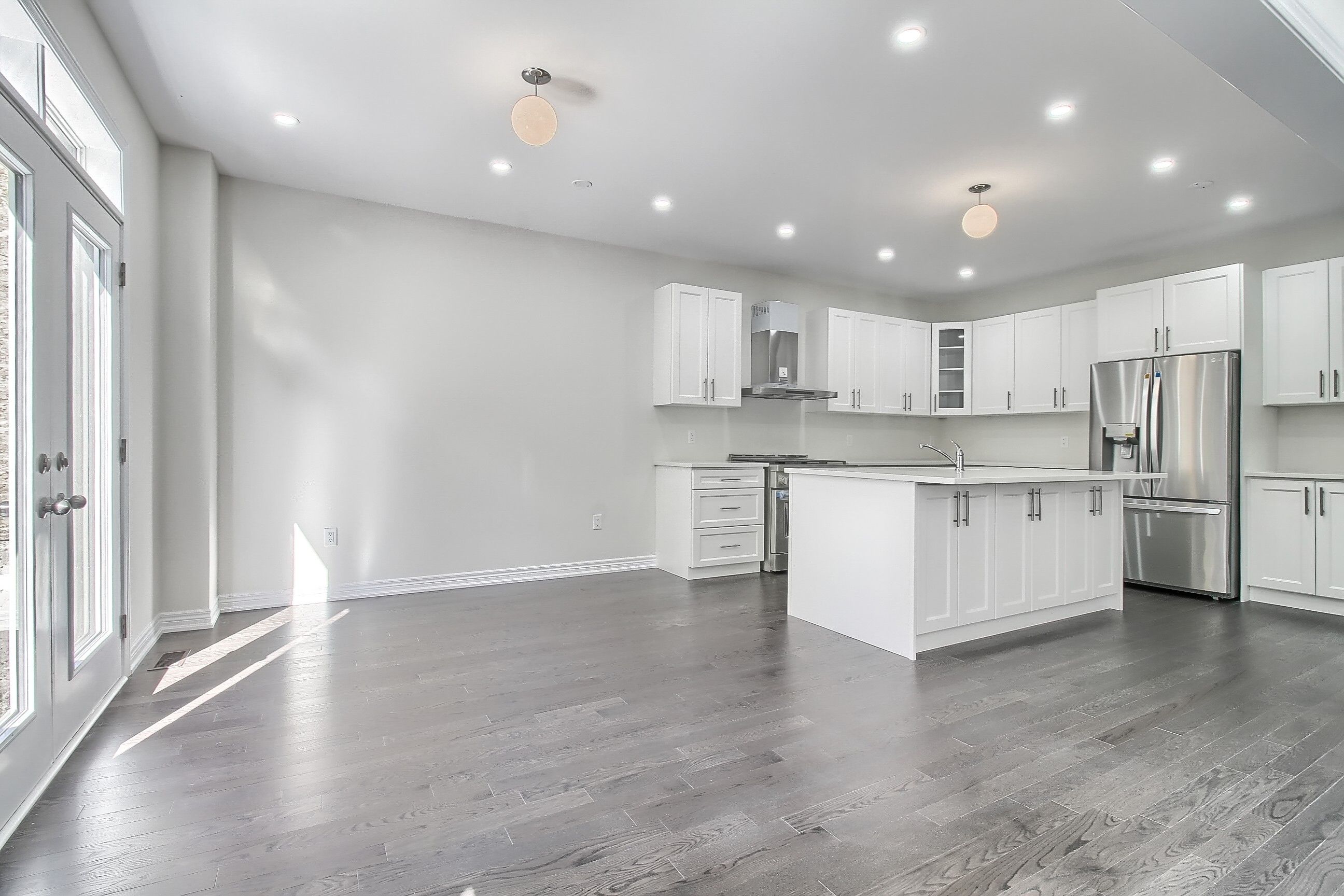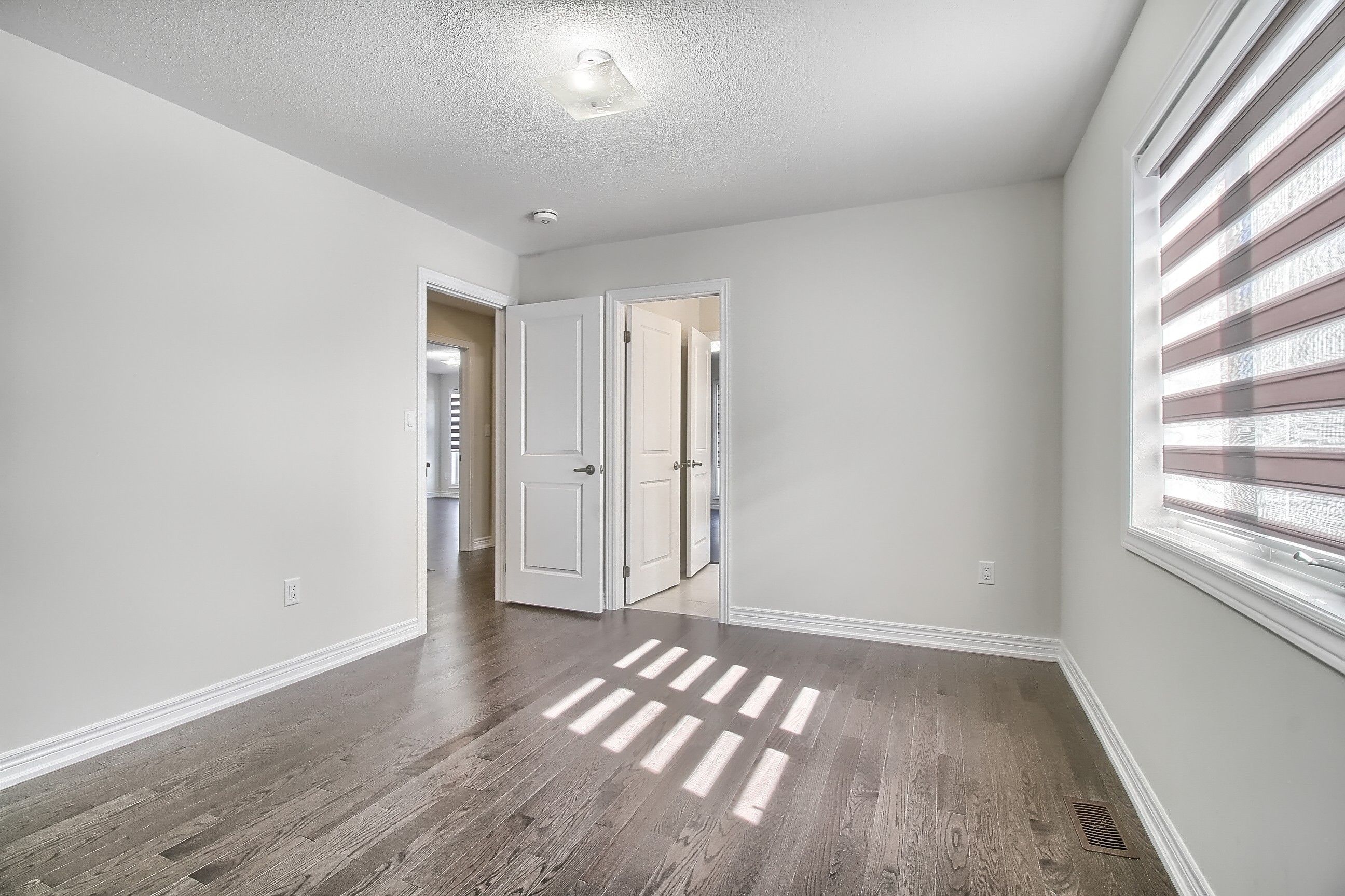 • Bright detached home with a double car garage and no carpet.