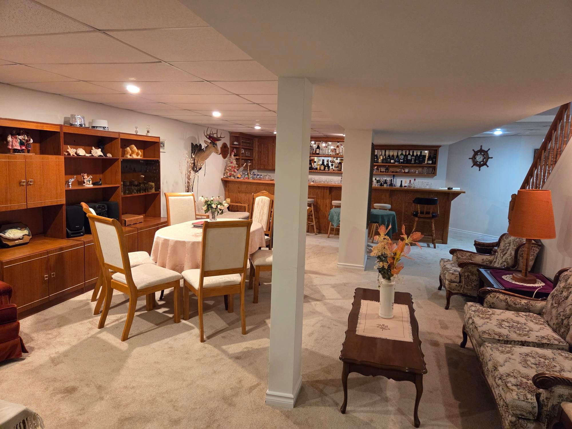 • Large recreation room with a wet bar, perfect for entertaining.