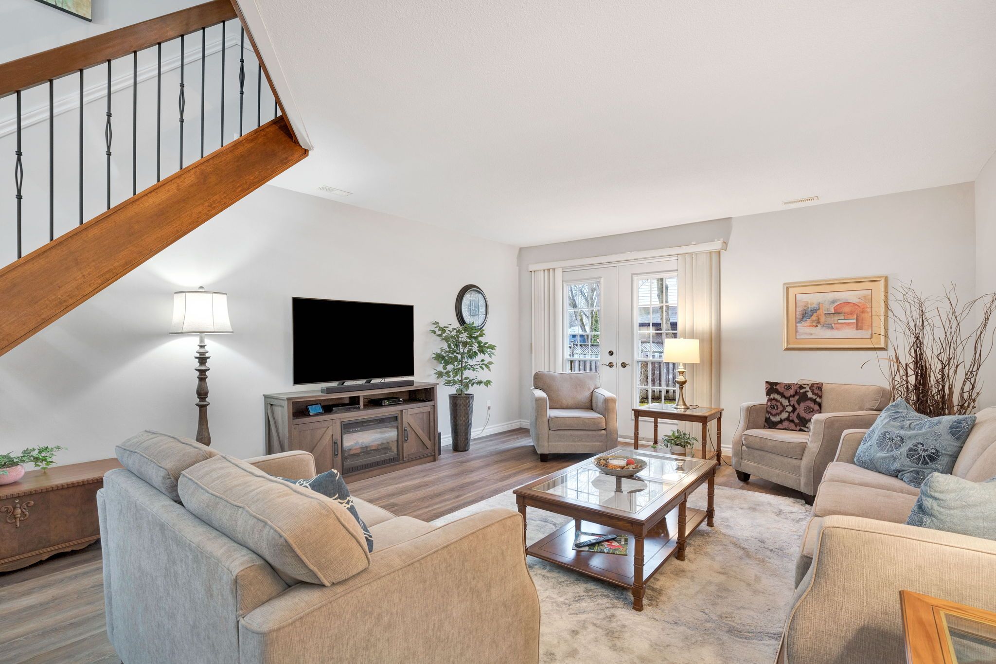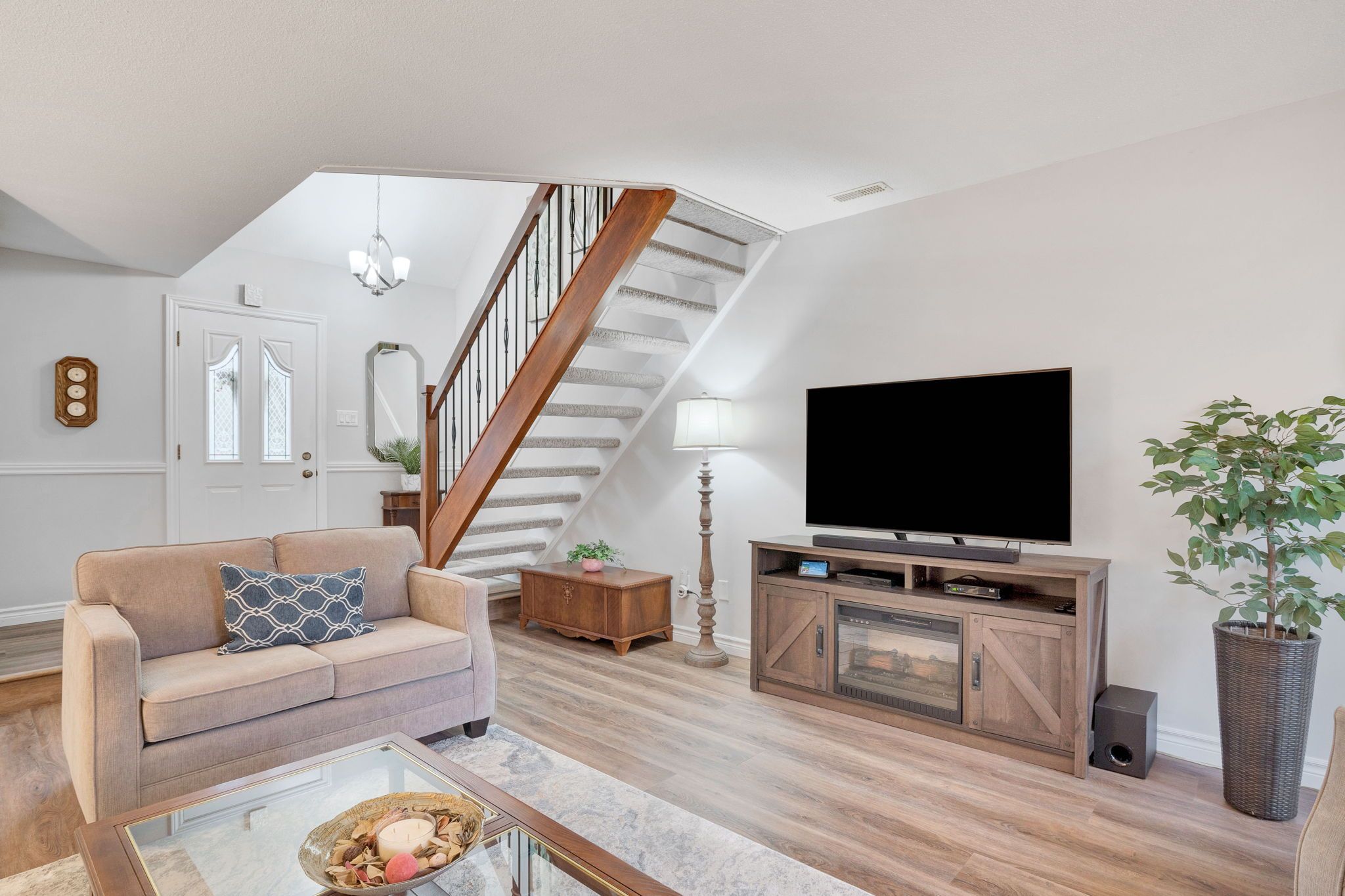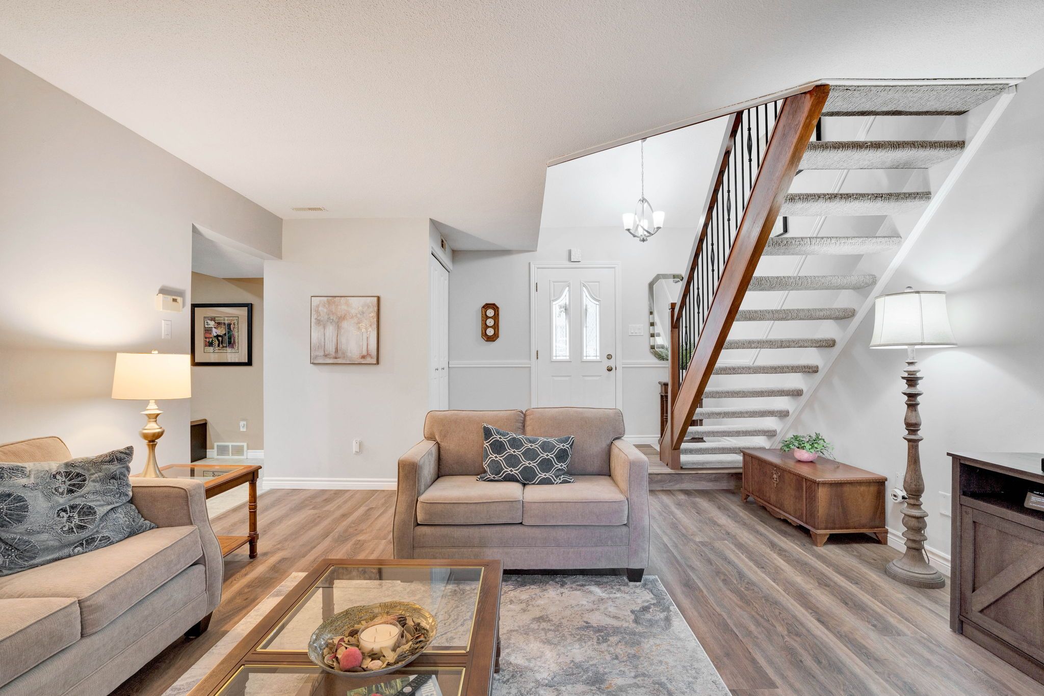 • Bright open-concept living space with new flooring and updated lighting.
