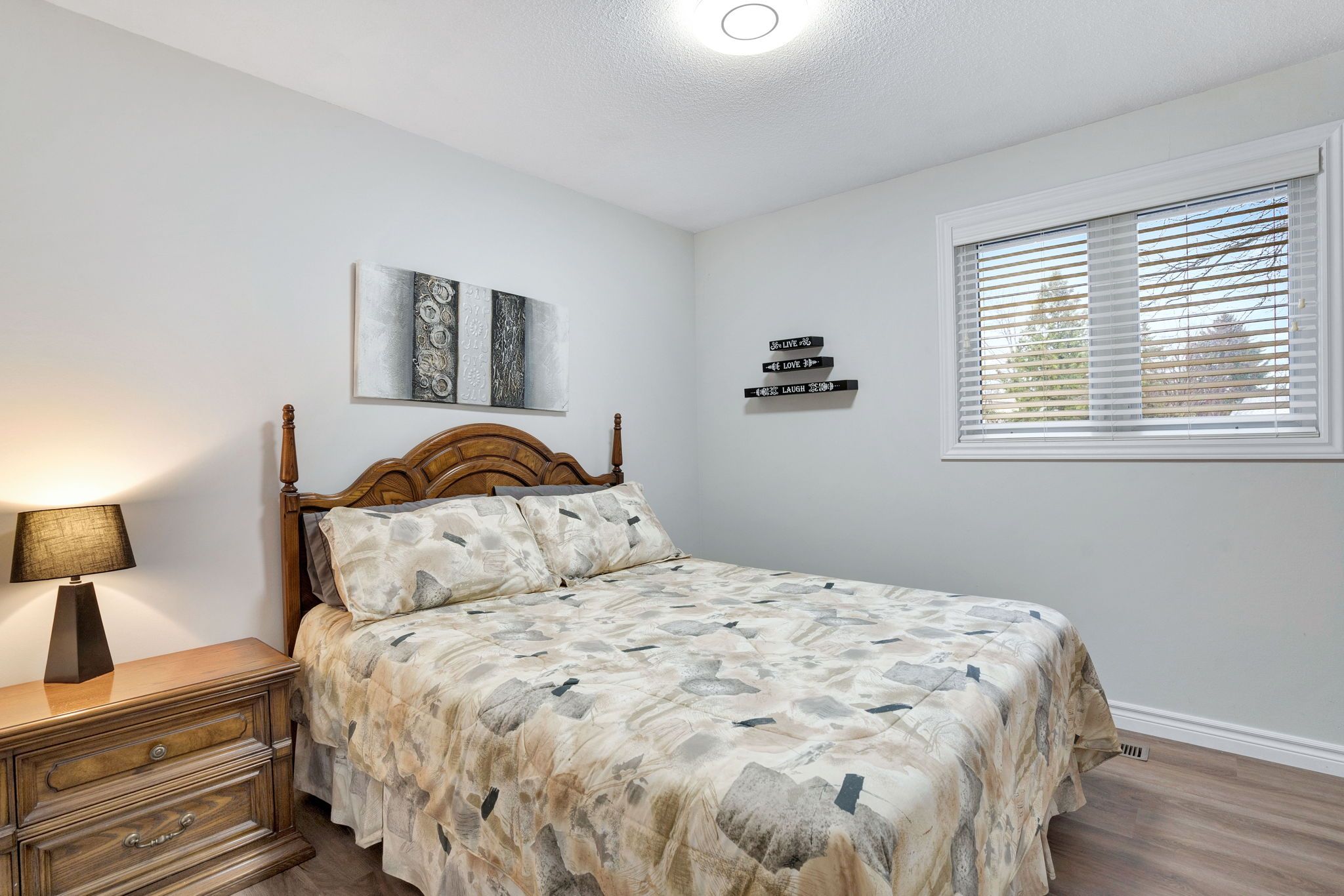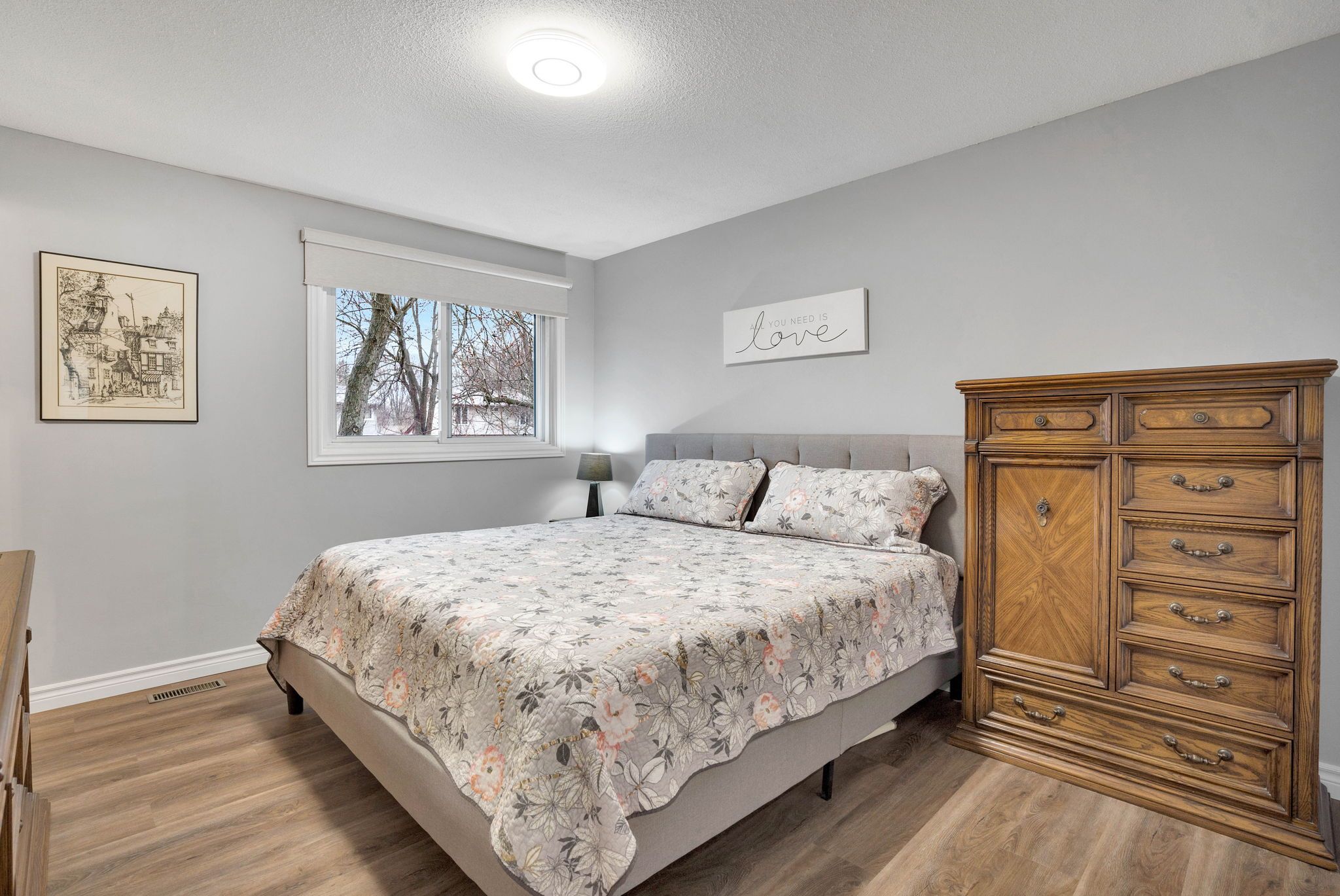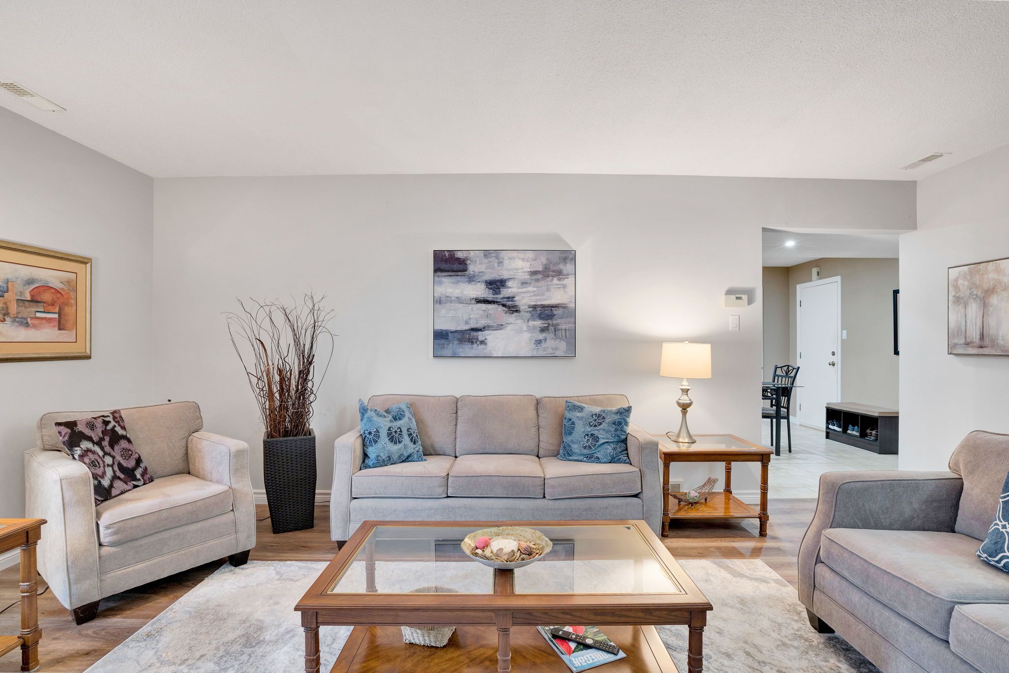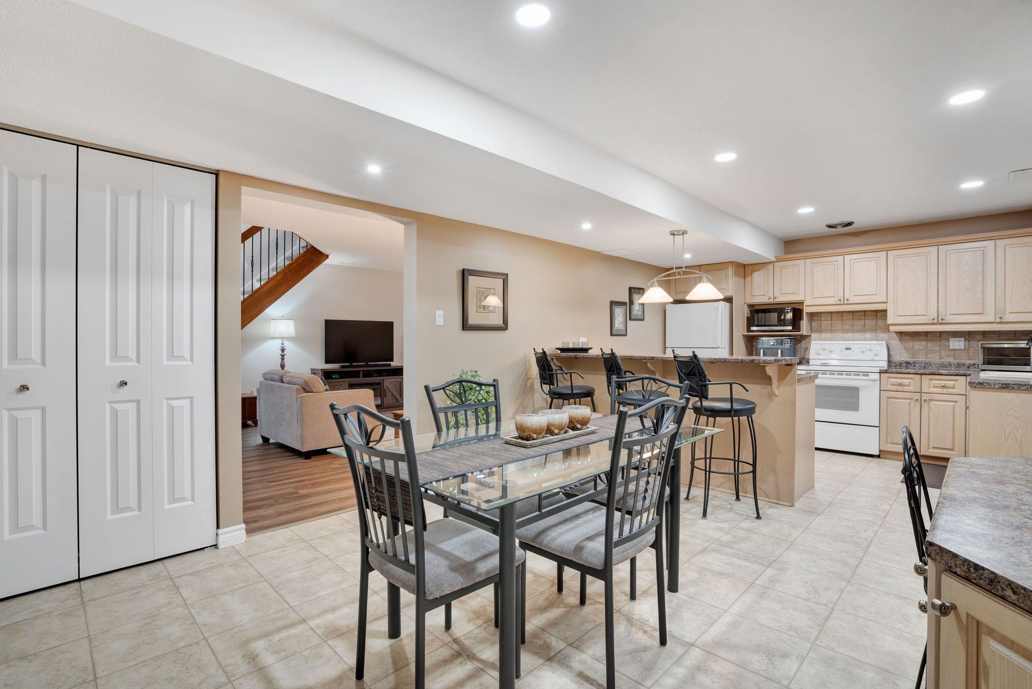 • Bright open-concept living space with new flooring and updated lighting.