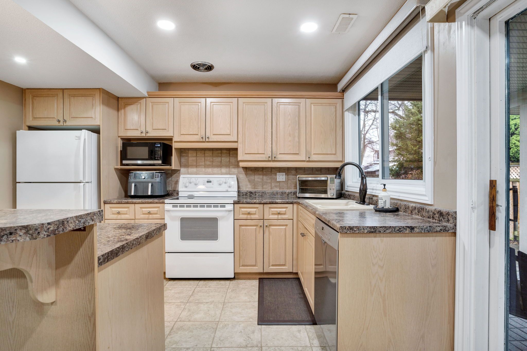 • Sun-filled kitchen with ample counter space and dining area for entertaining.