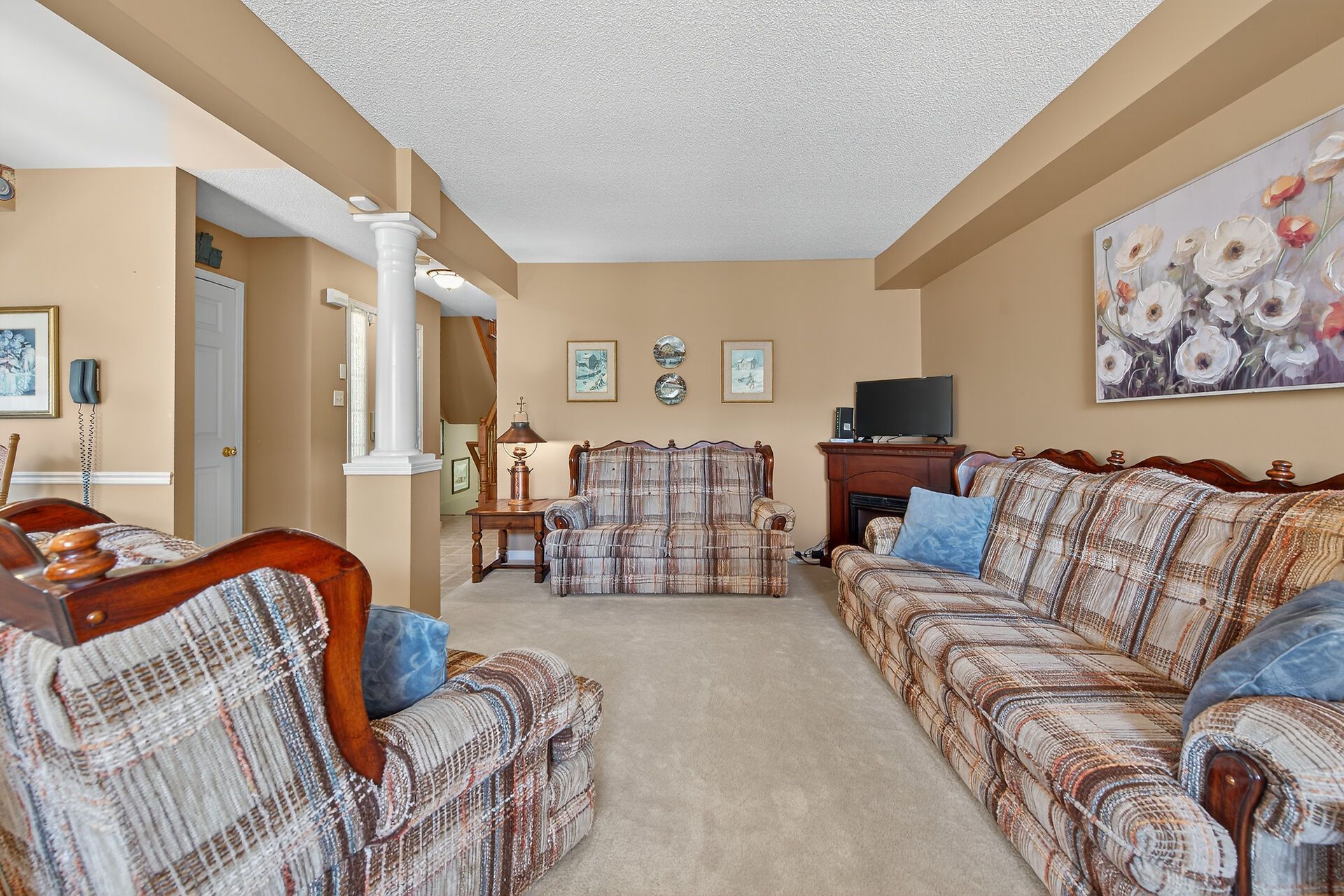 Welcome to this well-maintained freehold 2-bedroom, 2. 5 bath townhouse, perfectly situated below the scenic escarpment and just moments from schools, parks, the lake, wineries, shopping, restaurants and quick q. E. W. Access. Proudly owned by the original owner, this end-unit home affords abundant natural light from the large windows throughout. The open- concept main floor features a bright kitchen with breakfast area, an extended dining room with vaulted ceiling and walkout to the back deck, and a comfortable living room - ideal for both everyday living and entertaining. Warm hardwood stairs lead to the upper level where you will find 2 generous-sized bedrooms, including the principal suite with a walk-in closet and 4-piece ensuite showcasing a separate shower and relaxing soaker tub. A second 4-piece bath, convenient second-floor laundry and a versatile media loft/family room complete the level. The professionally finished lower level provides additional living space with a spacious recreation room. The furnace room has the added convenience of a laundry sink. There is a rough-in for central vacuum. Outdoors - enjoy a fully fenced backyard highlighted by mature gardens with plenty of room to relax or entertain. There's no need to haul your lawnmower through the home with side access to the yard. Useful inside entry from the single-car garage. Exposed aggregate driveway provides parking for four additional cars. Updates include roof shingles (2017), furnace (2019), central air (2021) some windows (2021). This home blends comfort with convenience and provides a solid foundation with wonderful potential to personalize and decorate to suit your style - all in a quiet sought-after grimsby neighbourhood.