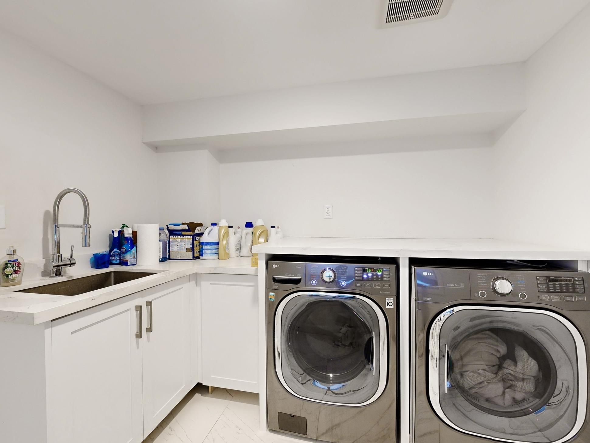 • Basement includes entertaining space with heated flooring and central vacuum.