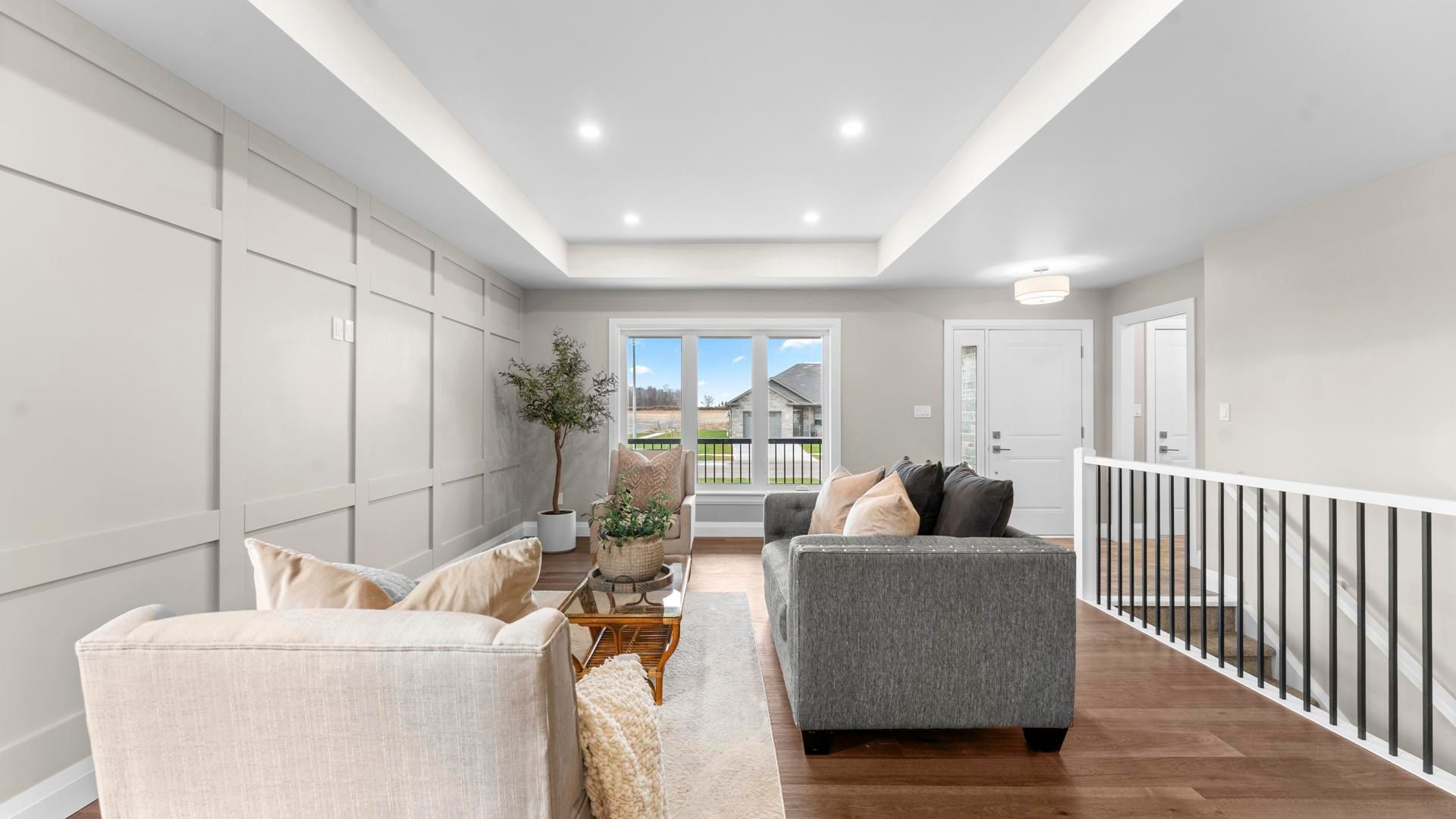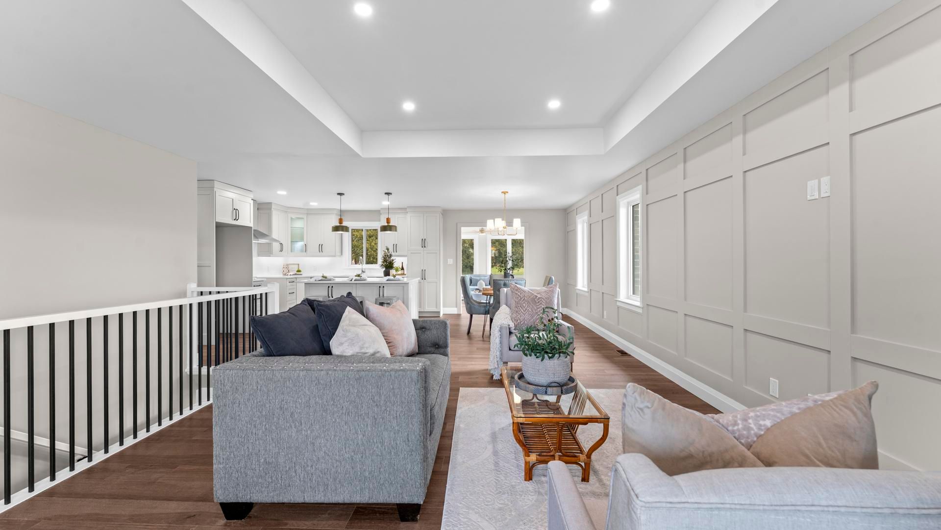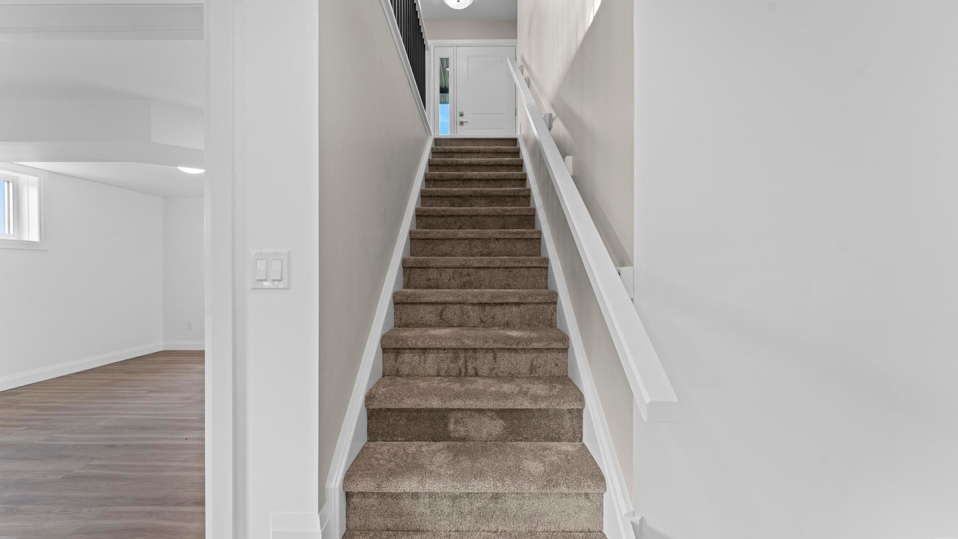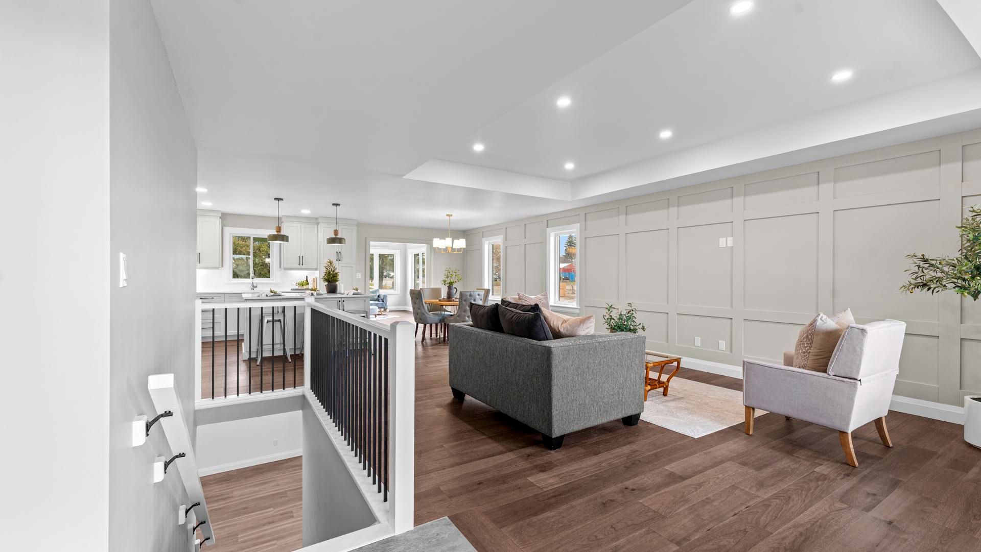 • Open-concept living area with quartz counters and main-floor laundry.
