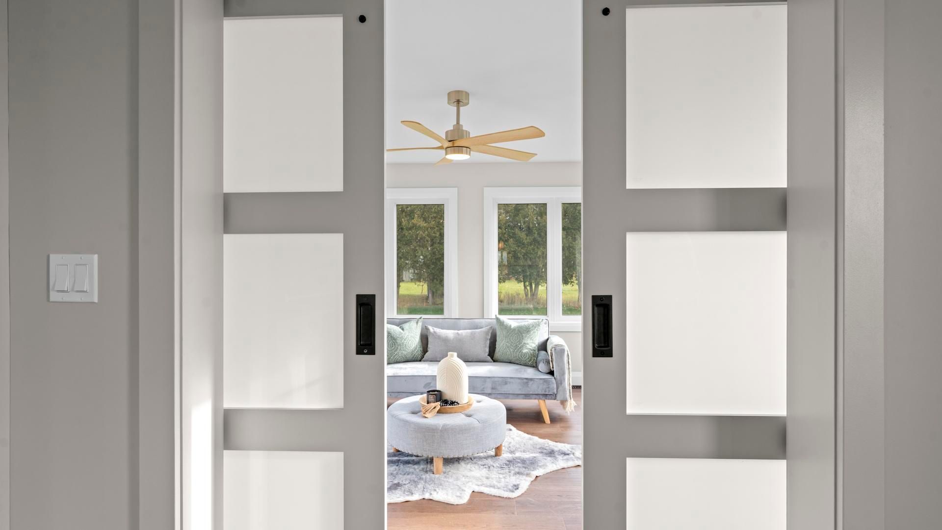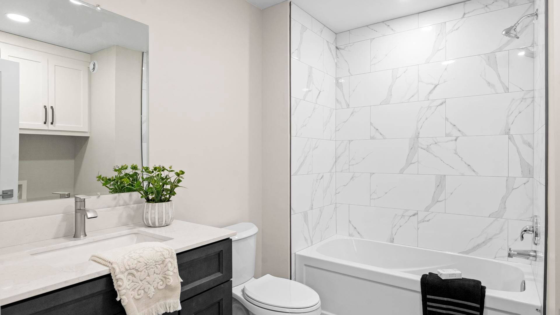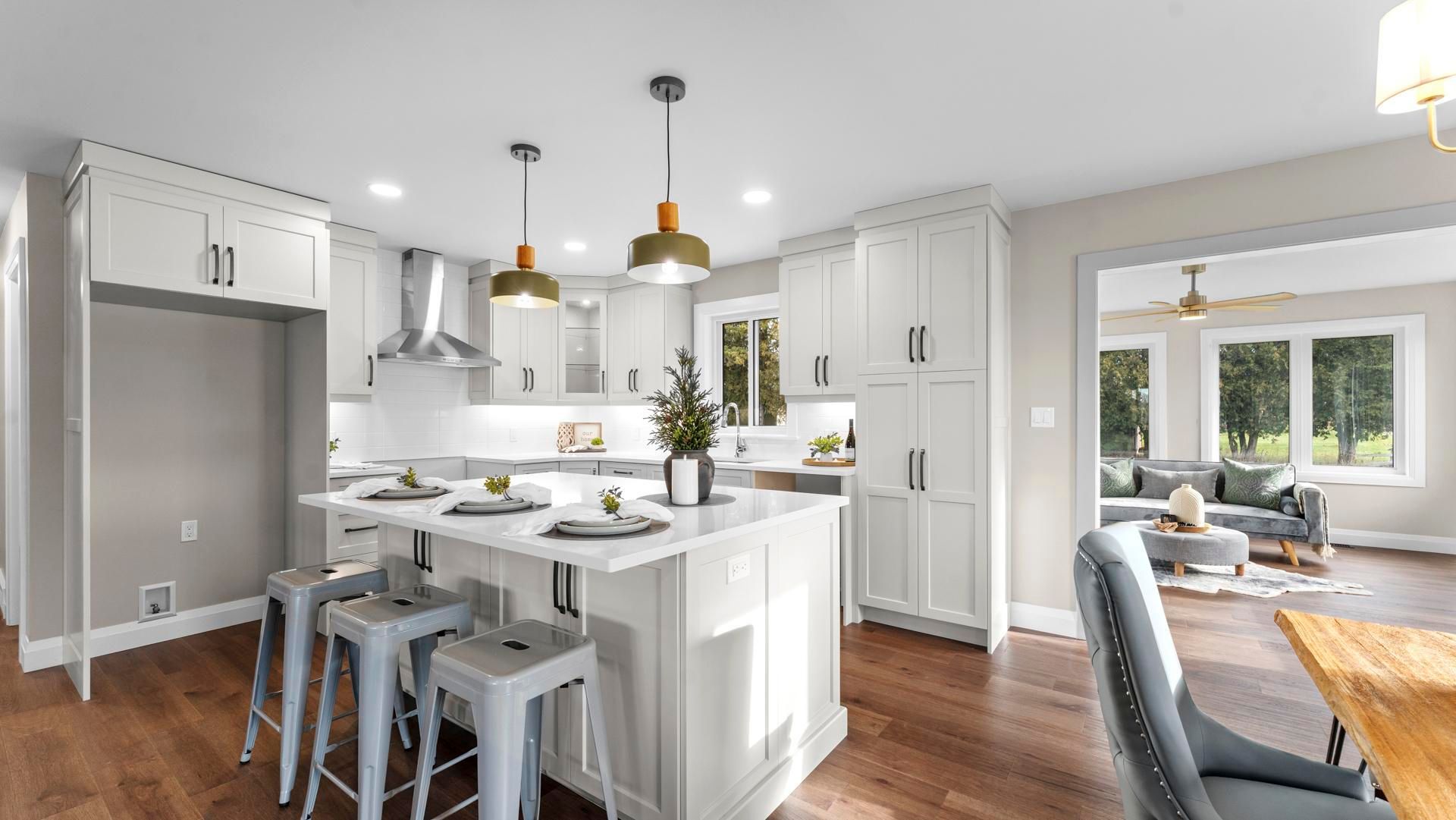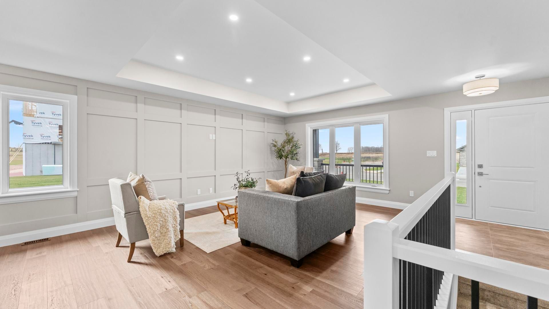 • Open-concept living area with quartz counters and main-floor laundry.