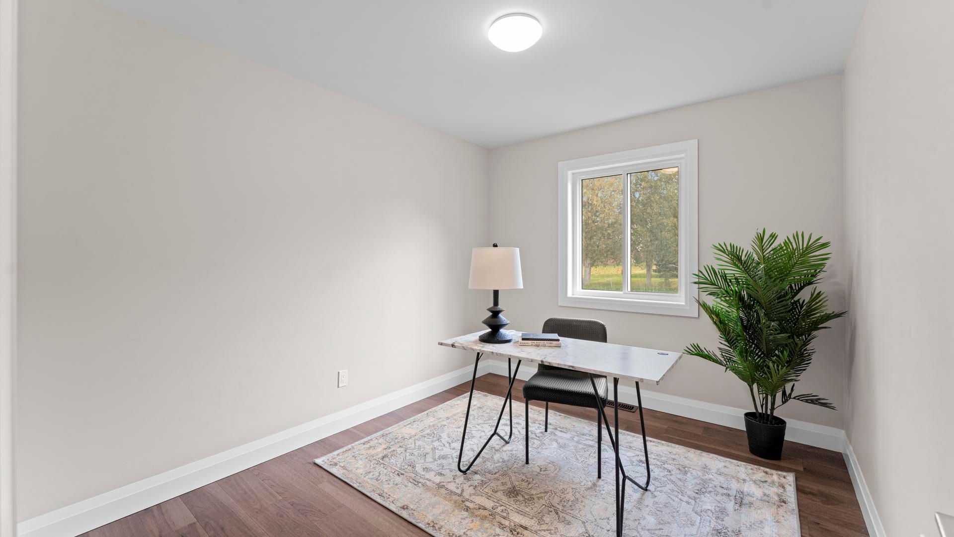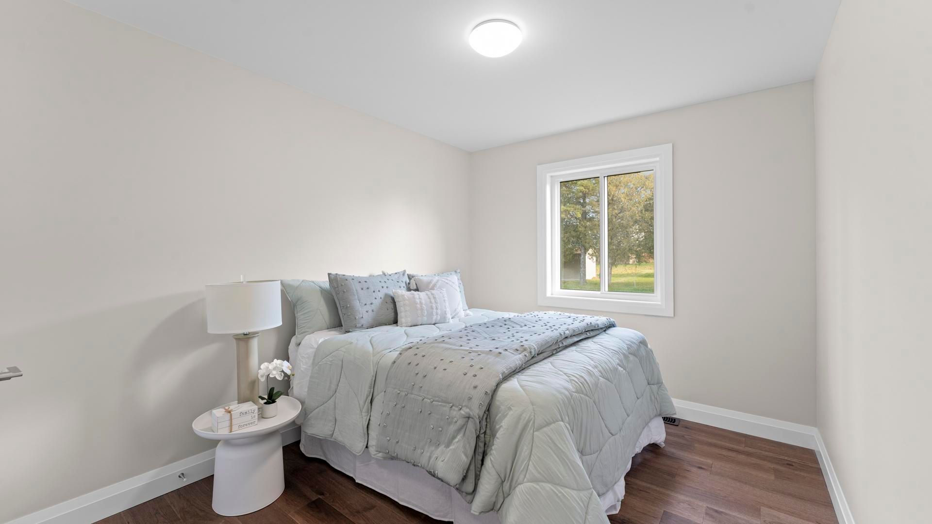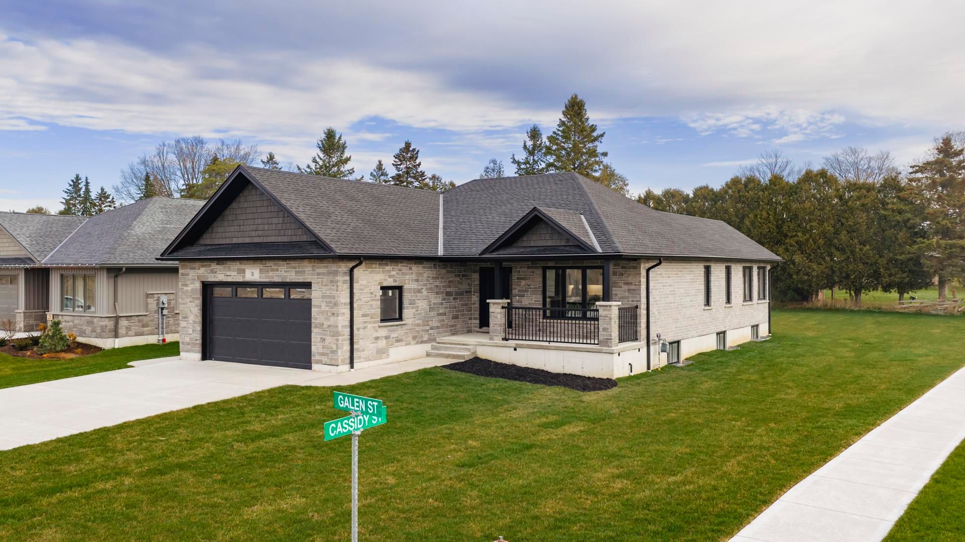 Brand-new 3-bedroom bungalow on a large corner lot in a quiet small town. This stunning home features an open-concept living/dining/kitchen area with quartz counters, main-floor laundry, and a spacious primary bedroom with ensuite. An enclosed sunroom extends the living area and opens directly onto the back deck, perfect for relaxing or entertaining. The partially finished basement offers incredible flexibility. Designed with garage access, it includes a large rec area, a bonus room, generous storage, and a 4-piece bath. The thoughtfully designed layout has a kitchen area roughed in for future opportunities. Come check out this fresh, functional layout with quality finishes. Perfect for anyone seeking comfortable main-floor living in a peaceful community.