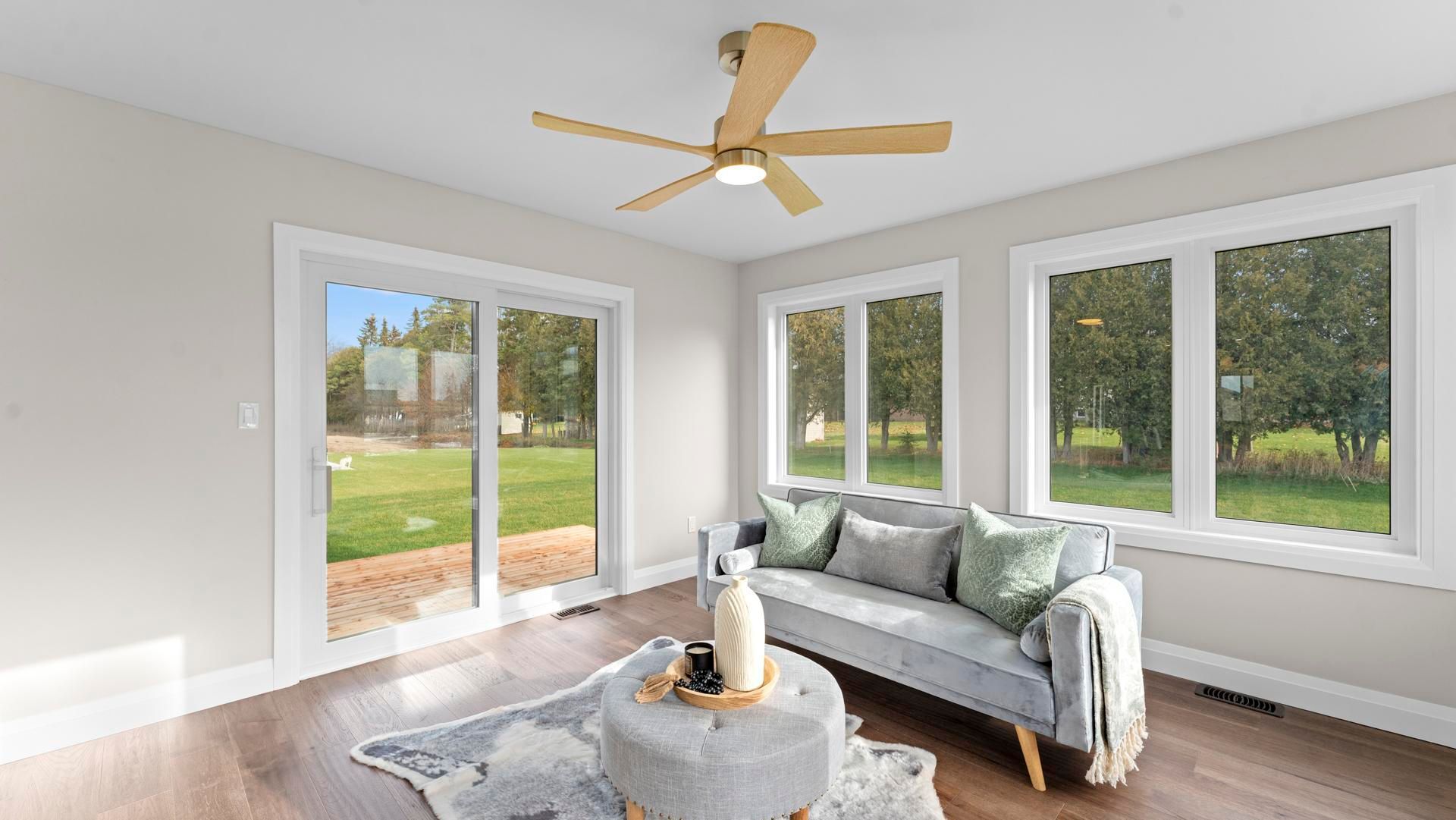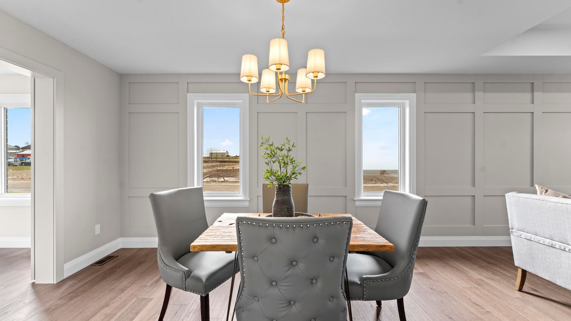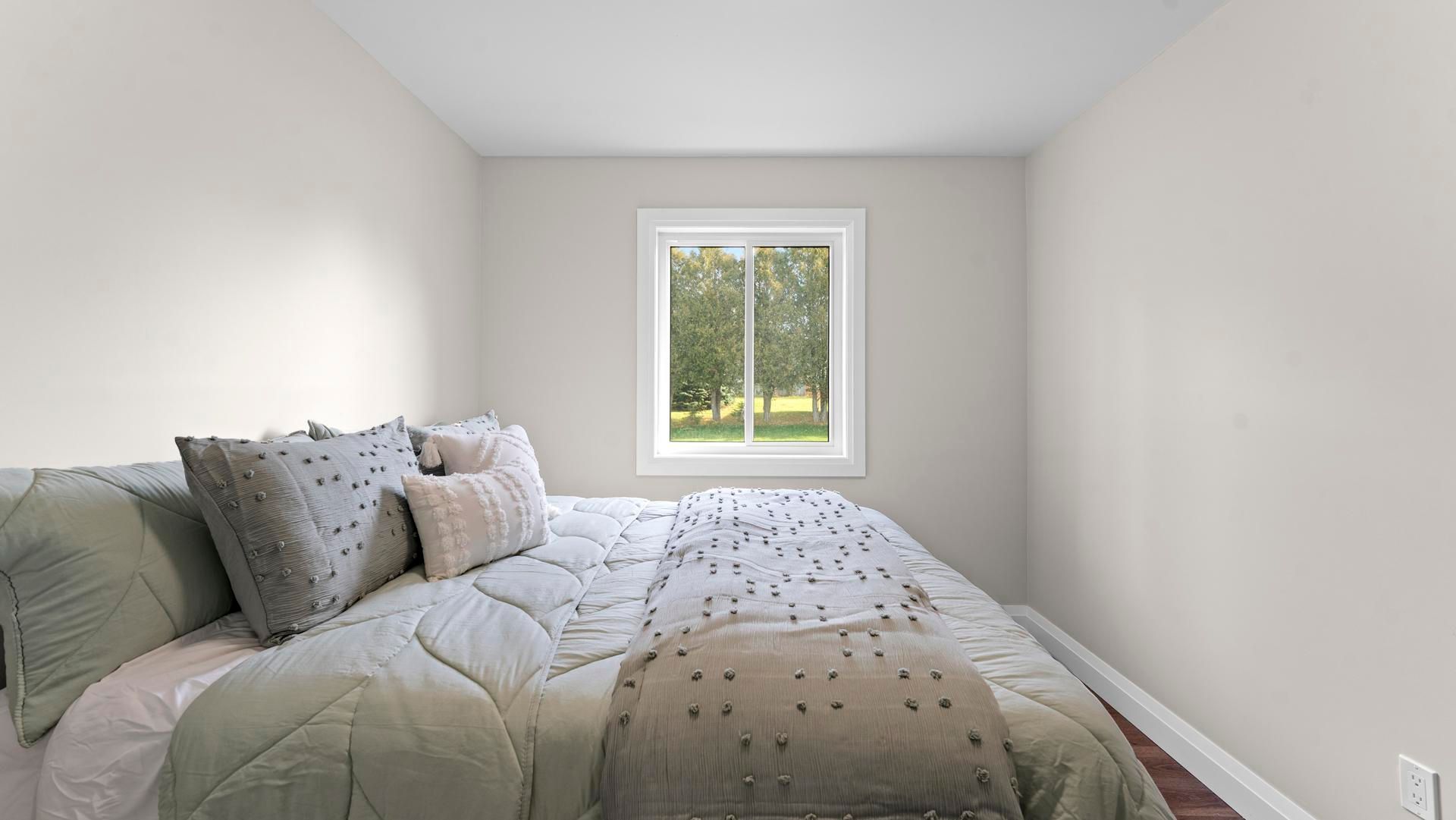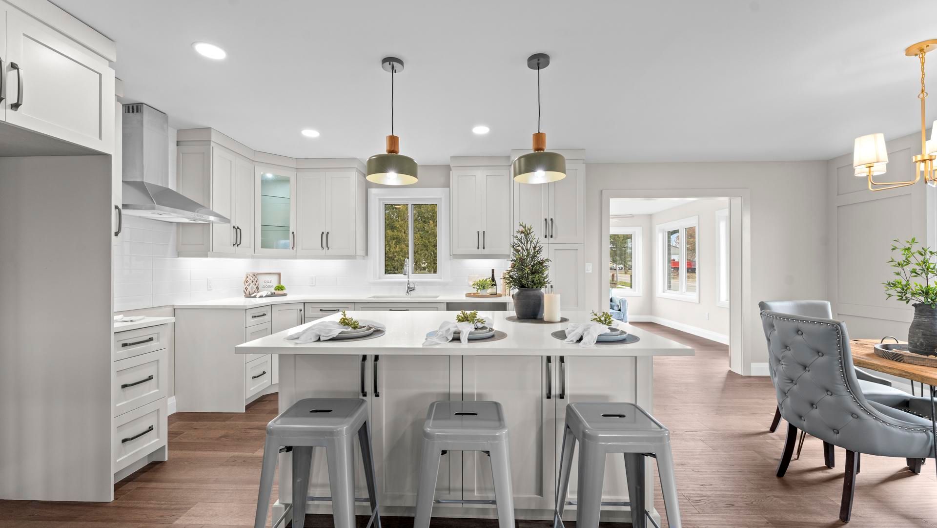Brand-new 3-bedroom bungalow on a large corner lot in a quiet small town. This stunning home features an open-concept living/dining/kitchen area with quartz counters, main-floor laundry, and a spacious primary bedroom with ensuite. An enclosed sunroom extends the living area and opens directly onto the back deck, perfect for relaxing or entertaining. The partially finished basement offers incredible flexibility. Designed with garage access, it includes a large rec area, a bonus room, generous storage, and a 4-piece bath. The thoughtfully designed layout has a kitchen area roughed in for future opportunities. Come check out this fresh, functional layout with quality finishes. Perfect for anyone seeking comfortable main-floor living in a peaceful community.